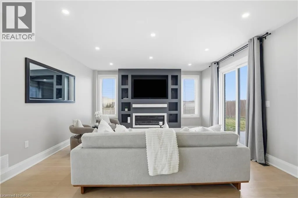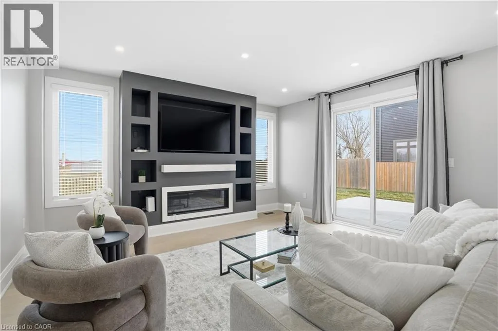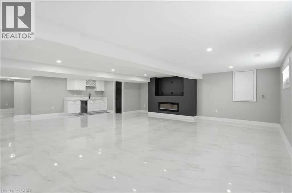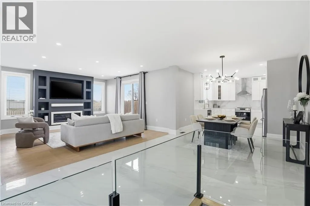 Cross street HWY#6 Welcome to 21 Haldimand 66 Road, an exceptional residence where sophisticated country living meets effortless access to the city. Set on a premium 100 x 115 ft lot, this fully finished home offers nearly 3800 sq ft of beautifully curated living space, designed to impress at every turn. With 4 bedrooms and 3.5 bathrooms, this property delivers a seamless blend of elegance, comfort, and versatility. A grand porcelain tile foyer, intriguing black accents, and a dramatic feature staircase create a memorable first impression. The living room is a showpiece, anchored by a floor to ceiling gas fireplace, beautiful engineered flooring, oversized windows, and ambient pot lighting. The open concept kitchen and dining area are ideal for entertaining, featuring quartz countertops, full height quartz backsplash, designer lighting, and all new premium stainless steel appliances. The primary suite offers a serene retreat with wide plank engineered hardwood, expansive windows, and a spa inspired ensuite complete with a glass walk in shower, quartz vanity, and sleek black fixtures. Two additional bedrooms and a luxurious main floor bathroom provide modern comfort, the rest of main floor also includes a designer powder room and a thoughtfully appointed laundry/mudroom with custom cabinetry, folding counter, and bonus stand up fridge/freezer. The lower level is perfectly suited for entertaining or multi generational living, showcasing an open layout with quartz wet bar, gas fireplace, stylish 3 piece bath, bedroom, and flexible fitness or office space. Outdoors, enjoy a fully fenced backyard with concrete patio, lush green space, and room to host with ease. An oversized driveway, double car garage with Wi Fi openers, Security cameras while major updates including roof, windows, cistern, and septic in 2023 complete this remarkable offering. A rare opportunity to enjoy refined living in a tranquil setting just minutes from urban amenities. (id:27476)