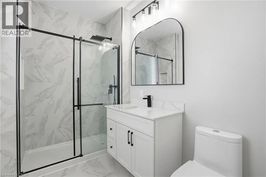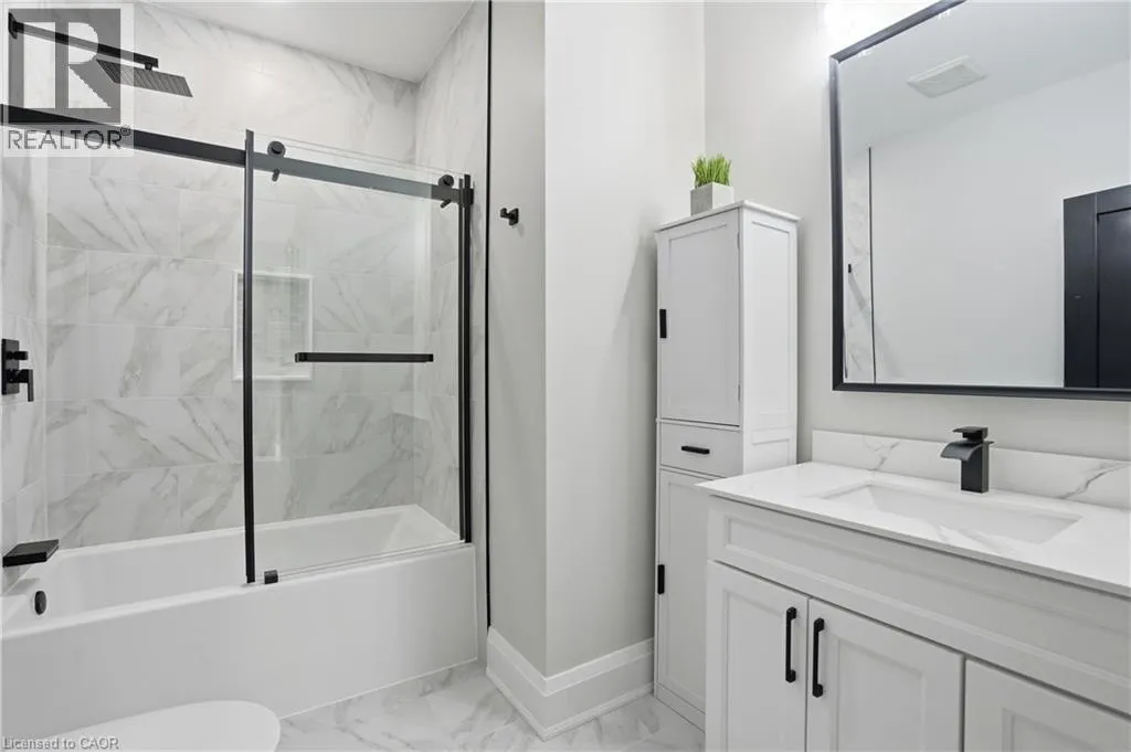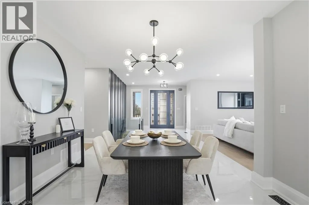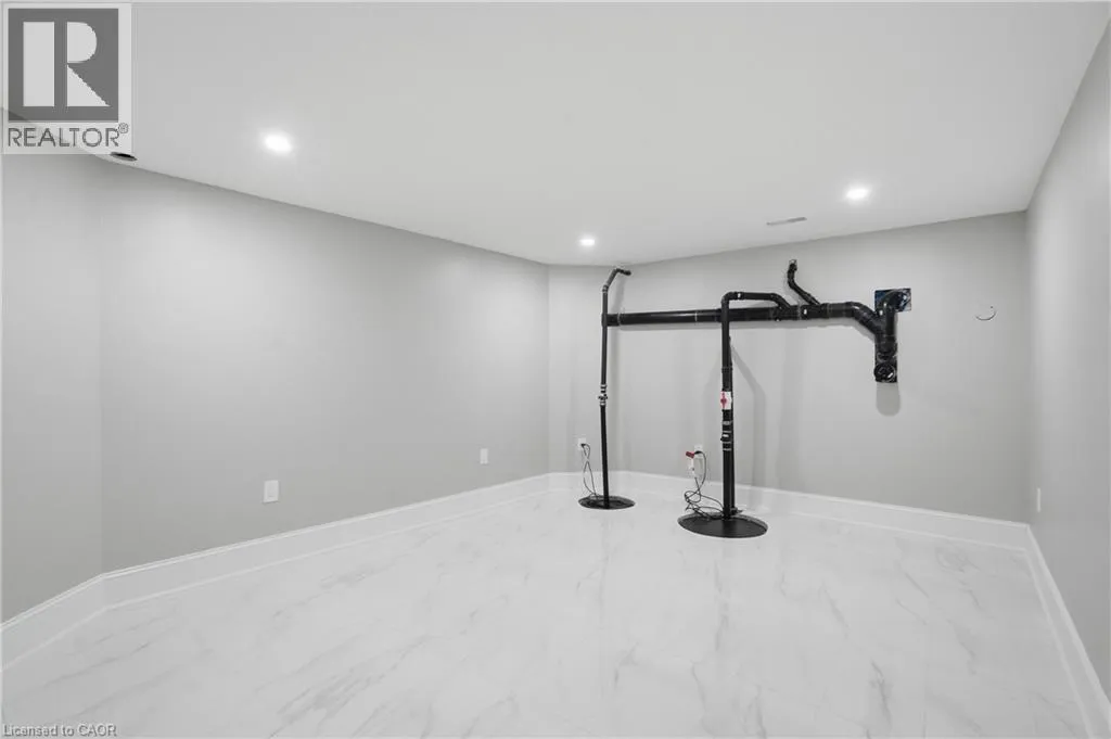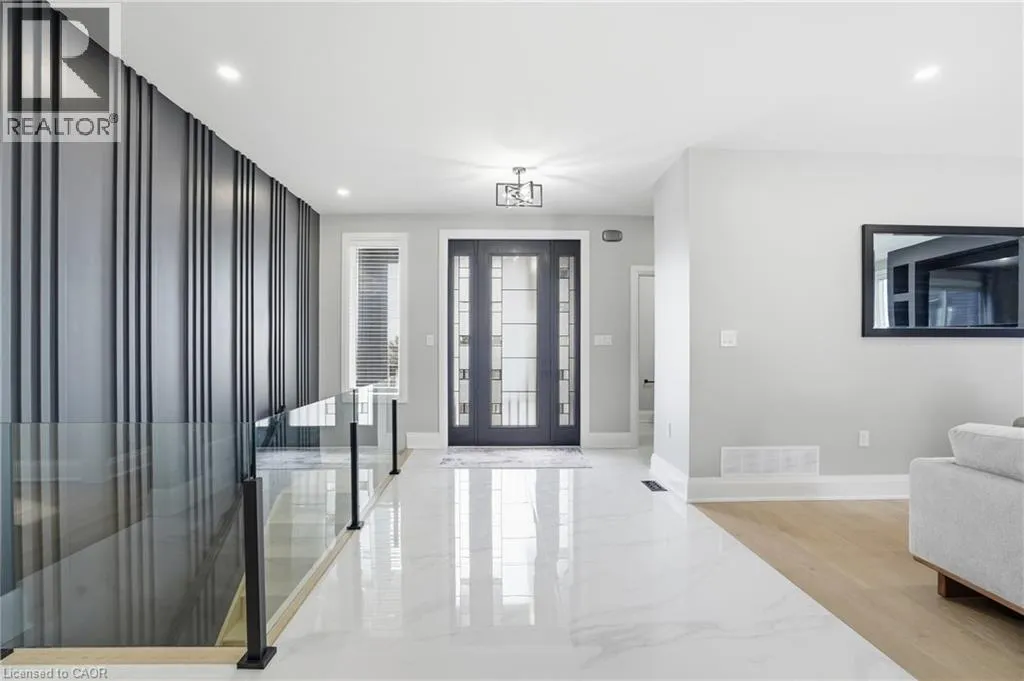 Cross street HWY#6 Welcome to 21 Haldimand 66 Road, an exceptional residence where sophisticated country living meets effortless access to the city. Set on a premium 100 x 115 ft lot, this fully finished home offers nearly 3800 sq ft of beautifully curated living space, designed to impress at every turn. With 4 bedrooms and 3.5 bathrooms, this property delivers a seamless blend of elegance, comfort, and versatility. A grand porcelain tile foyer, intriguing black accents, and a dramatic feature staircase create a memorable first impression. The living room is a showpiece, anchored by a floor to ceiling gas fireplace, beautiful engineered flooring, oversized windows, and ambient pot lighting. The open concept kitchen and dining area are ideal for entertaining, featuring quartz countertops, full height quartz backsplash, designer lighting, and all new premium stainless steel appliances. The primary suite offers a serene retreat with wide plank engineered hardwood, expansive windows, and a spa inspired ensuite complete with a glass walk in shower, quartz vanity, and sleek black fixtures. Two additional bedrooms and a luxurious main floor bathroom provide modern comfort, the rest of main floor also includes a designer powder room and a thoughtfully appointed laundry/mudroom with custom cabinetry, folding counter, and bonus stand up fridge/freezer. The lower level is perfectly suited for entertaining or multi generational living, showcasing an open layout with quartz wet bar, gas fireplace, stylish 3 piece bath, bedroom, and flexible fitness or office space. Outdoors, enjoy a fully fenced backyard with concrete patio, lush green space, and room to host with ease. An oversized driveway, double car garage with Wi Fi openers, Security cameras while major updates including roof, windows, cistern, and septic in 2023 complete this remarkable offering. A rare opportunity to enjoy refined living in a tranquil setting just minutes from urban amenities. (id:27476)
