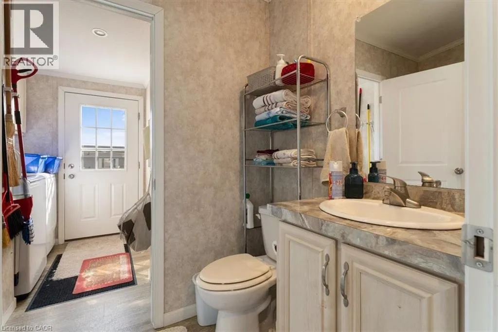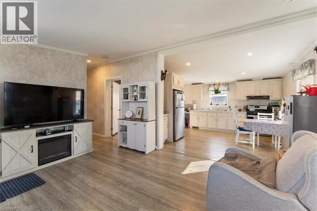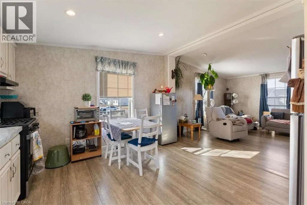 Welcome to this well-maintained 1,066 sq ft bungalow nestled in a sought-after waterfront community along the shores of Lake Erie. Offering the ease of one-floor living, this bright and spacious home features an open-concept layout perfect for comfortable everyday living and entertaining. Inside, youâll find two generously sized bedrooms plus a versatile den, ideal for a home office or easily converted into a third bedroom. The primary bedroom includes a walk-in closet and private 4-piece ensuite, providing a relaxing retreat. A well-appointed eat-in kitchen offers ample space for family meals and gatherings. Enjoy all the benefits of this welcoming lakeside community, including access to an outdoor pool, walking trails, dog park, and organized social events. Boating enthusiasts will appreciate the community dock with boat slips available for rent (additional fee). Exterior maintenance, including grass cutting and snow removal, is taken care of for youâmaking this home an excellent choice for those seeking a low-maintenance lifestyle or the perfect seasonal/snowbird retreat. (id:27476)