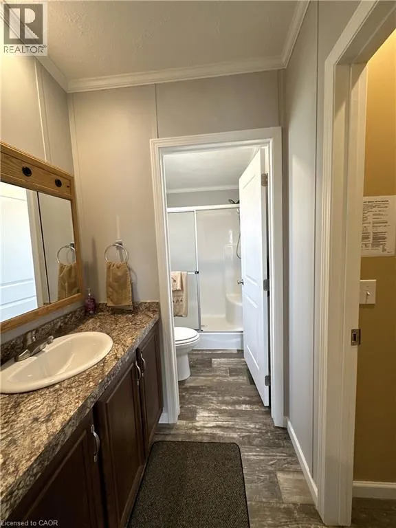 South on Cheapside Road, Left into park community, Sandusk Properties Ltd Immaculate 2 bedroom modular home! Located in a quiet, rural park community next to Selkirk Provincial Park, this sweet home is the perfect spot to retire or for those looking for a more peaceful lifestyle. A private driveway leads to the attached single car garage and the manicured front yard with perennial garden. Step up to the front porch and head inside to a modern, open concept living room with plenty of space to relax watching T.V. or your favourite book. The living room is open to the eat-in kitchen. Modern finishes, plenty of cupboard space and a pantry create the perfect spot to enjoy cooking and entertaining. The primary bedroom is on the north side of the home and features a private ensuite with shower and a walk-in closet. The second bedroom, office/den (or potential third bedroom) are on the south side of the home next to the full 4 piece bathroom. The laundry room is at the back of the home with access to the back door. Step outdoors to the patio area with plenty of space to barbecue, relax in the sunshine or visit with friends and family. Park amenities include an outdoor community pool to cool off in and private boat docks (for an additional fee). Just a short walk for stunning views of the canal and Lake Erie. (id:27476)