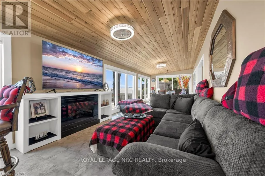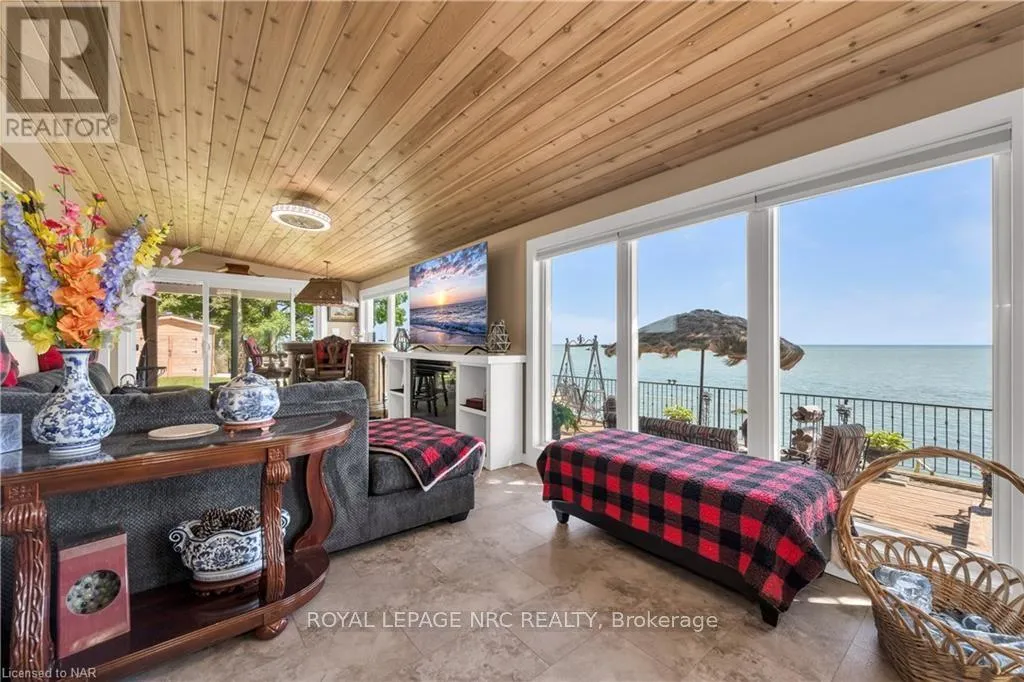 Follow Kohler Road South, Turn right on Rainham Rd, South on Fisherville Rd, right on Lakeshore Rd Prepare to be amazed. Beautifully renovated Lake Front home w/112 ft of Lake Erie frontage, beach dependant on water level. House boasts over 1600 sqft of o/concept one floor living space, custom kitchen w/corian counters, built-ins, island. Spacious dining area w/wall to wall, floor to ceiling built-in cupbrds, lakefront sunroom w/f/place plus w-out to enormous deck, living rm w/gas stone f/place & sliding doors, extensive lakefront deck/viewing area. House surrounded by decking to be able to enjoy the panoramic views w/minimal grass. Master bed w/walk in closet/dressing rm. 2nd Bed w/built-in bunk beds, large closet & sliding doors to deck. Main flr laundry. Garage turned in to outdoor kitchen/bar/entertaining area, counters, cupboards. Main bunkie w/elecric f/place, ac & 3 pc bath. 2nd Bunkie w/bedroom, living rm and 3 pc bath. 3rd bunkie/shed w/queen sized bed. Blt-in BBQ, 2 more sheds w/hydro for workshop. Old boathouse now used for storage. Inground heated kidney shaped pool concrete restored this year. Extensive newly poured concrete breakwall w/metal steps to the beach. House is winterized, bunkies are all seasonal. New septic system installed 2021. \r\n\r\nA public boat launch is about 1 km away. Enjoy all that the Lake Erie lifestyle has to offer; great fishing, bird watching, boating, watersports, bonfires & beautiful sunrises. A 15-min commute to Dunnville or Cayuga. About 1 to 2hr drive from Hamilton, Niagara or Toronto. Easily rented out for added income. (id:27476)