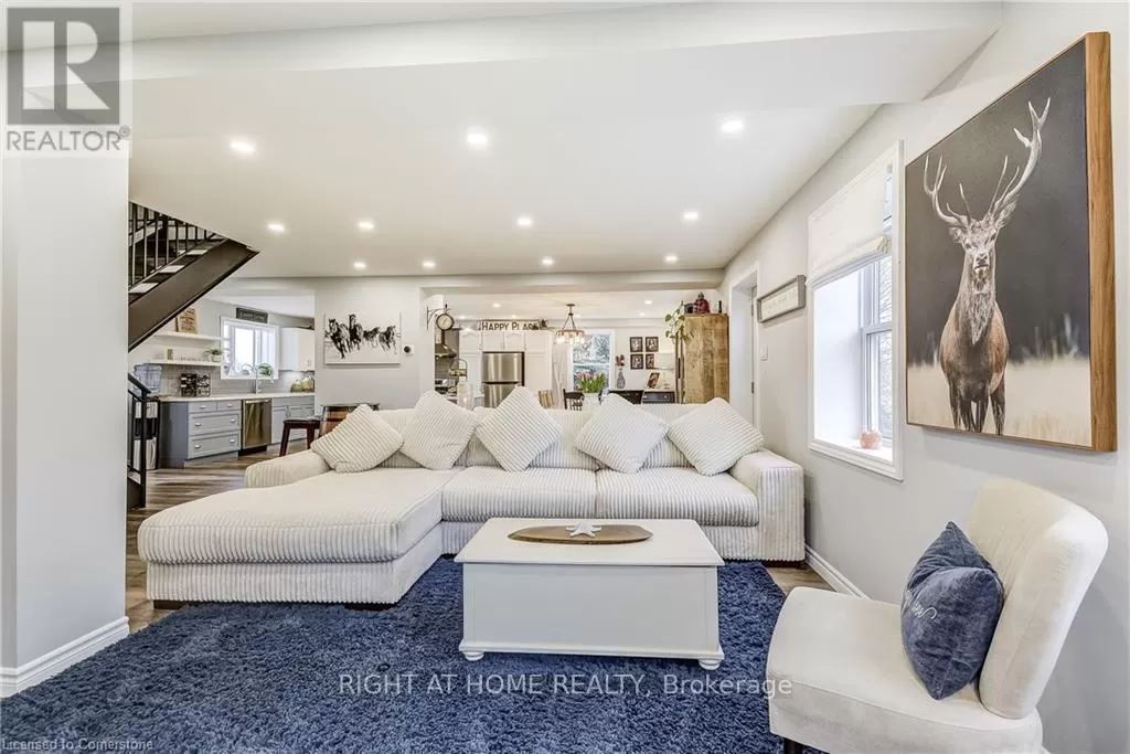 Haldimand Rd #53. Hwy 3 also known as Old Talbot Welcome home! Renovated Century Farmhouse, where character and charm meets modern living! Nestled in a quiet and desirable area on 0.92AC in rural outskirts of Hagersville surrounded by farmland and mature treed setting. Step inside and be greeted by the warmth of the abundance of natural light and desirable open concept floor plan. With approx. 1800sqft of living space there's ample room for everyone to unwind, entertain, and spend time together. The heart of the home lies in the spacious kitchen complete with stone counter tops, a large island, and stainless-steel appliances. Main floor also features a renovated 3pc bathroom, spacious living room, dining space and convenient laundry/mud room. Second levels offers 3 bedrooms and a renovated 4pc bathroom Once you walk out to the expansive yard, youll not only enjoy the peace and tranquility but great entertainment amenities such as fire pit, lovely large gazebo perfect to relax and sip your morning coffee or gather in the evening to watch some outdoor movies. This property also features a detached garage, parking for up to 10 vehicles, an unfinished partial basement with dirt floor that could be used as storage, hydro one updated from road to house, custom blinds in bedrooms/bathrooms and living room, laminate flooring throughout water pump and updated 200amp. Dont miss this amazing opportunity to live in this beautiful community approx. 30mins to Hamilton/Dunnville/Simcoe, 15mins to Lake Erie/Grand River. BASEMENT IS FOR STORAGE PURPOSES ONLY (id:27476)