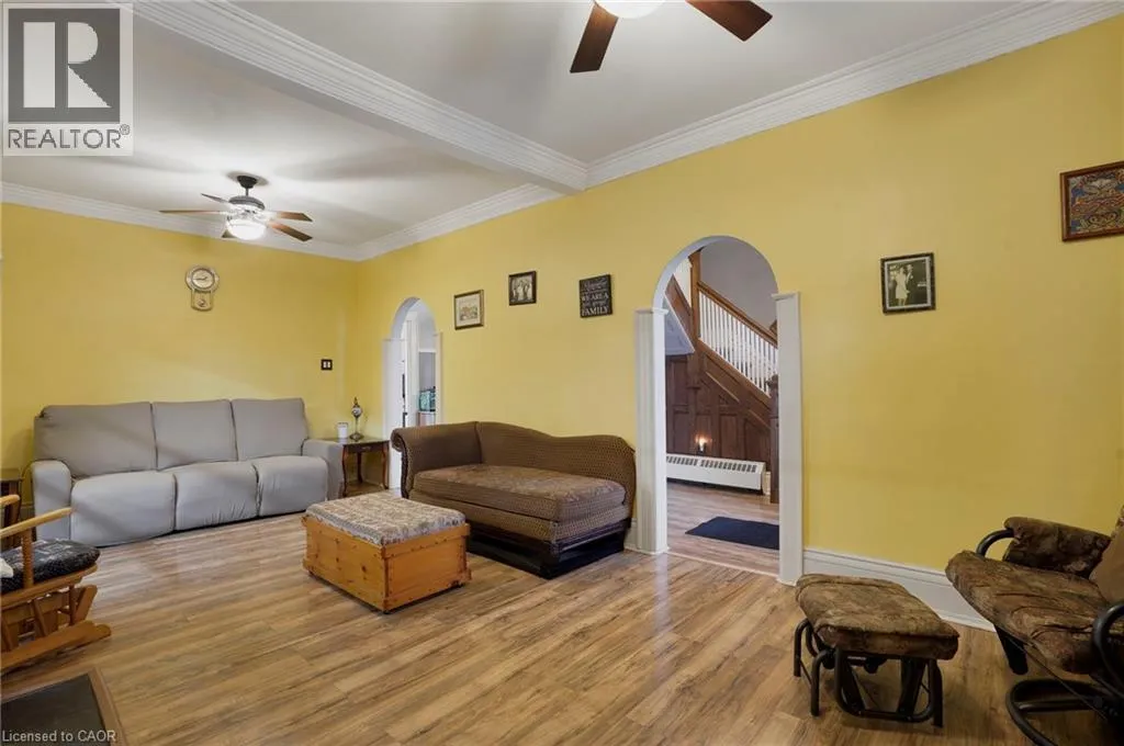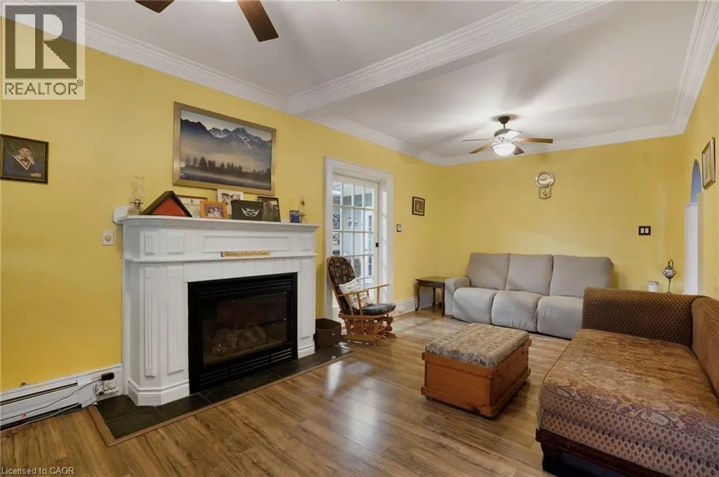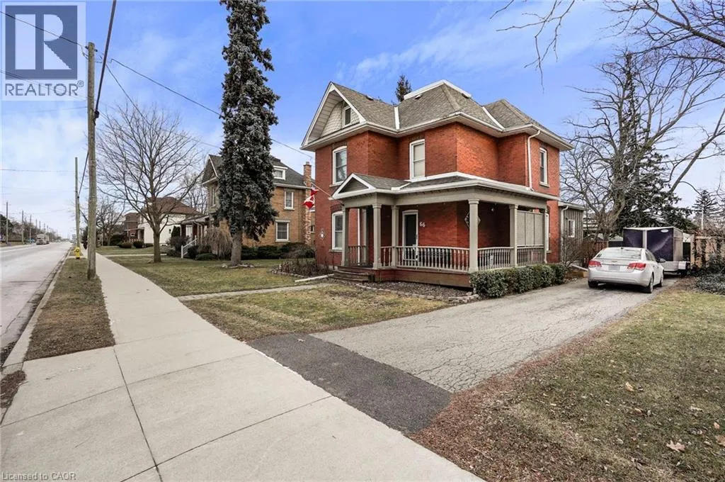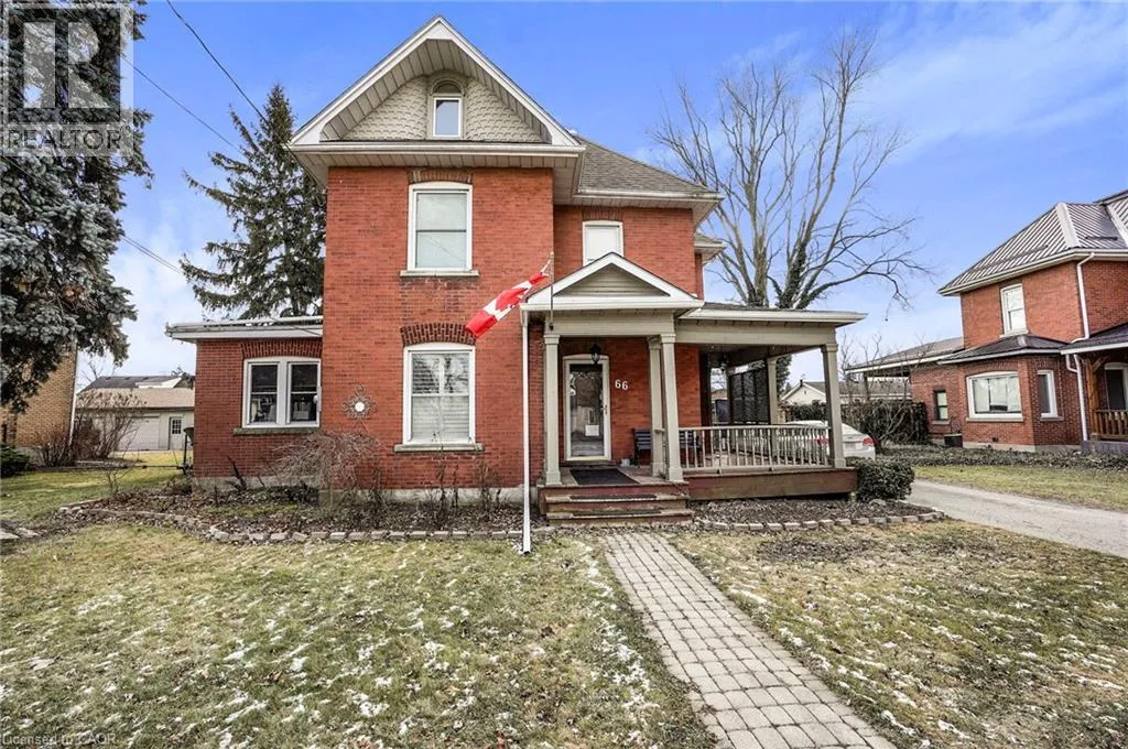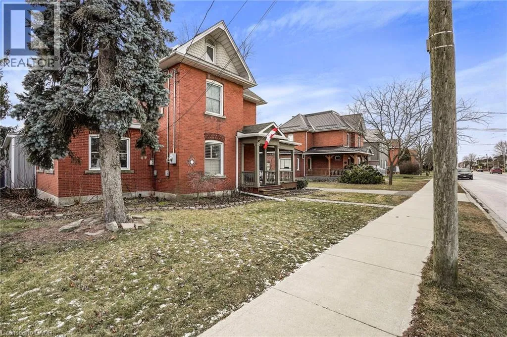 King St E & Hwy 6. This stately 2.5-storey home is a true gem, offering both timeless charm and modern comfort. Its classic architecture is accentuated by a stunning covered wraparound front porch, perfect for relaxing while enjoying the relaxing view of the front yard. The landscaping is meticulously curated, with lush greenery, vibrant flower beds, and towering trees that enhance the home's curb appeal. Situated close to the heart of downtown Hagersville, this home enjoys a prime location that provides easy access to all the conveniences of small-town life, while still offering the serenity and privacy of a charming residential area. The exterior boasts elegant features such as detailed woodwork, classic red brick accents, and large, inviting windows that allow natural light to pour into the spacious interiors. The half-storey of this home is truly unique, offering a versatile loft space that could serve multiple purposes. Whether you dream of creating an inspiring art studio, a peaceful reading nook, or a private getaway for an unruly teenager, this area offers endless possibilities. Inside, the home continues to impress with just over 2,000 square feet of living space, its blend of traditional design and contemporary comforts. Spacious living areas, elegant finishes, and thoughtfully designed rooms create a welcoming atmosphere throughout. This home offers the perfect balance of charm, character, and functionality, making it a standout property in one of Hagersville's most desirable locations. Whether you're relaxing on the porch, retreating to the loft, or exploring the vibrant downtown just minutes away, this home promises a lifestyle of both comfort and convenience. (id:27476)
