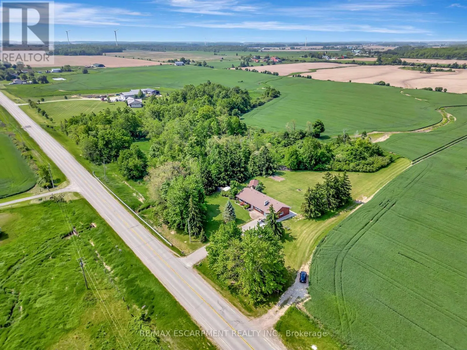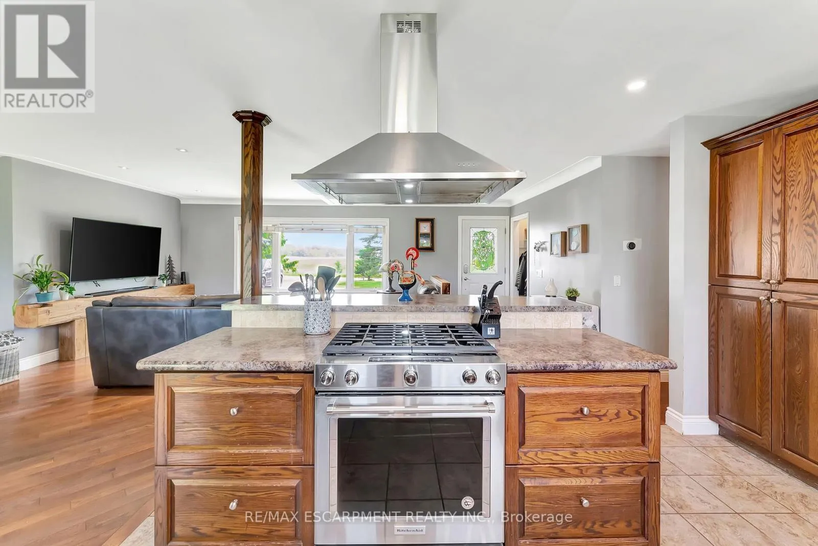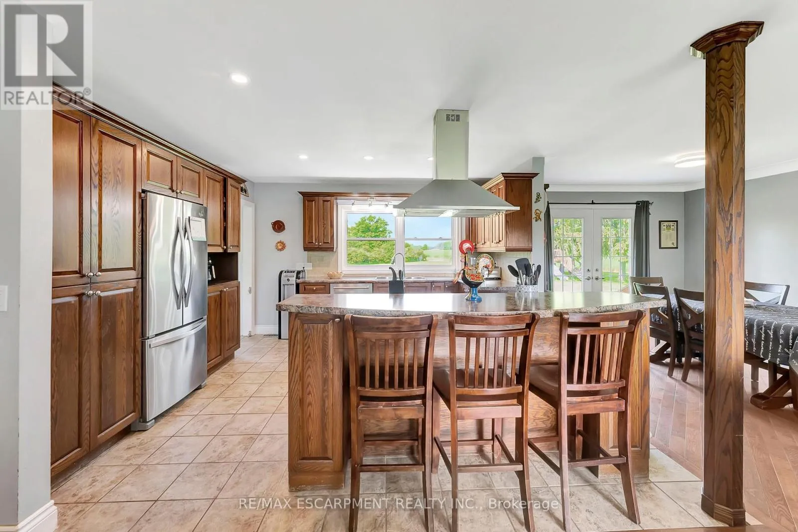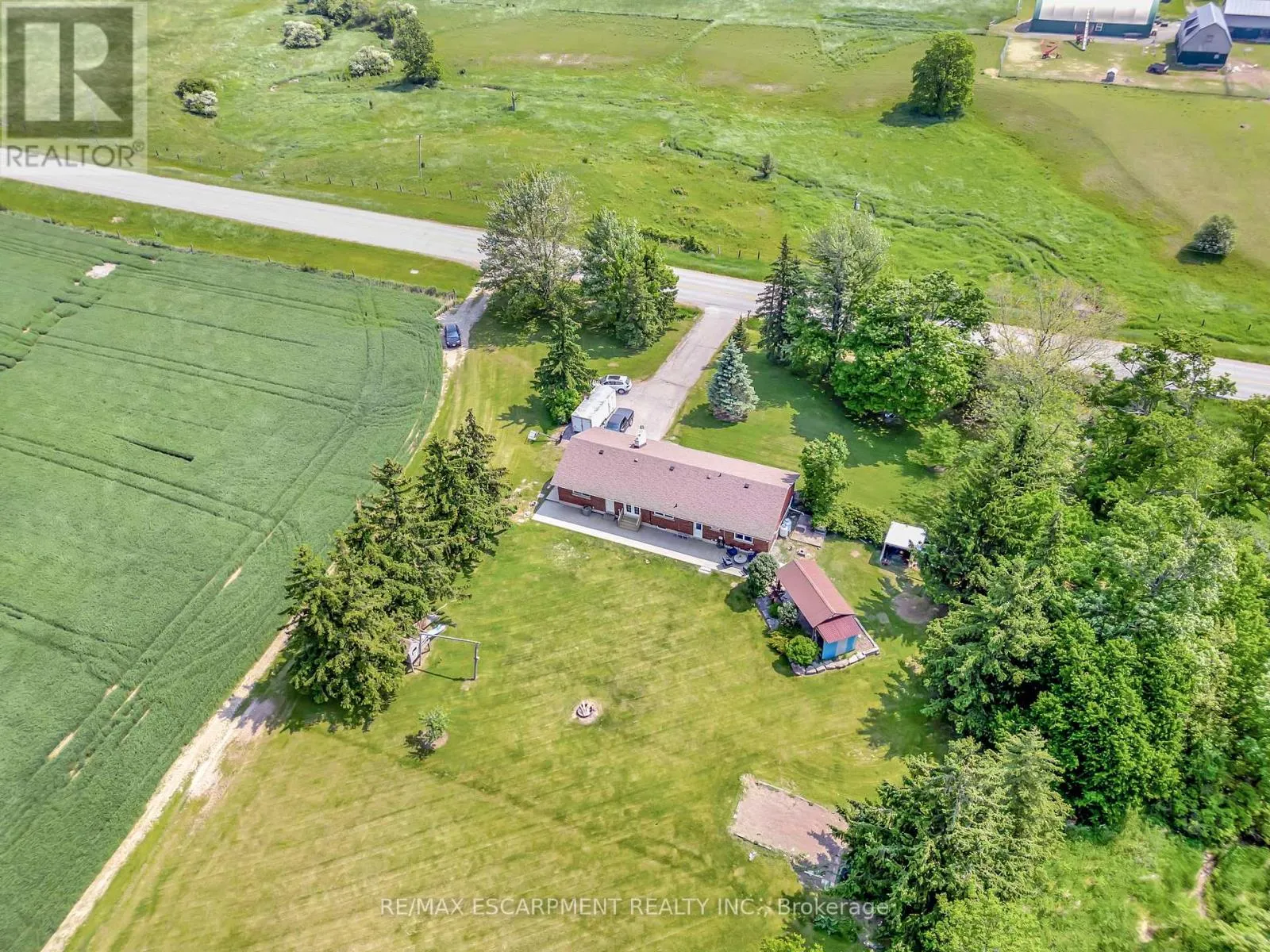 Cross Streets: LINK ROAD & KOHLER ROAD. ** Directions: HWY 3 WEST FROM CAYUGA. LEFT - SOUTH ON KOHLER RD - APPROXIMATELY 5KM ON RIGHT. Stunning all-brick bungalow nestled on a high elevation lot with beautiful views. Set on a 150 x 200 ft property, its surrounded by farm fields to the west and a mature forest with ravine to the south, offering peace and privacy. Inside, the open-concept kitchen features oak cabinetry, a custom island with built-in cooktop, stainless steel hood vent, built-in oven, recessed lighting, and a garden door walkout to the backyard. The main floor offers hardwood floors throughout, a bright living room with picture window, dining area, and 3 spacious bedrooms with ample closets. The primary suite includes a private 1.5 bath, plus a 4pc main bath down the hall. The full basement features a cold room perfect for a wine cellar and a large space ready for a family room, games area, office, or home gym. Extras include a wood stove, roof (2023), central vacuum, double garage, large cistern, working septic, natural gas furnace, and central air. A rare opportunity to enjoy peaceful country living with modern comfort, just 30 minutes from Hamilton and 10 minutes to Cayuga. (id:27476)
