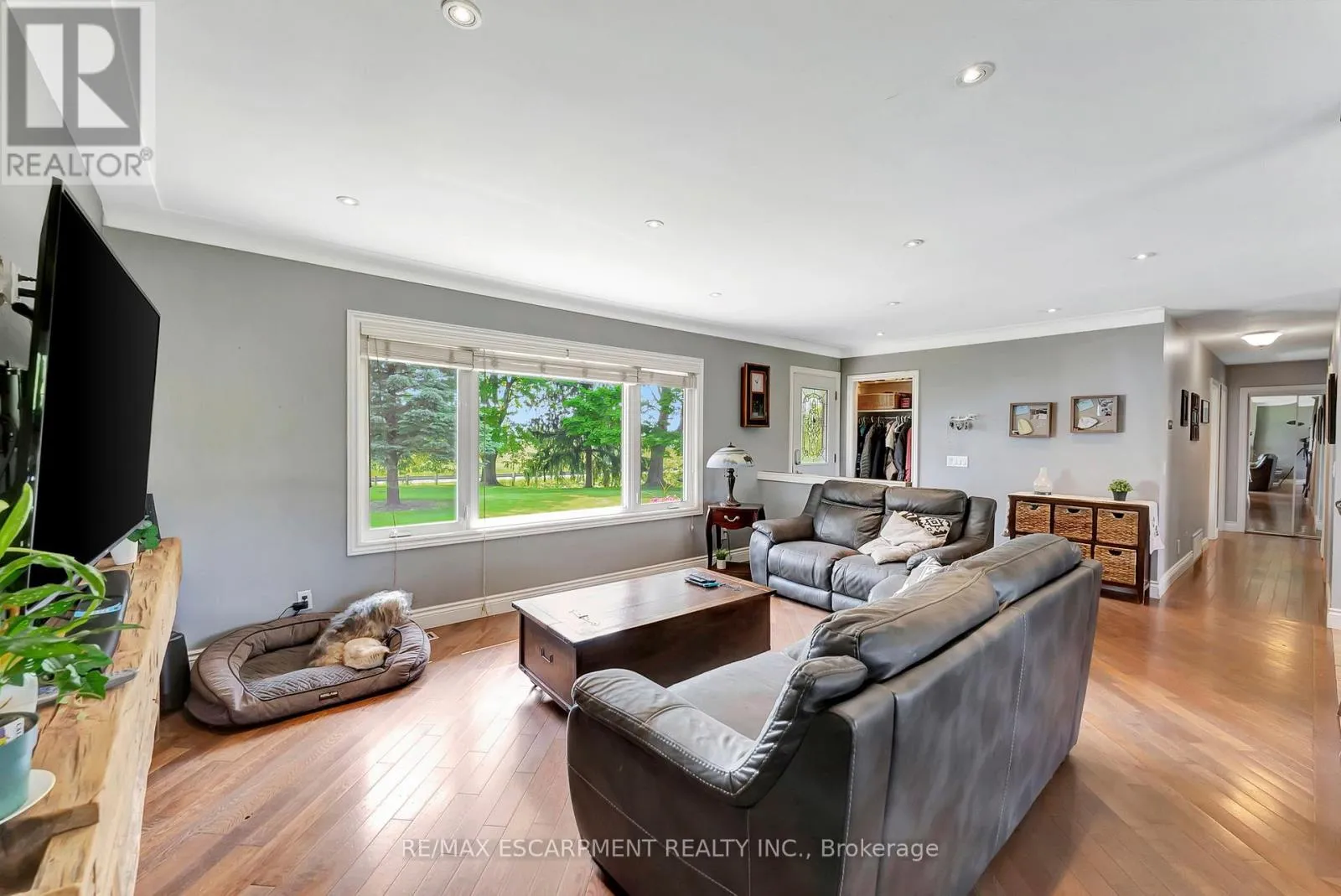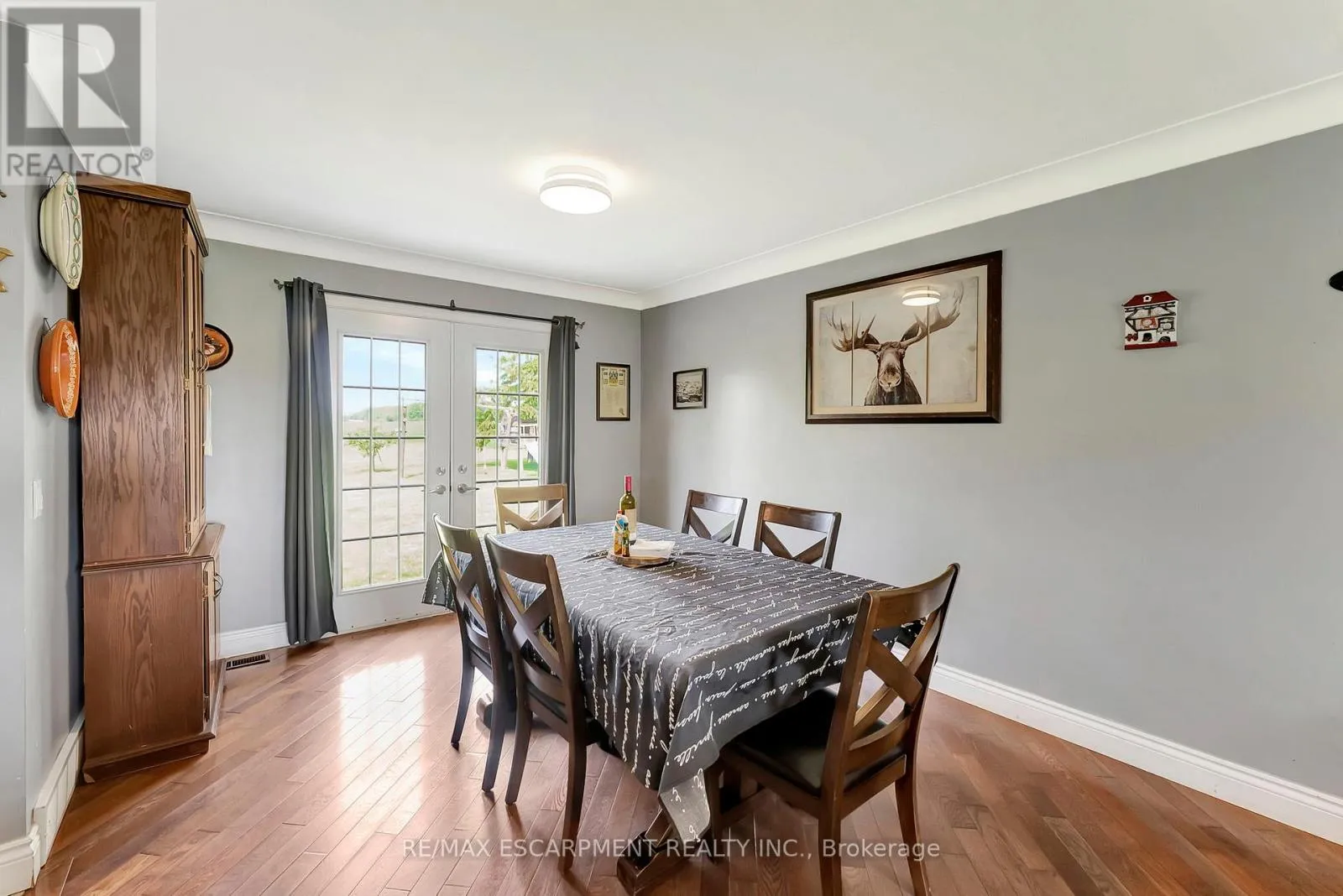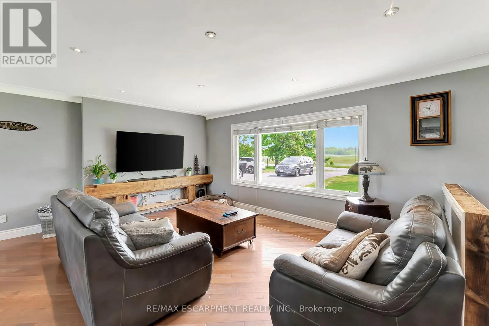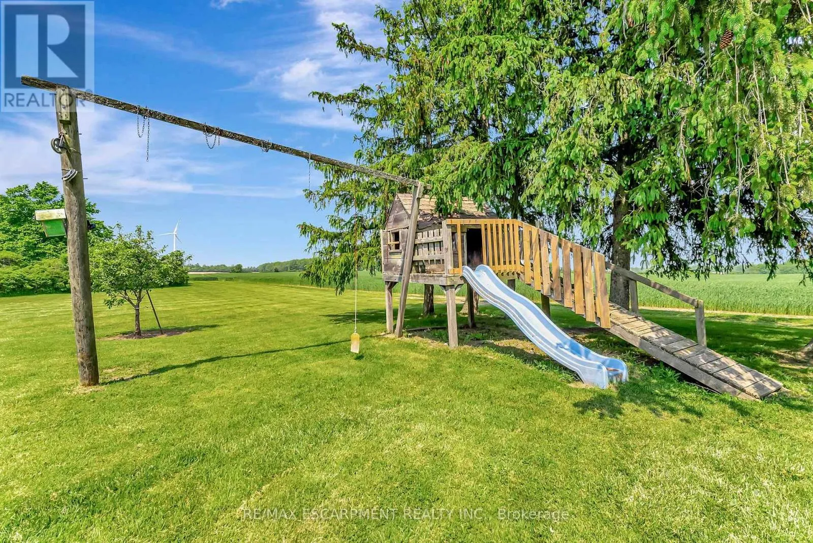 Cross Streets: LINK ROAD & KOHLER ROAD. ** Directions: HWY 3 WEST FROM CAYUGA. LEFT - SOUTH ON KOHLER RD - APPROXIMATELY 5KM ON RIGHT. Stunning all-brick bungalow nestled on a high elevation lot with beautiful views. Set on a 150 x 200 ft property, its surrounded by farm fields to the west and a mature forest with ravine to the south, offering peace and privacy. Inside, the open-concept kitchen features oak cabinetry, a custom island with built-in cooktop, stainless steel hood vent, built-in oven, recessed lighting, and a garden door walkout to the backyard. The main floor offers hardwood floors throughout, a bright living room with picture window, dining area, and 3 spacious bedrooms with ample closets. The primary suite includes a private 1.5 bath, plus a 4pc main bath down the hall. The full basement features a cold room perfect for a wine cellar and a large space ready for a family room, games area, office, or home gym. Extras include a wood stove, roof (2023), central vacuum, double garage, large cistern, working septic, natural gas furnace, and central air. A rare opportunity to enjoy peaceful country living with modern comfort, just 30 minutes from Hamilton and 10 minutes to Cayuga. (id:27476)