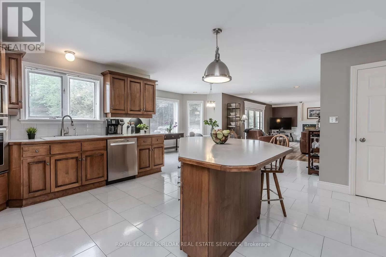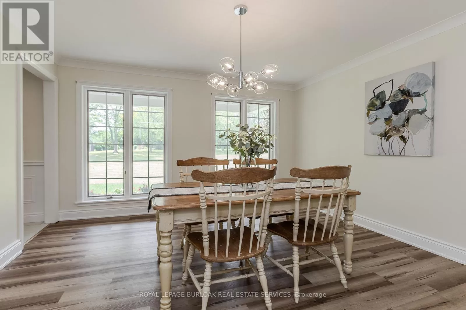 Haddington St & McKenzie Rd Welcome to the ultimate blend of comfort and serenity in the heart of Caledonia. This stunning country home offers 3965sf of total living space, combining timeless charm with functional design for peak family lifestyle. Situated on a quiet, dead-end street steps from the Grand River and mins from amenities, this property delivers the best of both peaceful countryside surroundings with daily convenience. Set back from the road on a professionally landscaped large private lot, the curb appeal is undeniable. A 200ft asphalt driveway leads to a triple car garage with room for 68 vehicles, and an extra-wide front porch invites you in. Inside, find a thoughtfully designed main floor featuring laminate flooring throughout. The living room is bathed in light due to oversized windows, while the dining room provides ample space for meals and entertaining. The heart of the home is a farmhouse style eat-in kitchen with a large island with breakfast bar, SS appliances, tile backsplash, coffee/wine bar, and seamless flow into the family room with gas fireplace, wainscoting, and French doors to the backyard. A convenient entrance from the back deck leads to a laundry room and full 3pc bath perfect for pool days! Upstairs, a window seat nook adds character and charm. The expansive primary suite features a walk-in closet and a 4pc ensuite with extra-large jacuzzi tub. 3 additional bedrooms2 with walk-in closets and Deacons benches w/ storage and a 4pc bathroom complete this level. The partially finished basement offers in-law potential with a separate entrance, large sitting room and an additional versatile space ideal for an office, games room, or guest bedroom. Step outside to your very own entertainers dream yard, complete with wood deck, stamped concrete patio, tons of green space, and a fully fenced in-ground pool with slide perfect for summer fun with family and friends. A rare opportunity to enjoy a peaceful rural setting without sacrificing space, style, or convenience! (id:27476)