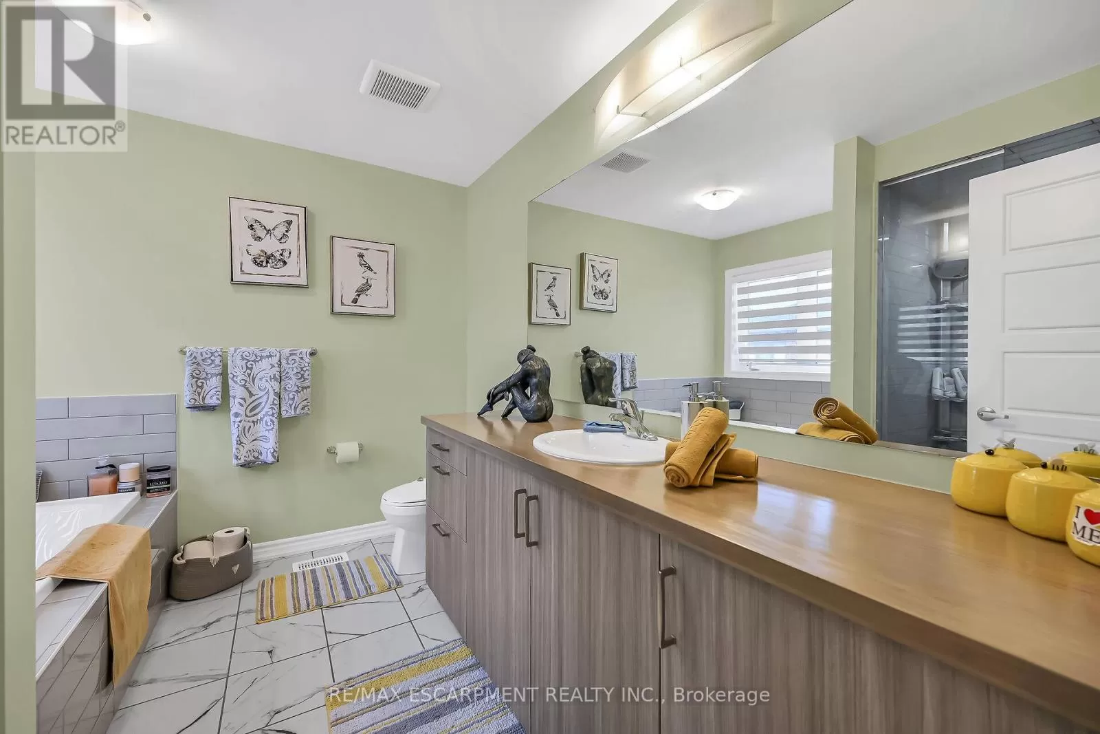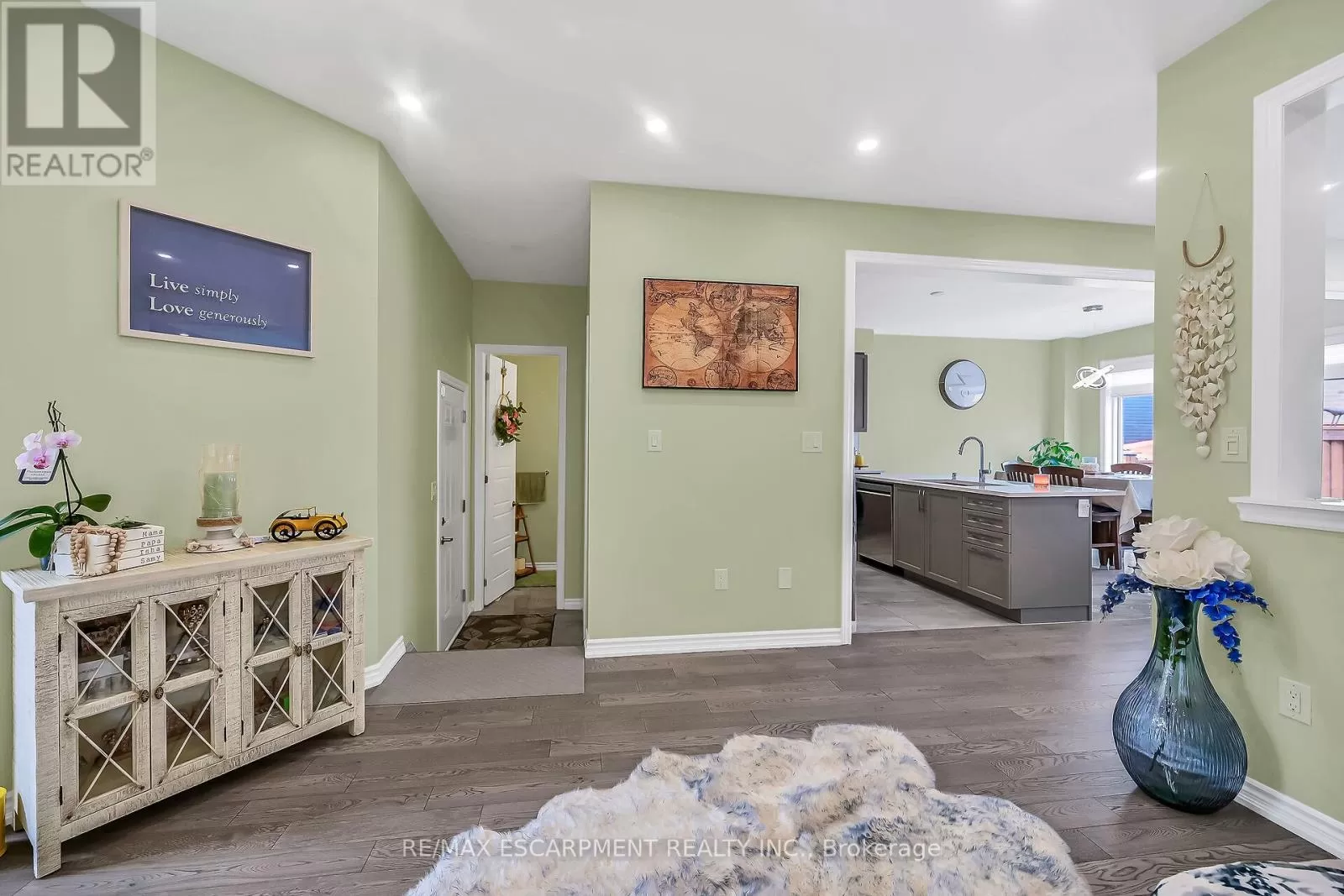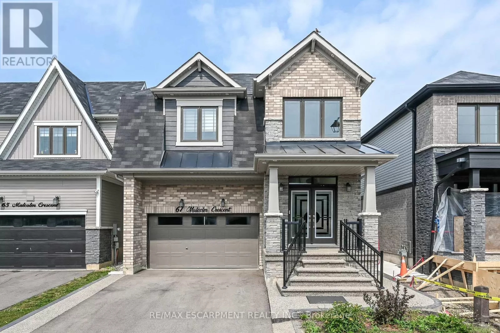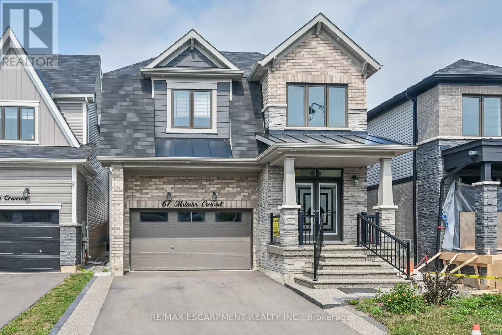 Cross Streets: Rainbow Drive. ** Directions: McClung Road to Rainbow Drive, turn left onto Malcolm Crescent. Welcome to 67 Malcolm Crescent. This tastefully decorated home offers 2,307 sq ft of thoughtfully designed living space and features spacious, open-concept living ideal for families of all sizes. The main floor features pot lights throughout, creating a warm and inviting atmosphere for everyday living and entertaining. The large kitchen is equipped with upgraded cabinetry, granite countertops, a center island, and a breakfast area. A separate dining room and bright great room complete the main floor. Upstairs, youll find four generous bedrooms, including a primary suite with double walk-in closets and a private ensuite featuring a natural wood vanity top. The second level also includes a 4-piece bathroom which is also finished with a natural wood counter and convenient laundry facilities. The unfinished basement provides potential for future living space or storage. Step outside to a beautifully landscaped backyard with a concrete patio. Additional exterior pot lights have been added around the home for a polished look. Located steps from parks, walking trails, the Grand River, and a brand new school currently under construction. This is the perfect opportunity to join a growing, family-friendly neighbourhood! (id:27476)