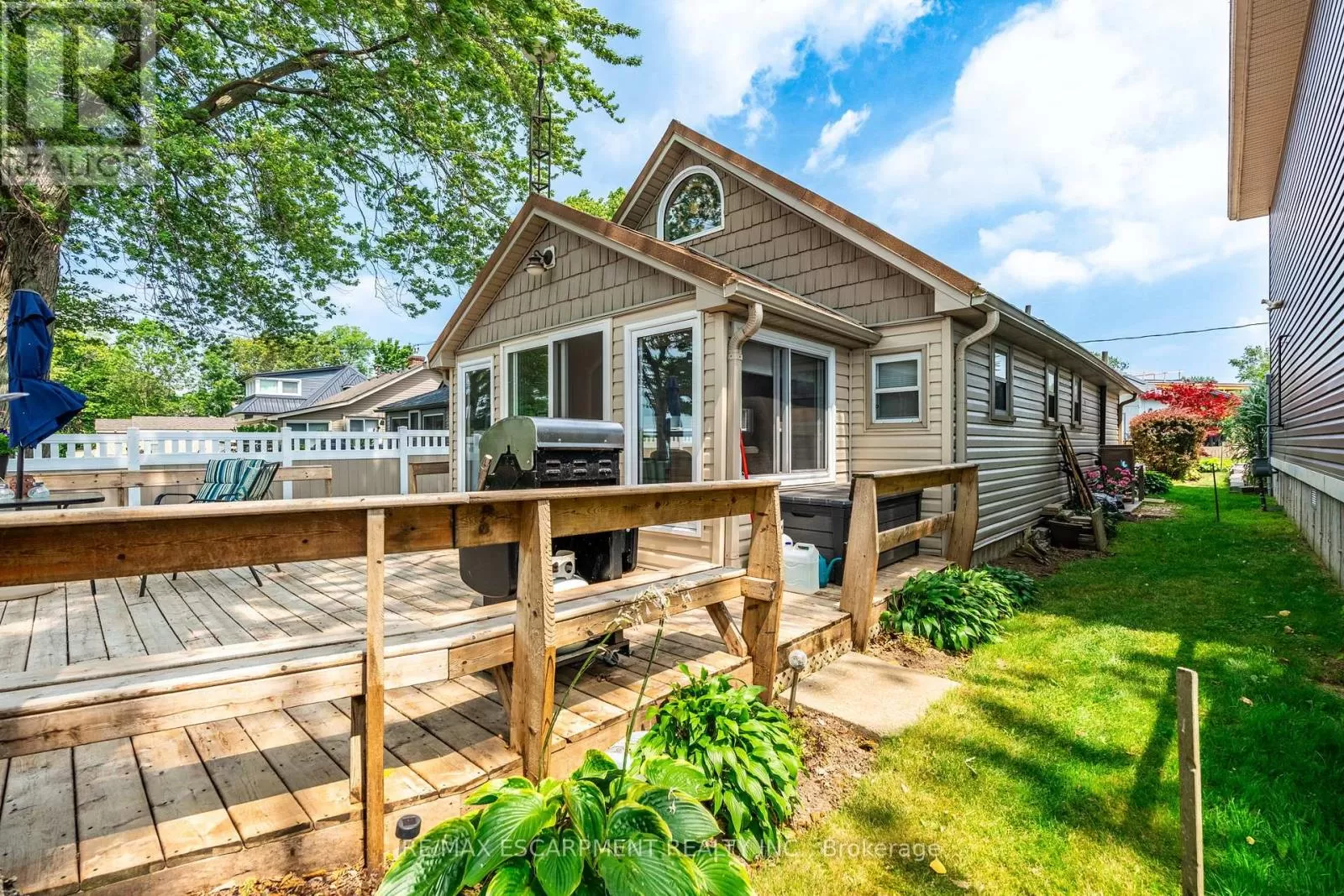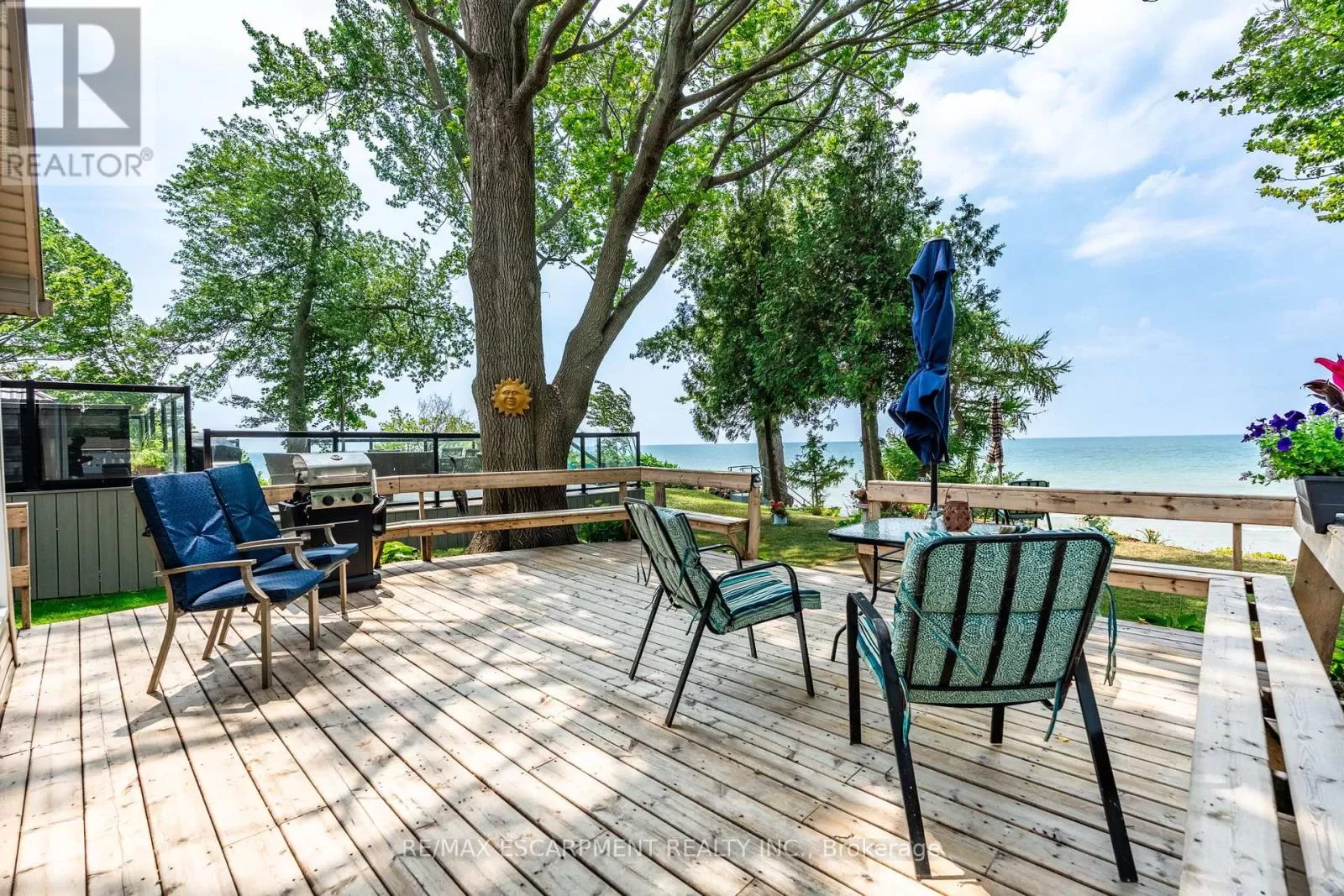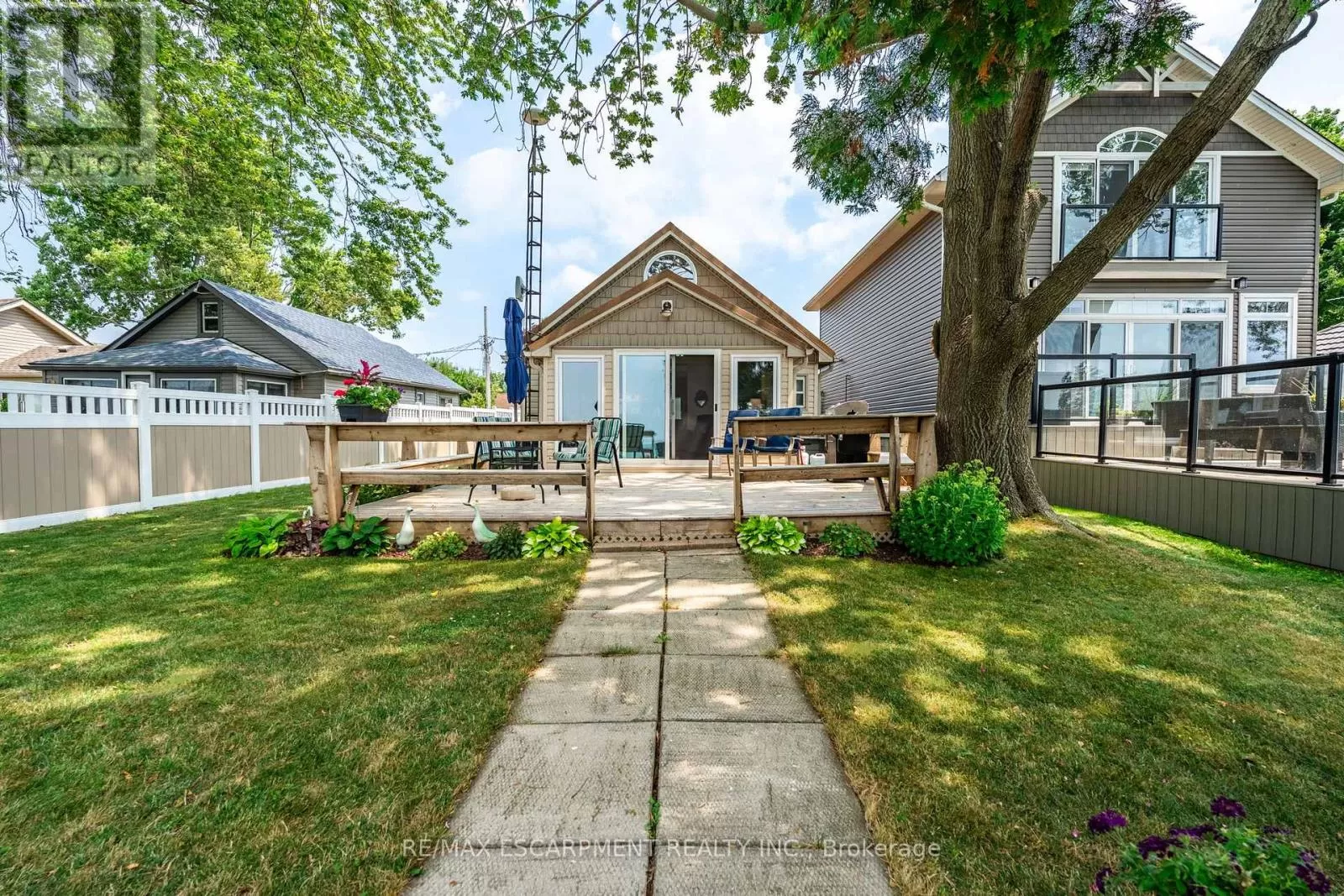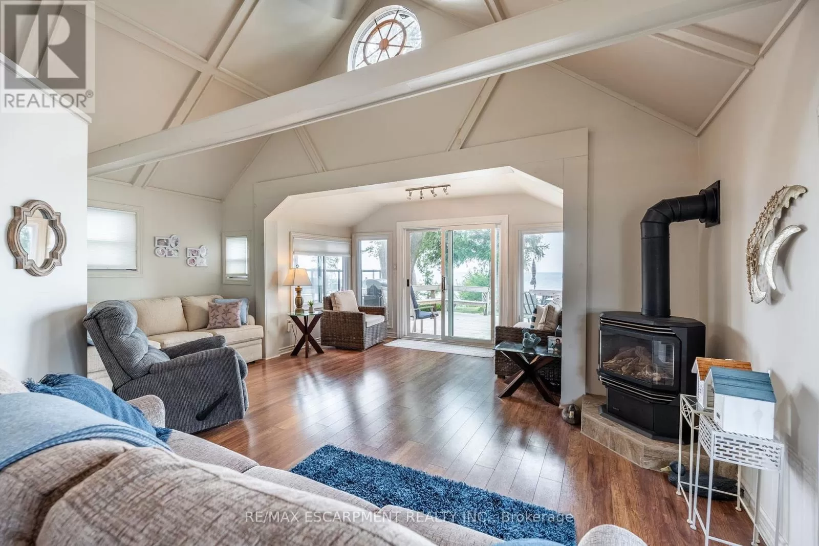 Cross Streets: South Cost Drive. ** Directions: HWY 3 - Sandusk Road - Lakeside Drive. Four-season home located directly on Lake Erie in the Peacock Point community. The property features an open-concept layout with water and sky views, a natural gas fireplace, and a modern 3-piece bathroom. The kitchen includes stainless steel appliances, ample cabinetry, and generous counter space. A spacious loft provides additional room for sleeping, office use, or storage. Outdoor spaces include front and rear decks, a lower patio, and a second seating area overlooking the lake. Additional features include a cistern for fresh water, seasonal water service through the Peacock Point Community system (Spring to Fall, annual cost: $315.00), a professionally built concrete break wall with steel stairs to the sand and gravel shoreline, a steel roof (2019), Fence (2024), parking for three vehicles, a holding tank for wastewater, an owned hot water tank, and on-site natural gas and electricity. Flexible closing is available. Recent survey available. (id:27476)