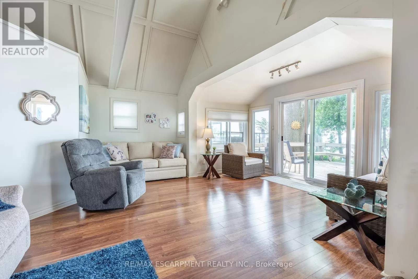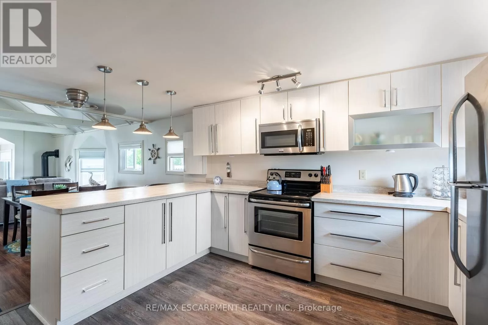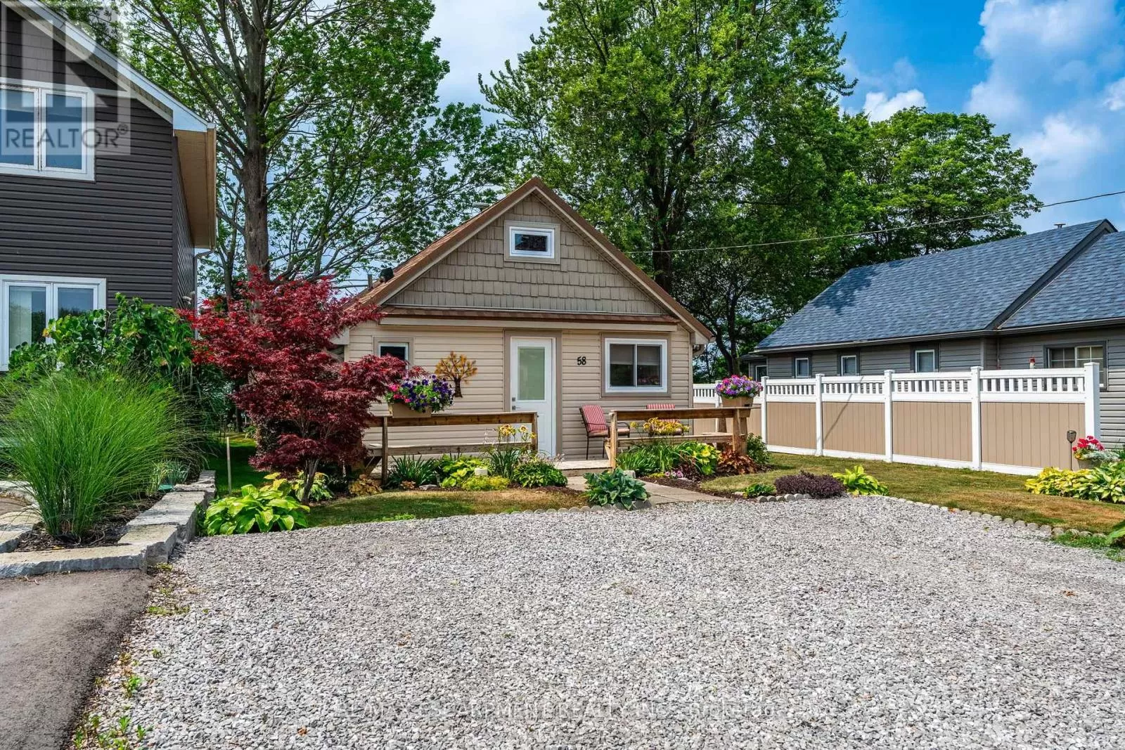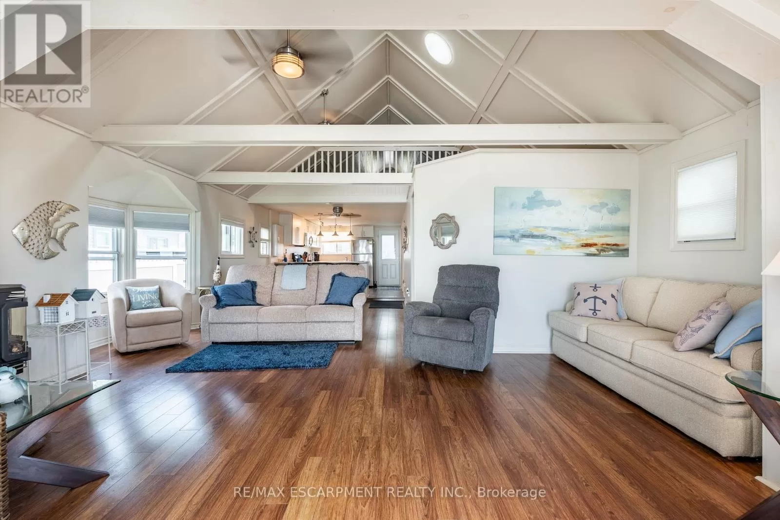 Cross Streets: South Cost Drive. ** Directions: HWY 3 - Sandusk Road - Lakeside Drive. Four-season home located directly on Lake Erie in the Peacock Point community. The property features an open-concept layout with water and sky views, a natural gas fireplace, and a modern 3-piece bathroom. The kitchen includes stainless steel appliances, ample cabinetry, and generous counter space. A spacious loft provides additional room for sleeping, office use, or storage. Outdoor spaces include front and rear decks, a lower patio, and a second seating area overlooking the lake. Additional features include a cistern for fresh water, seasonal water service through the Peacock Point Community system (Spring to Fall, annual cost: $315.00), a professionally built concrete break wall with steel stairs to the sand and gravel shoreline, a steel roof (2019), Fence (2024), parking for three vehicles, a holding tank for wastewater, an owned hot water tank, and on-site natural gas and electricity. Flexible closing is available. Recent survey available. (id:27476)