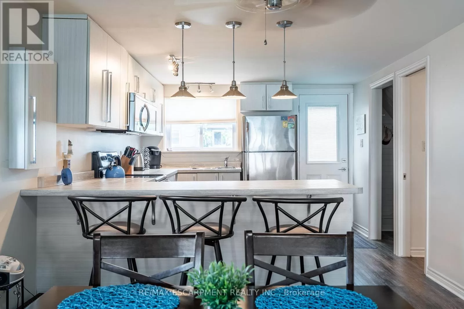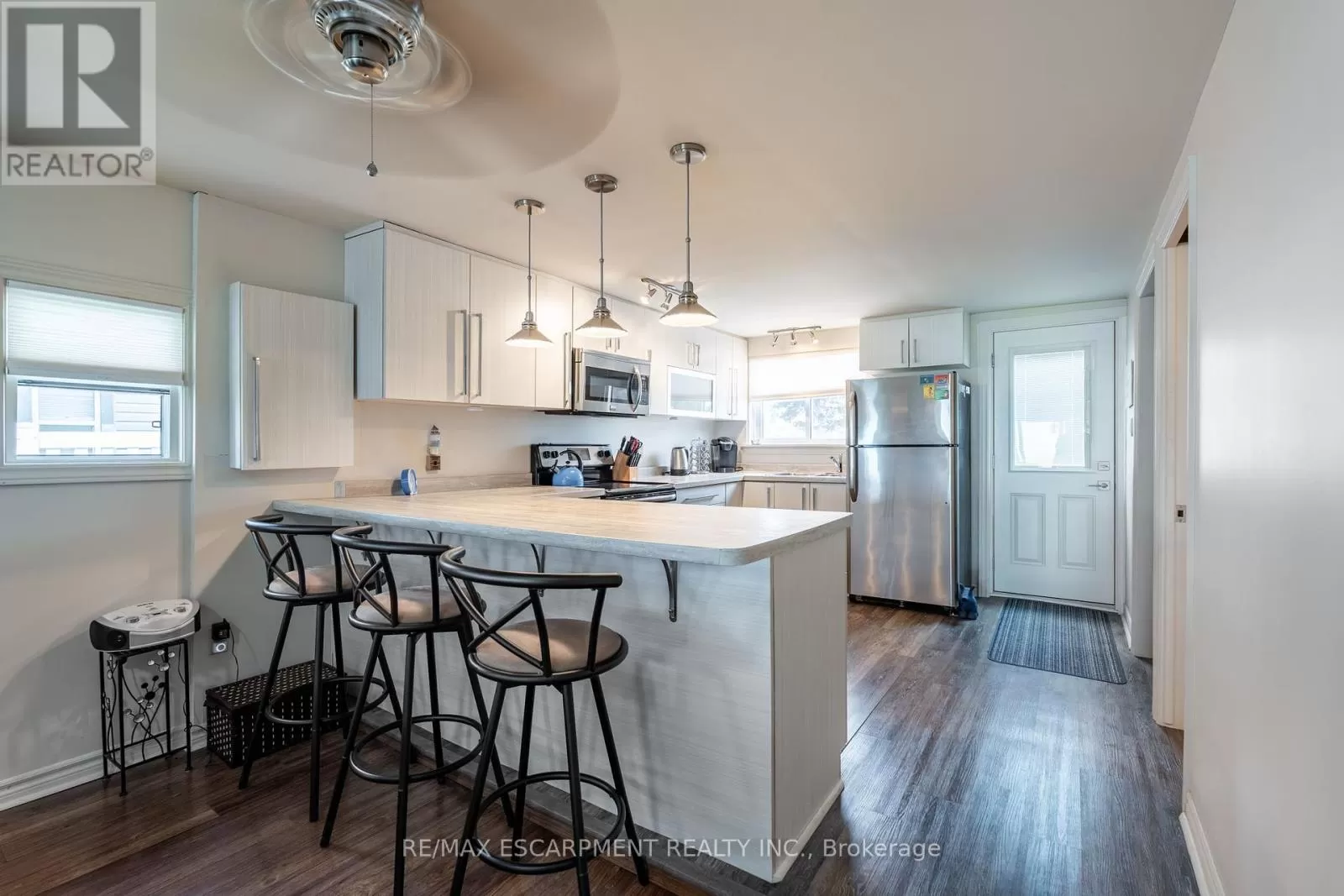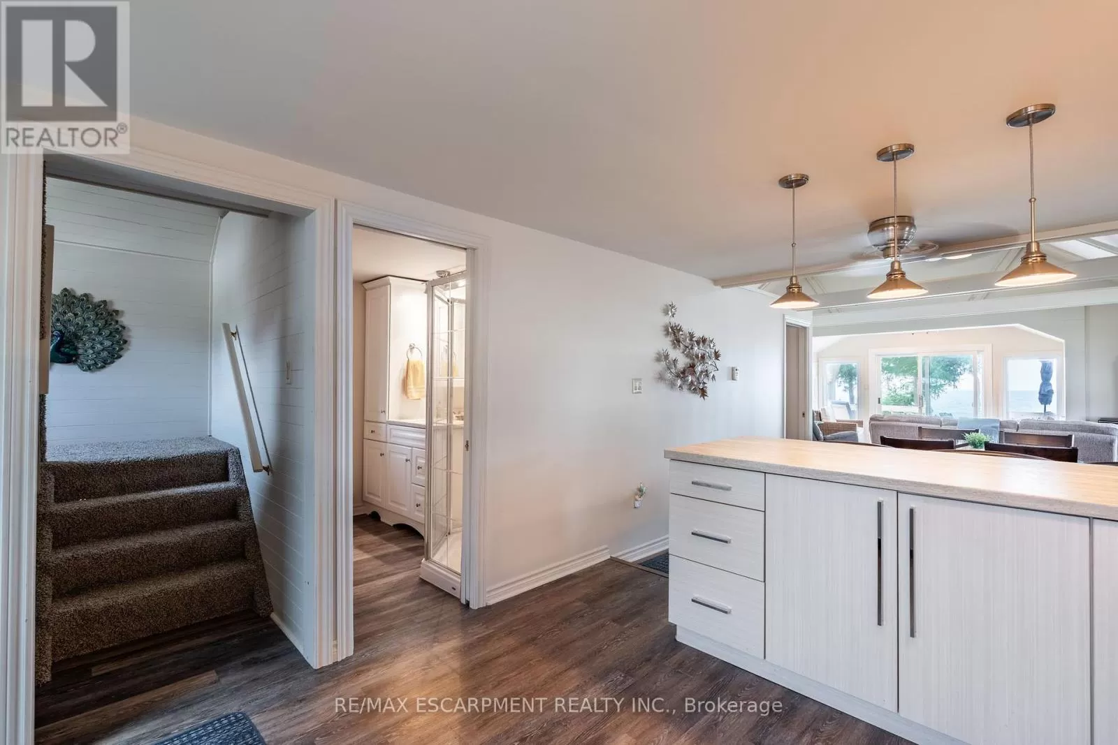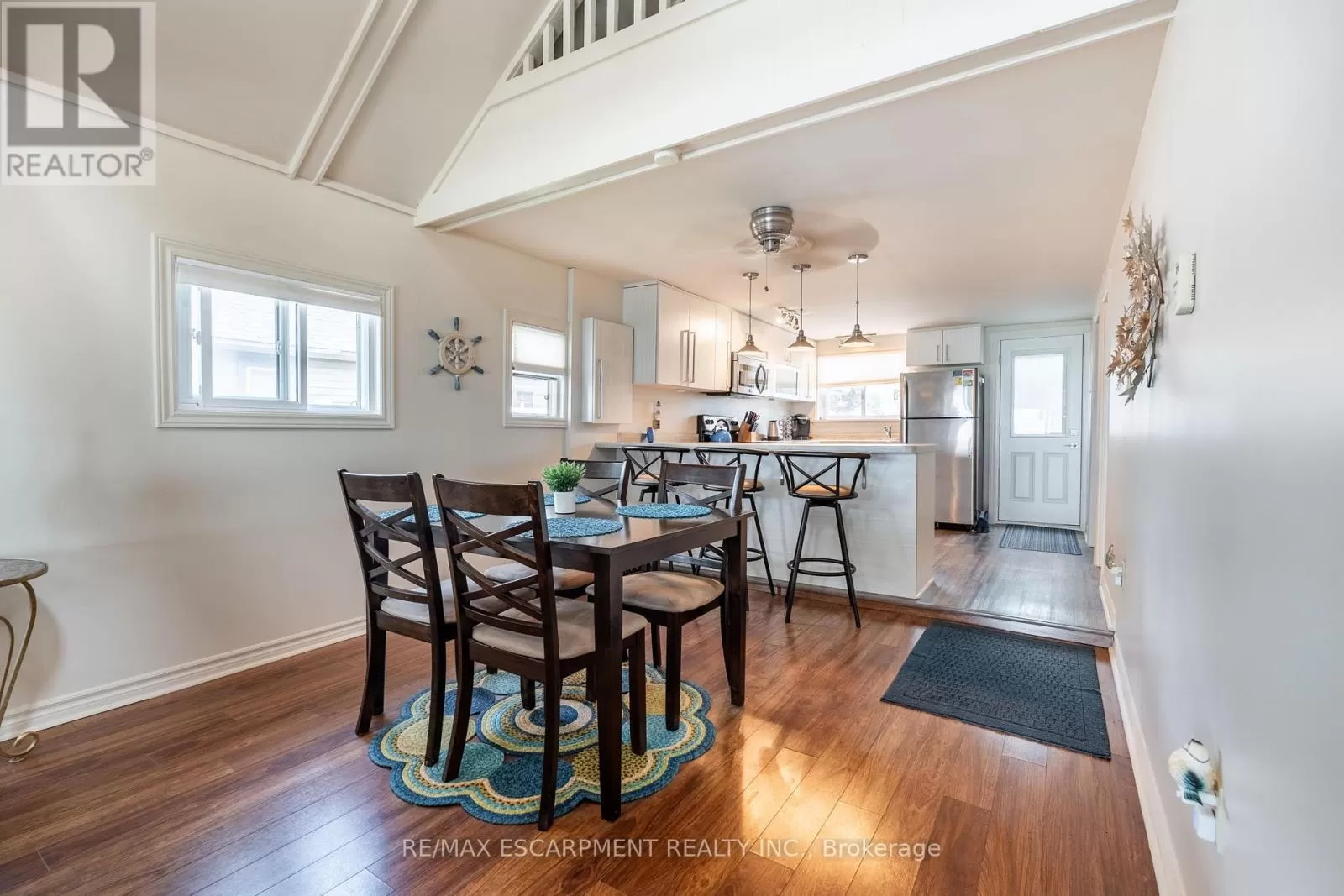 Cross Streets: South Cost Drive. ** Directions: HWY 3 - Sandusk Road - Lakeside Drive. Four-season home located directly on Lake Erie in the Peacock Point community. The property features an open-concept layout with water and sky views, a natural gas fireplace, and a modern 3-piece bathroom. The kitchen includes stainless steel appliances, ample cabinetry, and generous counter space. A spacious loft provides additional room for sleeping, office use, or storage. Outdoor spaces include front and rear decks, a lower patio, and a second seating area overlooking the lake. Additional features include a cistern for fresh water, seasonal water service through the Peacock Point Community system (Spring to Fall, annual cost: $315.00), a professionally built concrete break wall with steel stairs to the sand and gravel shoreline, a steel roof (2019), Fence (2024), parking for three vehicles, a holding tank for wastewater, an owned hot water tank, and on-site natural gas and electricity. Flexible closing is available. Recent survey available. (id:27476)