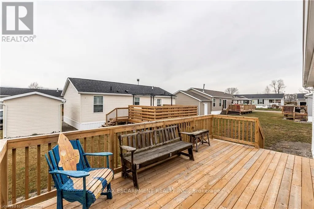 Cross Streets: CHEAPSIDE RD. ** Directions: CHEAPSIDE RD TO MURPHY LANE LEFT ON BENT WILLOW COURT. Welcome to this charming 1280 sq ft bungalow, located in a sought-after waterfront community on the shores of Lake Erie! This beautifully styled home offers one-floor living at its best, with a bright, open floor plan perfect for a relaxed & carefree lifestyle. Inside, you'll find 2 spacious bedrooms, including a primary suite with a large walk-in closet and private 3-piece ensuite. The inviting living room provides ample space for relaxing, entertaining, or setting up a home workspace. The trendy eat-in kitchen features a stainless-steel farmhouse sink, modern appliances, & plenty of storage. Window coverings & all appliances are included for your convenience. This vibrant community offers a host of amenities, including an outdoor pool, clubhouse (not open yet), dog park, walking trails, social events, & a private marina with boat slips available for an additional fee. Plus, all exterior maintenance such as snow shoveling and grass cutting is handled for you, making it the perfect worry-free option for snowbirds. Leave your home with peace of mind & enjoy winters without maintenance concerns. Monthly fees include a $420 land lease, $203+HST maintenance fee, and $194 property taxes. Experience a serene, active lifestyle surrounded by nature in this welcoming waterfront community! (id:27476)