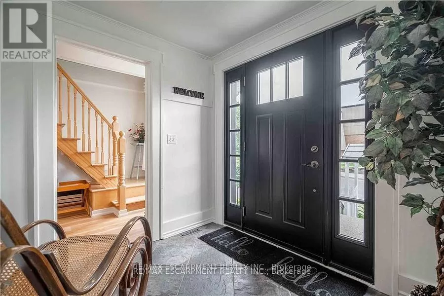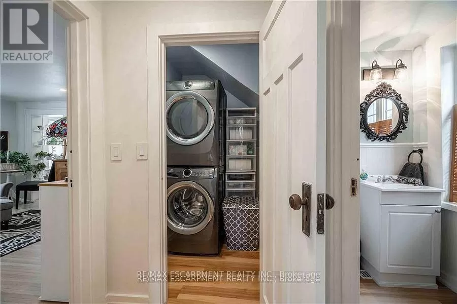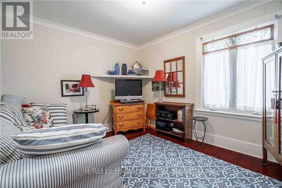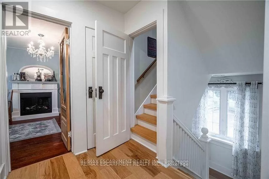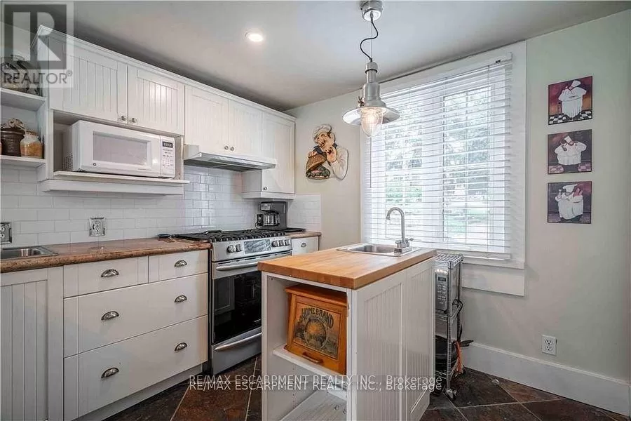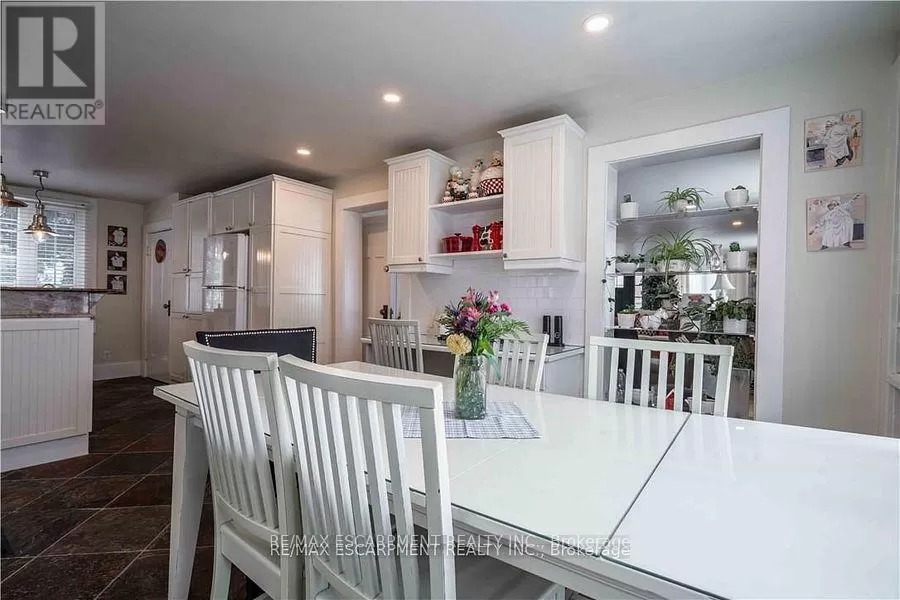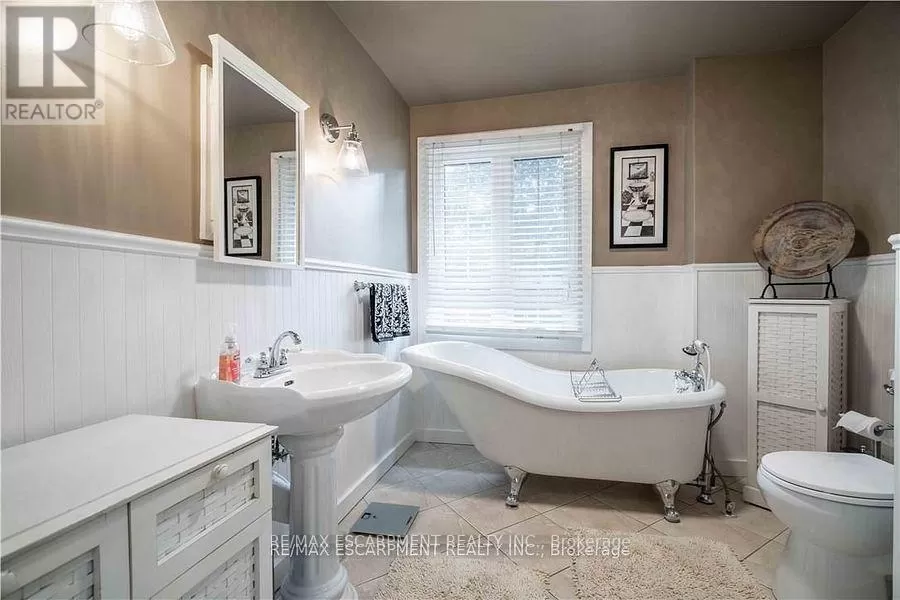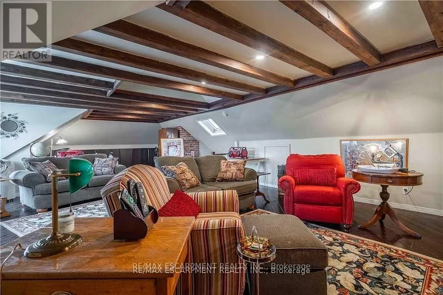 Cross Streets: Sutherland Street West. ** Directions: Hwy #6 to Argyle St. Here is your opportunity to own one of Caledonias notable homes. Enjoy this lovely home is surrounded by gardens & shady green space. Until recently, it was also the location of The Proper Topper Bridal shop -undergoing a metamorphosis to become a lovely family home which can be used for a home-based business. The owners have thoughtfully transformed this home while respecting its past. Boasting large principal rooms, light-filled rooms embrace a modern esthetic with neutral colours & lovely restored floors and/or engineered wood floors ("carpet-free" home!). Main level boasts a chef style kitchen, updated bath & incredible living room anchored with a whitewashed brick fireplace & refinished hardwood. Main floor laundry with newer washer/dryer. (Laundry hook-ups also on second level.) Restored bonus room for office or playroom. 2nd floor can be accessed by one of two staircases & has 3 generous sized bedrooms & a loft plus renovated bath with clawfoot tub & fully tiled shower. The showstopper is a double sized master bedroom oasis with windows overseeing backyard with mature shade trees. A 3rd level is a unique family room or private office with beamed ceilings, skylight, wooden floors & windows affording a view towards the Grand River. Many improvements: upgrades to all bathrooms, most newer windows, dramatic entrance door with sidelights, new wide baseboards, subway tile backsplashes, new & restored flooring, new light fixtures & pot-lighting. Building upgrades: metal roof, newer appliances, new sump pump & drainage system in basement, recent all owned furnace, water heater & AC. You will appreciate that there are no "popcorn" ceilings here! Offering a place of calm in a busy world. Kick back on your cedar deck, walk to local grocery & restaurants. Stroll along the river walk or visit Jones Bakery. This home has it all! (id:27476)