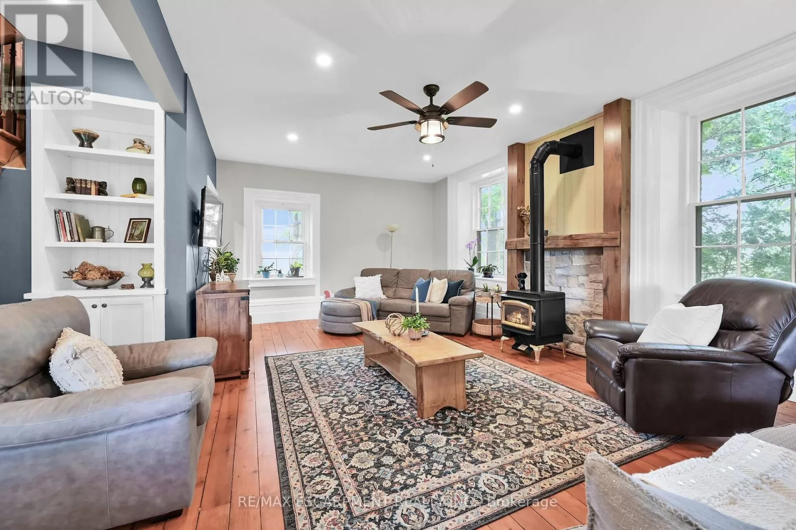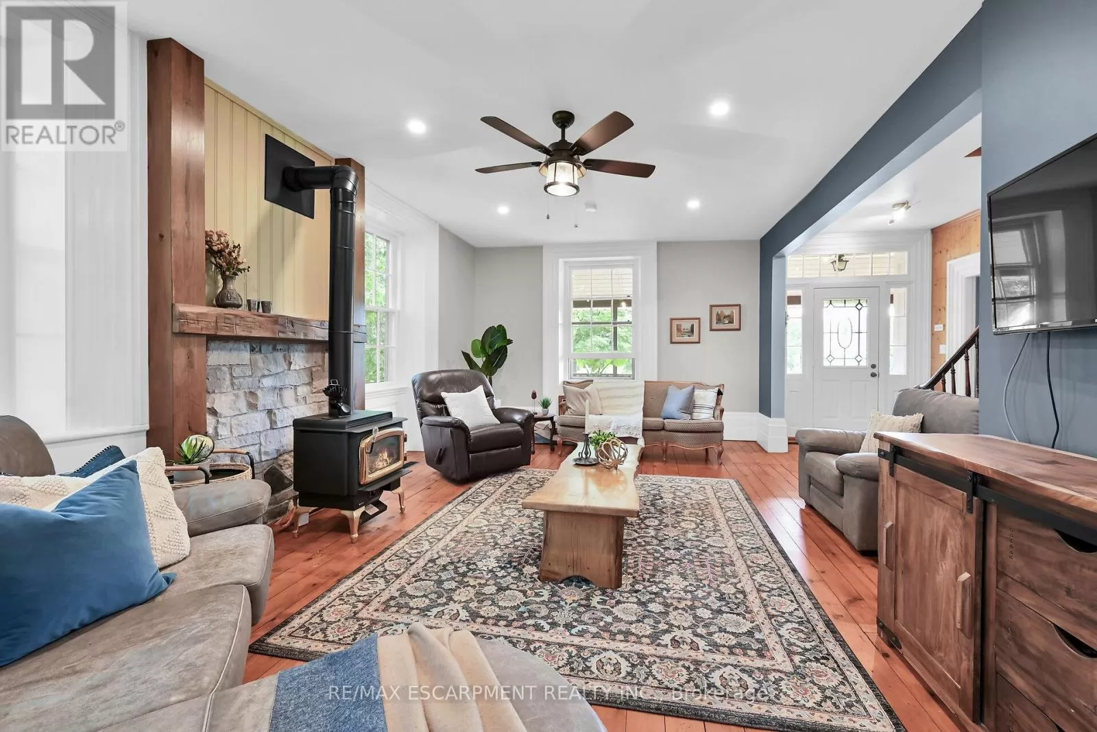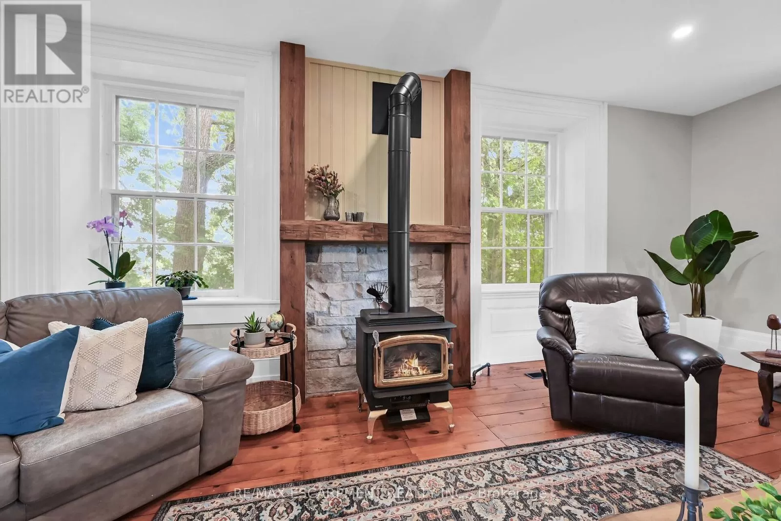 Cross Streets: Haldimand Rd 55. ** Directions: HALDIMAND ROAD 20 WEST FROM HAGERSVILLE, LEFT ONCONCESSION 14, THROUGH STOP SIGN, ON RIGHT HAND SIDE. This one feels like home! 3.66 acre country charmer features an 1890 farm house, oozing with character & has been lovingly maintained by current owner, providing the perfect combination of modern amenities while keeping the charm of yesteryear. Beautiful treed lot with farm fields behind, the house sits well back from the road. Enjoy the quaint covered front porch with views of your rolling front yard & quiet neighbourhood. Inside the house you will find soaring ceilings, massive thick basebord trim & window trim, rustic hardwood floors, vintage window style with cozy window seats. Main level features country kitchen, back mud room + 2 piece bath, dining room, living room with n/g fireplace, large laundry room plus 4 piece bath. Two stairway accesses to the upper level - one leading to bedroom/loft & the other to the rest of the upper level inc large master bedroom with walk in closet, 3 pc ensuite priviledge & 2 additional bedrooms which have been recently taken down to the studs and restored(2024). Lower level is in 2 parts - main area features an on grade walk out, large rec room/office/great space for a home business, plus garage/workshop. Other basement is more utility style - houses the hot water heater'17, electrical panel & water softener. Outside - the exterior of the original house is stone with siding on the addition. Asphalt shingles 2010. Drilled well, septic bed & lots of parking. The 3.66 acre parcel includes a lot in the front that is being sold with the property. This lot will permit a dwelling to be built on it - so if you are looking for property that will allow a second living quarters to be added - you have found it!! (id:27476)