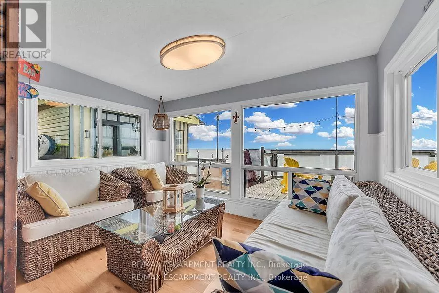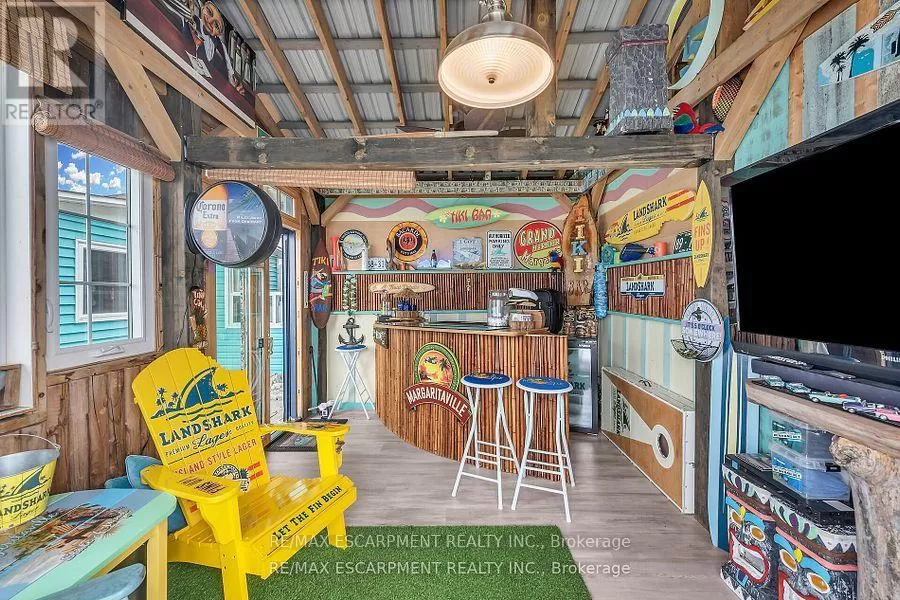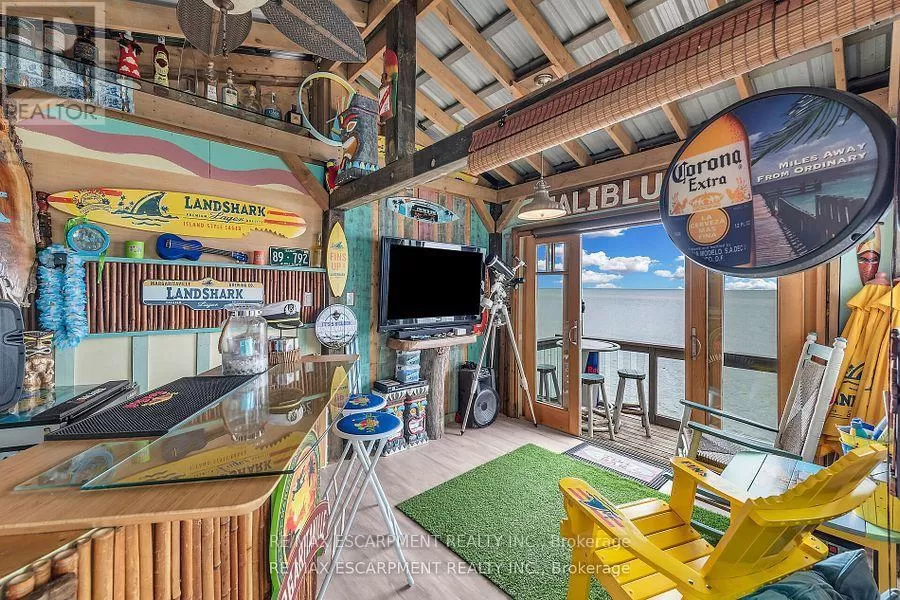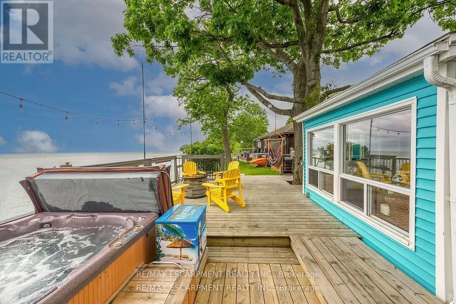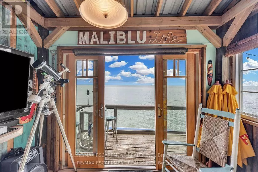 Lakeshore Road Welcome to Maliblue & start "California Dreamin"! Beautiful & Bright Lake Erie waterfront property enjoying panoramic water views from 500sf deck w/hot tub, 84sf tiki hut/bar balcony & over 1050sf of conc. patio w/freshly poured conc. pad on break-wall'20. Positioned on 0.14ac lot is renovated yr round cottage incs 856sf of beachie themed living area + N. side lot (separate PIN#) incs metal clad garage, multi-purpose building & conc. double parking pad. Ftrs fully equipped kitchen, living room boasting p/g FP & sliding door deck WO, sun-room, 3 bedrooms & 4pc bath. Extras -ductless heat/cool HVAC'22, standby generator'24, roof'13, windows'18, kitchen/bath flooring'24, spray foam insulated under-floor'22, block foundation, holding tank, cistern, 100 hydro, fibre internet, appliances & furnishing!15 mins W/Dunnville. (id:27476)