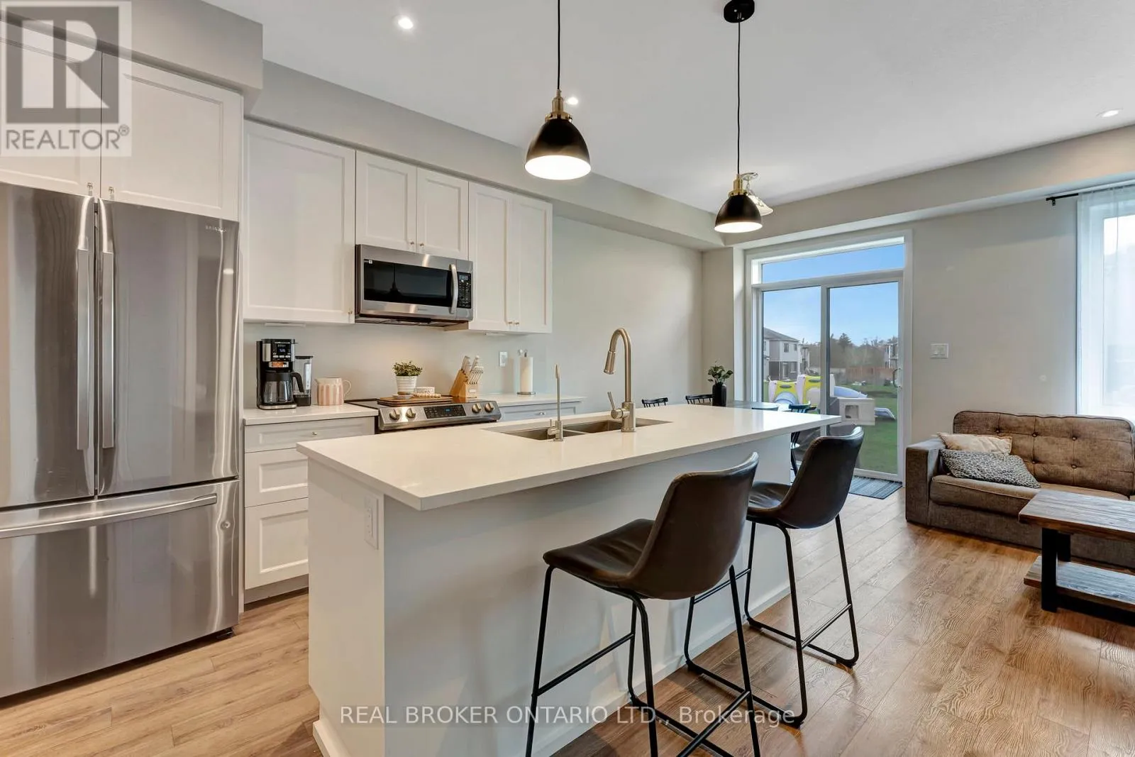 McClung to Rainbow Dr to the end. Turn Right on Whithorn Cres. turn right on Owl Cres, will be on your Right Welcome to this beautifully updated 3-bedroom, 2.5-bathroom townhome located in the sought-after Avalon community in Caledonia. Boasting over $65,000 in premium upgrades, this stylish and functional home is perfect for families and professionals alike. Step inside to discover a bright, open-concept layout with modern finishes throughout. The primary bedroom offers a private retreat featuring a luxurious ensuite with a glass-tiled shower and a walk-in closet. Two additional generously sized bedrooms share a well-appointed 4-piece bathroom, while the convenience of upstairs laundry adds to the home's appeal. The unfinished basement includes a rough-in for a bathroom and is ready for your personal touch, ideal for adding living space, a home office, or a gym. Located just a 2-minute walk to the neighborhood park and a 5-minute walk to the future school, this home is perfect for growing families. Close to the Hamilton Airport and the Amazon Fulfillment Centre, commuting is a breeze. Don't miss your chance to own a move-in-ready home in one of Caledonia's most vibrant communities! (id:27476)