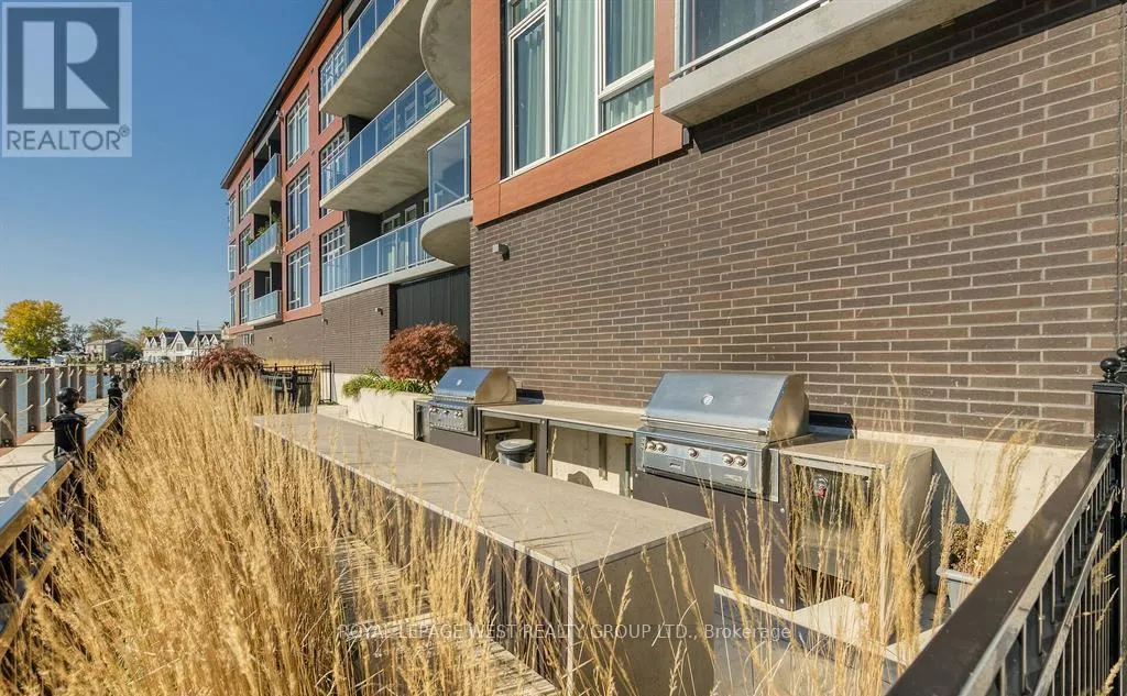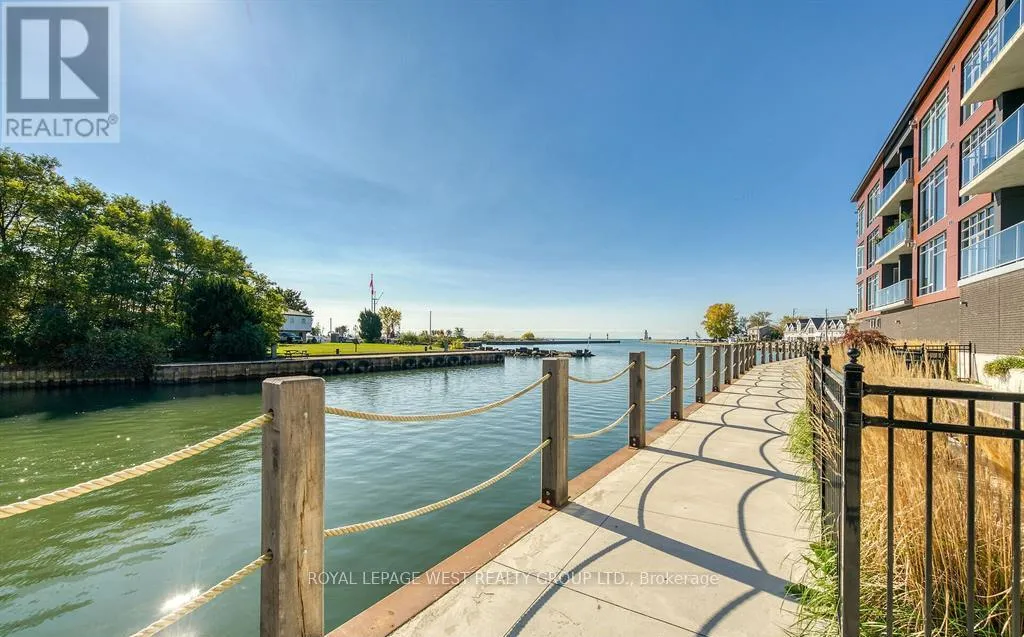Clinton St & St. Andrew St Experience refined lakeside living in this spacious 2-bedroom, 2-bath residence designed with elegance and comfort in mind. Expansive windows invite an abundance of natural light, highlighting soaring 9+ foot ceilings and premium flooring throughout without a trace of carpet. A striking double-sided fireplace creates a warm connection between the living area and the primary suite, where you'll find a generous ensuite and a discreet in-suite laundry.The layout is bright, airy, and thoughtfully finished for those who value both style and convenience. Parking is on the main level of the building for ease, while outdoors you'll enjoy common barbecue areas along the river that flows directly into Lake Erie. Just steps from the boardwalk, sandy beaches, fine dining, boutique shops, and the marina, this is truly year-round lakefront living an unmatched blend of sophistication and leisure. (id:27476)