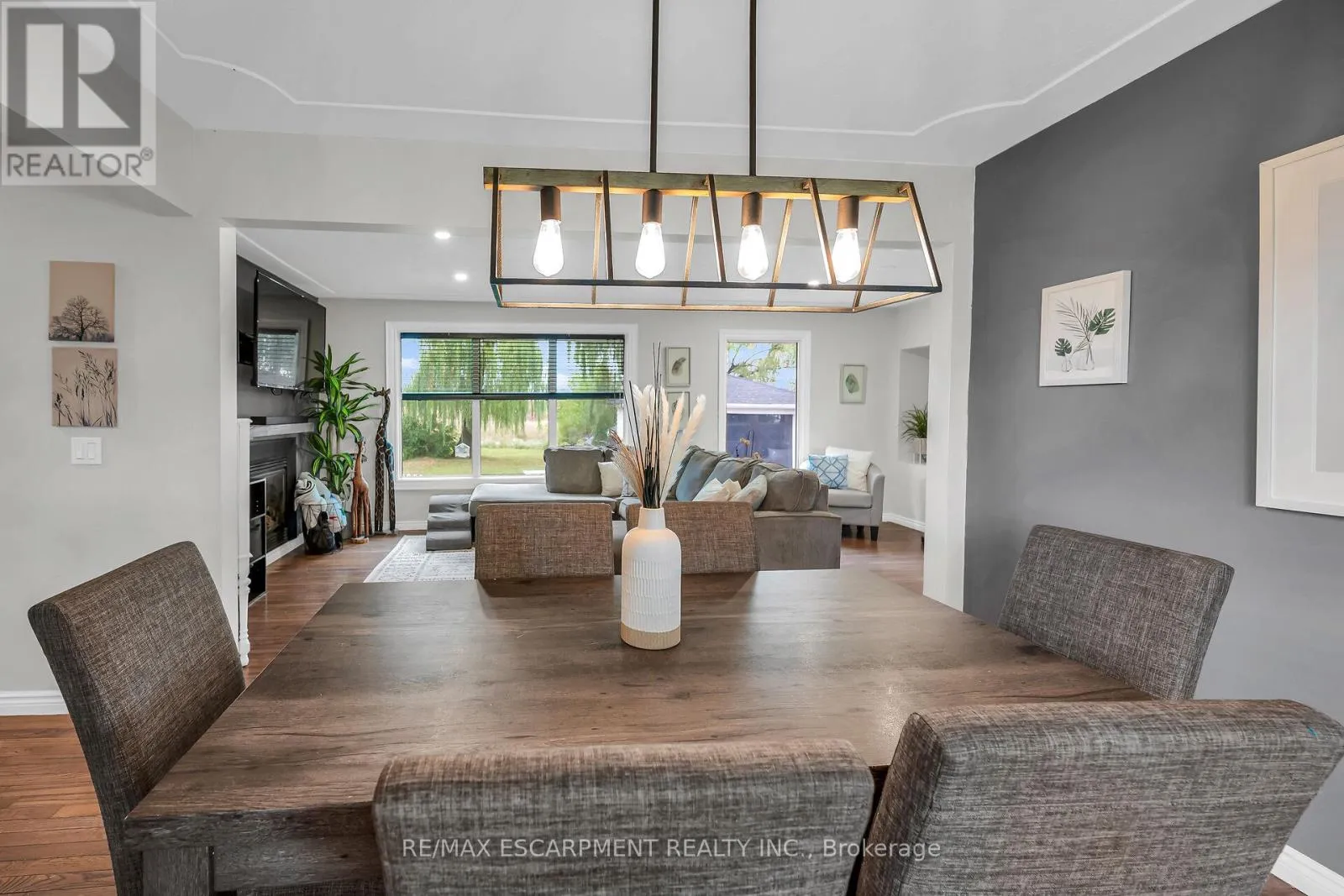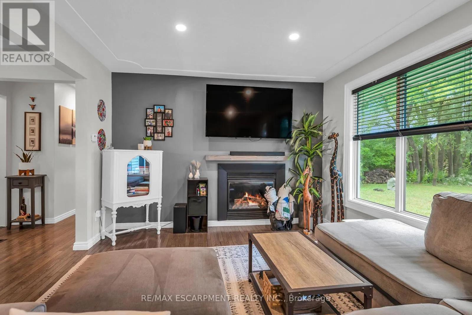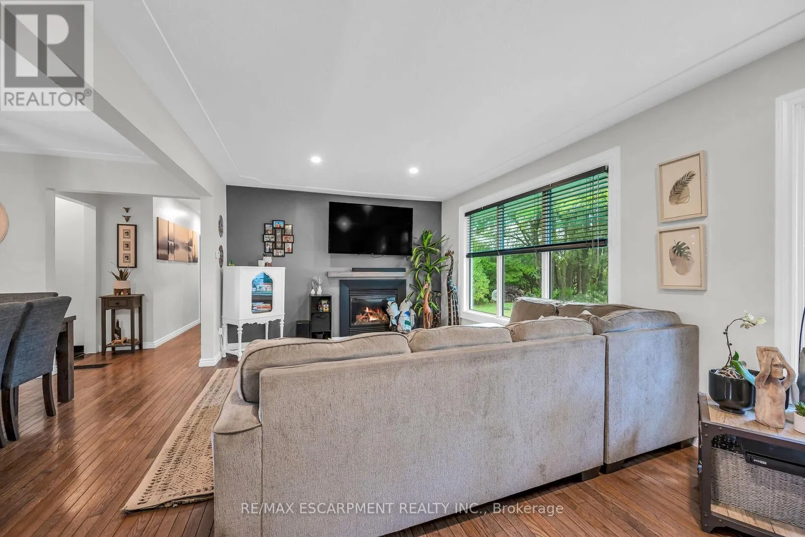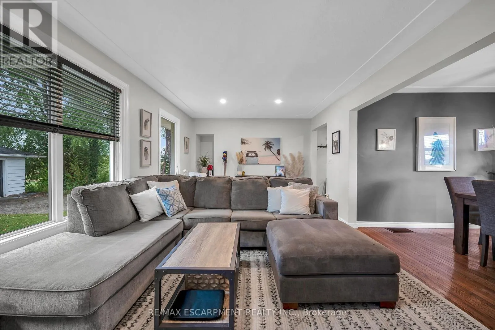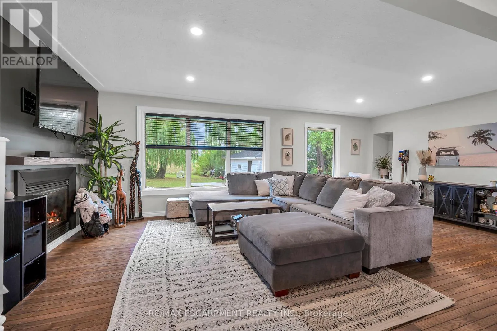 Cross Streets: 2nd Line. ** Directions: HIGHWAY 6 IN BETWEEN CALEDONIA & HAGERSVILLE. Beautifully updated, Charming 3-bedroom, 1-bathroom Bungalow ideally situated on 90 x 149.87 lot between Hagersville and Caledonia. This property showcases the perfect blend of country living with close access to amenities. Great curb appeal with sided exterior, ample parking, detached garage, & concrete patio area. The open-concept main floor features beautiful hardwood flooring throughout dining area & living room with built in gas fireplace, an updated kitchen with updated countertops & appliances included, 3 spacious main floor bedrooms with laminate flooring, 4 pc primary bathroom, & welcoming foyer. The unfinished basement provides excellent flexibility with the option to add to overall living space, gym area, storage, & laundry. With easy access to Hamilton, Ancaster, and Highway 403, commuting is simple, while nearby Hagersville and Caledonia offer shopping, schools, parks, splash pad, pool, and local amenities. Experience Hagersville Country Living. (id:27476)