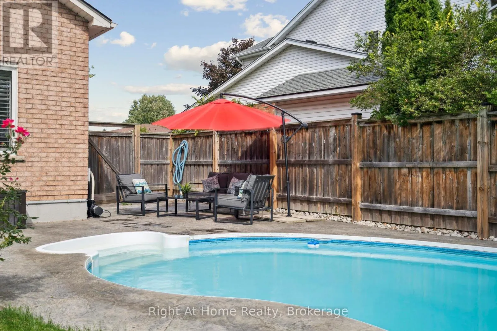 Cross Streets: Celtic and Argyle. ** Directions: Celtic Dr South to Scottswood Lane. Beautiful 1944 Square foot, 3+1 bedroom 4 bathroom home on an extra large lot complete with stunningly designed landscaping. Home features 15 foot vaulted ceilings in the living room with floor to ceiling natural stone gas fireplace and hardwood floors. Off of the living room you will step into the updated eat in kitchen with granite countertops and two custom cabinets. The kitchen leads you to the private rear yard with mature trees, in-ground swimming pool and stamped concrete patio. Second floor offers large master suite with walk-in closet and ensuite bath, and 2 good sized bedrooms. Fully finished basement adds plenty of additional space with family room, full bathroom, 4th bedroom, and utility/storage space. Quiet family friendly neighbourhood. Double car garage and stamped concrete driveway add that extra bonus! Close to parks, schools, community centre, river, and shopping. (id:27476)