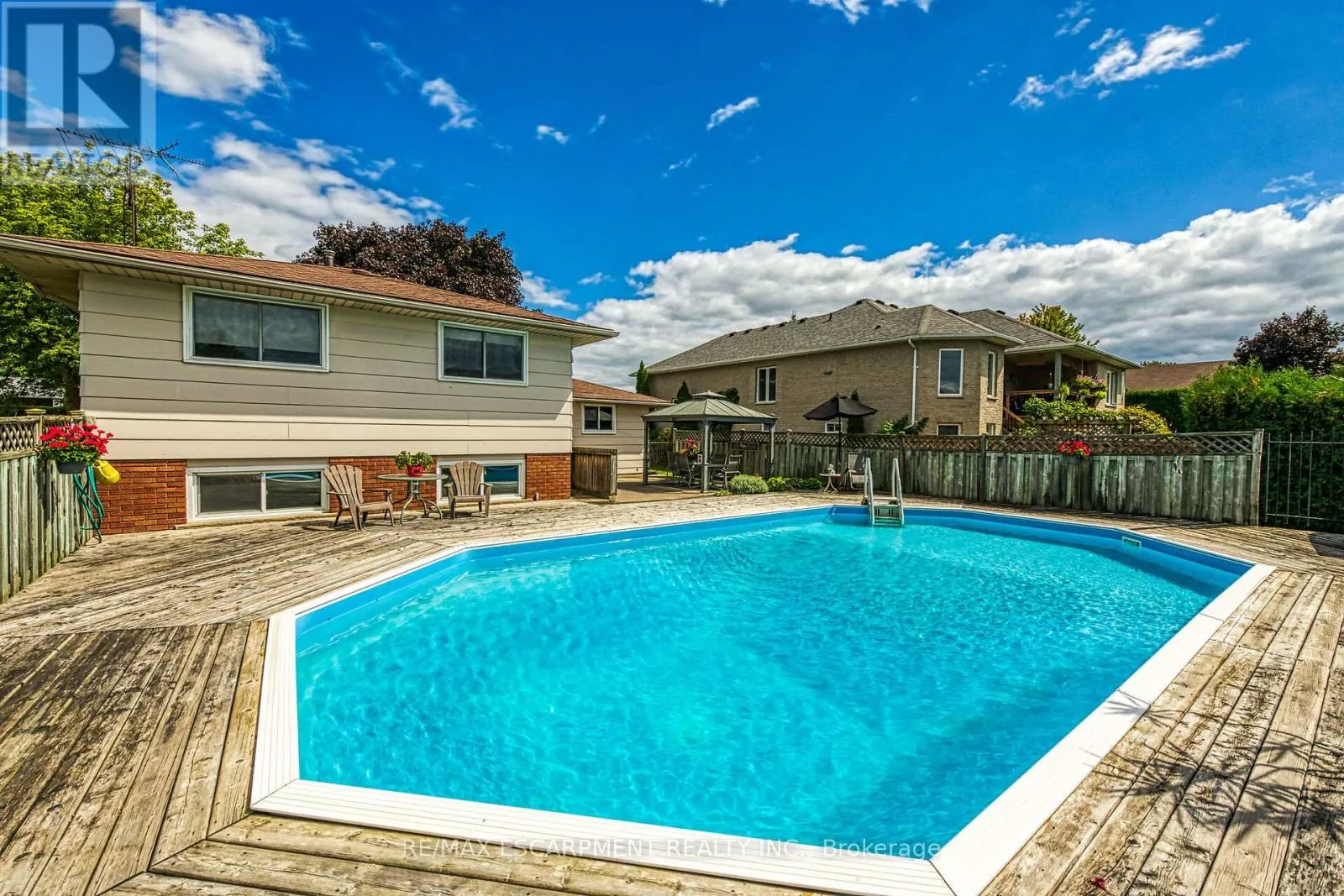 Cedar St Pride of original ownership is evident throughout this lovingly maintained 4 bedroom Raised Bungalow on sought after Athens Street situated on mature 66.25 x 132 fenced lot. Ideal for in-law suite or multi generational home with separate entrance into the basement. Great curb appeal with paved driveway, attached garage, fenced yard, & entertainers dream back yard Oasis complete with sparkling On ground pool, expansive deck, & gazebo area. The flowing interior layout includes foyer, eat in kitchen, large living room with front picture window, dining area, 3 spacious main floor bedrooms, & primary 4 pc bathroom. The partially finished basement features separate entrance into rec room, 4th bedroom, laundry, roughed in bathroom, and large unfinished area for you to add to overall living space / set up your lower level suite. Conveniently located close to amenities, parks, schools, & new library. Ideal home for the first time buyer, family, those looking to downsize, or 2 family home. (id:27476)