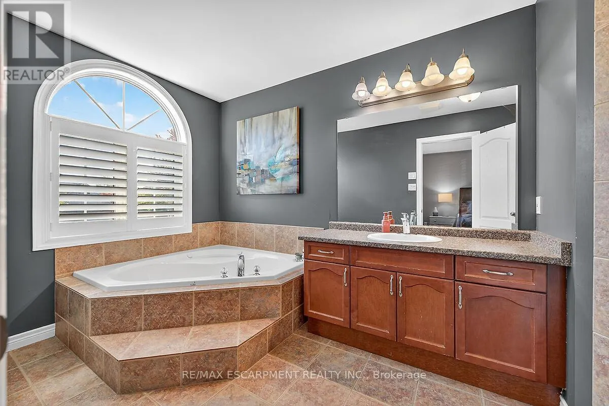 Dunrobin Dr Seize the opportunity to live on one of the most sought after streets in South East Caledonia. This contemporary family home boasts over 3,100 square feet of finished living space and is close to all amenities including schools, parks, shopping and recreation. The spacious kitchen offers extensive maple cabinets, stainless steel appliances and an open concept layout with vaulted ceilings overlooking the family room and dining space. Retreat to the upper level primary suite offering a walk-in closet and 4 piece ensuite complete with jetted soaker tub and separate walk in shower. Two additional bedrooms on this level share a separate Jack & Jill ensuite bath. The fully finished basement is great for family movie nights and offers a large recroom, work-out space, an additional bedroom and 3 piece bath. The rear yard extends your entertaining and leisure options with a covered outdoor room and hot tub. Act now to make this house your home! (id:27476)