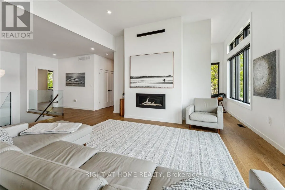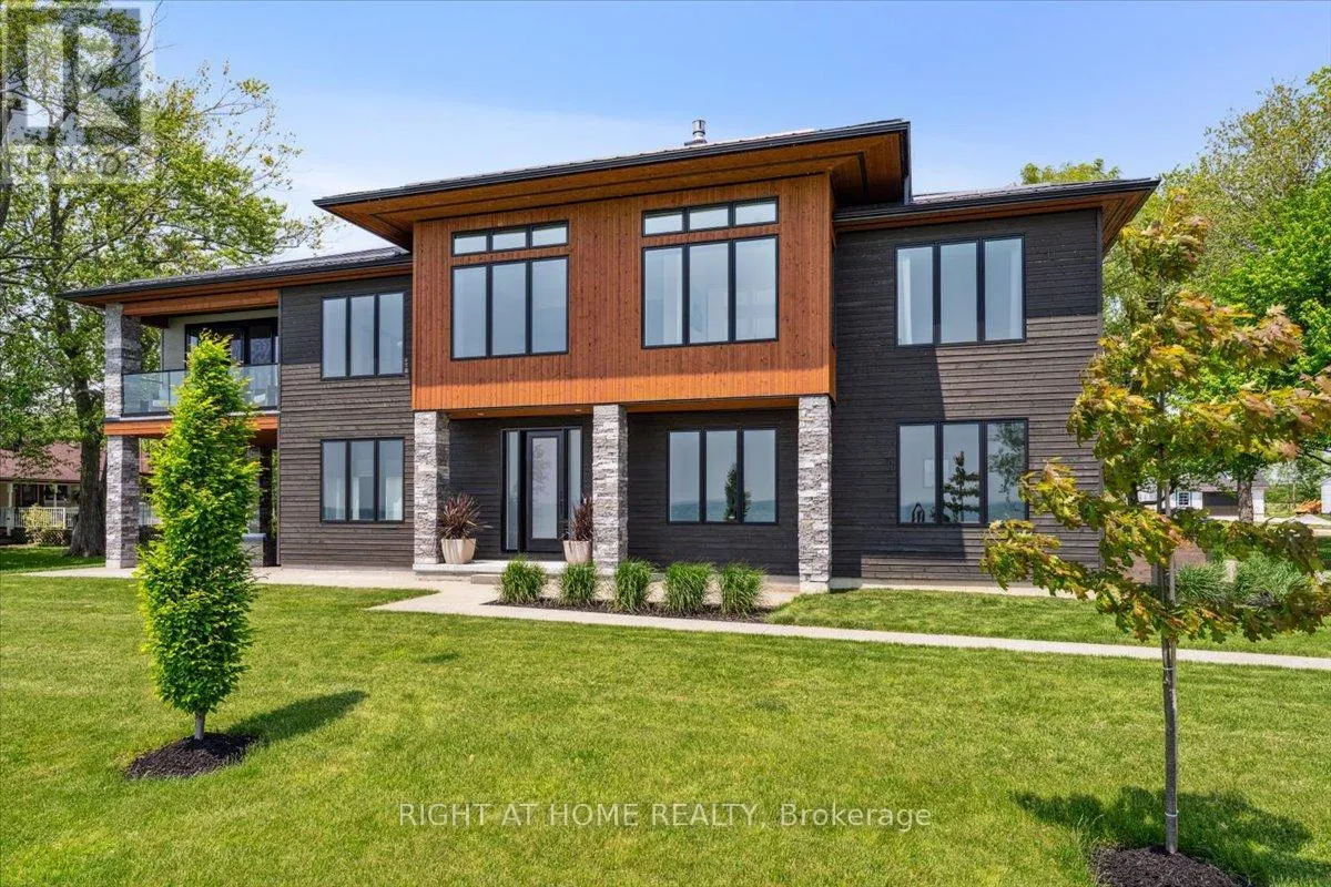 Cross Streets: Wheeler Rd. ** Directions: Wheeler Rd & Rainham Rd. Wake up to the gentle sound of Lake Erie's waves, sunlight streaming through wall-to-wall windows, and the promise of a day filled with serenity and relaxation. Welcome to 17 Bluewater Parkway in Haldimand County, a haven crafted for buyers seeking a luxury waterfront home. Step through the foyer, where engineered hardwood floors and soaring 9/11 ft. ceilings set the stage. The family room, warmed by a natural gas fireplace and framed by built-in cabinetry, invites cozy evenings with loved ones. A guest bedroom, 3pc bath, and a clever vanity/fridge/pantry nook create a welcoming retreat for visitors, while the in-floor heated garage and additional detached 2-car garage, accessible via an expansive aggregate driveway, add effortless convenience for cars, boats and toys. Ascend to the second level, where the open-concept kitchen becomes the heart of your story. European cabinetry, quartz counters, an oversized island, and high-end stainless steel appliances inspire culinary creations, while the dining and living areas, anchored by another fireplace, flow seamlessly to a sunroom. Here, a third fireplace and an expansive patio door open to a balcony, where lake breezes and sunset views steal the show. The primary suite, with its en-suite and walk-in closet, offers a private sanctuary. A 2-piece bath, laundry station, and a versatile studio perfect as a bedroom or office complete the narrative. Clad in Maibec siding with stone columns and a metal roof, this estate blends timeless craftsmanship with modern luxury. For those craving a lakefront escape closer than Muskoka, this is where your next chapter begins. Schedule a private tour and write your story at 17 Bluewater Parkway. (id:27476)