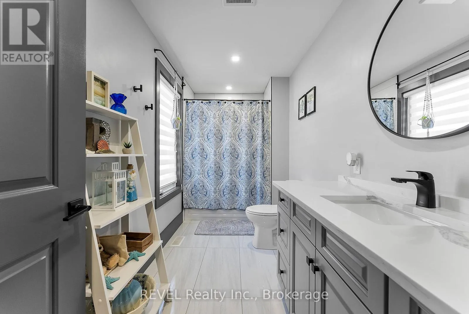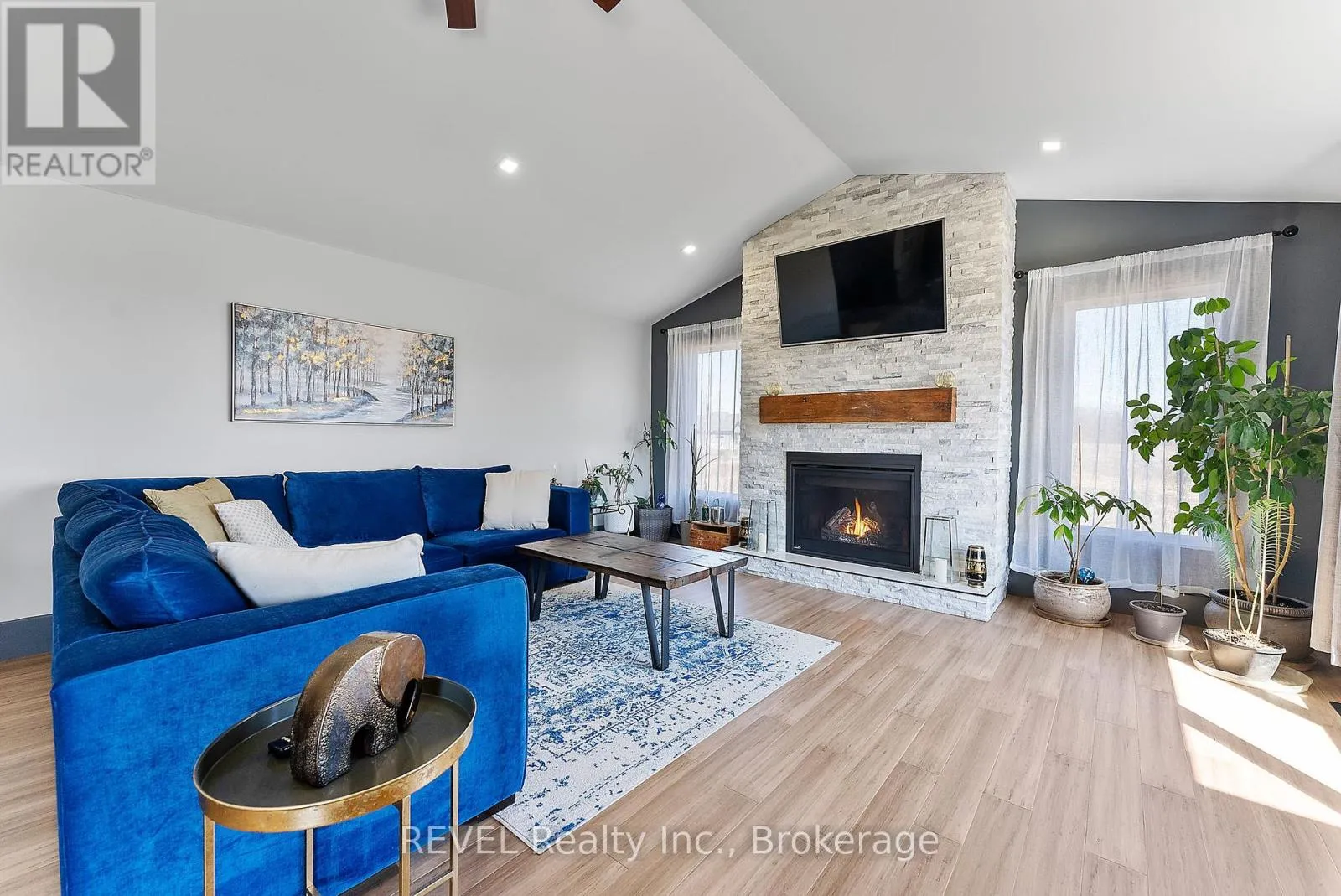 Cross Streets: Lakeshore Road & Reicheld Road. ** Directions: Lakeshore Road to Reicheld Road. Look no further! This custom built bungalow in Selkirk is your ideal oasis located on a 0.6 acre lot, near the tranquil waters of Lake Erie and surrounded by nature. Live in luxury with elevated finishes throughout this stunning home, from the porcelain floors in your entry foyer and bathrooms, to the vaulted cathedral ceiling and imported kitchen backsplash straight from Spain. In the kitchen enjoy an oversized island with storage on both sides, quartz counter tops, cabinetry with crown moulding and stainless steel appliances including a gas stove. The open concept living room boasts bamboo flooring, recessed lighting, a propane fireplace in beautiful stone mantel, and access to your covered back porch. The functional split floor plan features 2 sizeable bedrooms and 2 full bedrooms, including a primary bedroom with walk-in closet and 3 piece ensuite bath. Downstairs the unfinished basement of over 1600 square feet with legal egress windows, extra high ceilings, and bathroom rough-in is the perfect canvas awaiting your finishing touches. Outside the double attached garage with separate doors provides plenty of storage for your vehicles or outdoor toys and the triple wide driveway allows parking for 10+ cars. Leading up to the house is a lovely stamped concrete walkway, lined with flower gardens and ending at a covered front porch. The metal roof comes with a transferrable lifetime warranty, and the hot water tank is owned. Welcome to stress free, move-in ready living. (id:27476)