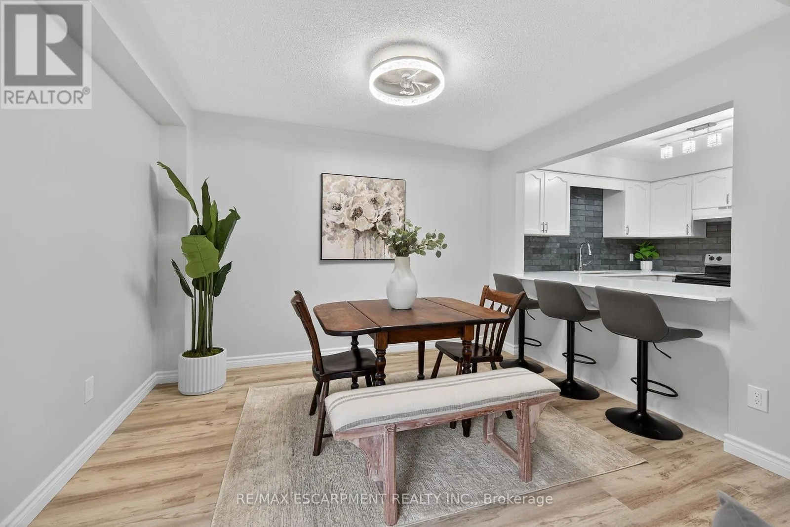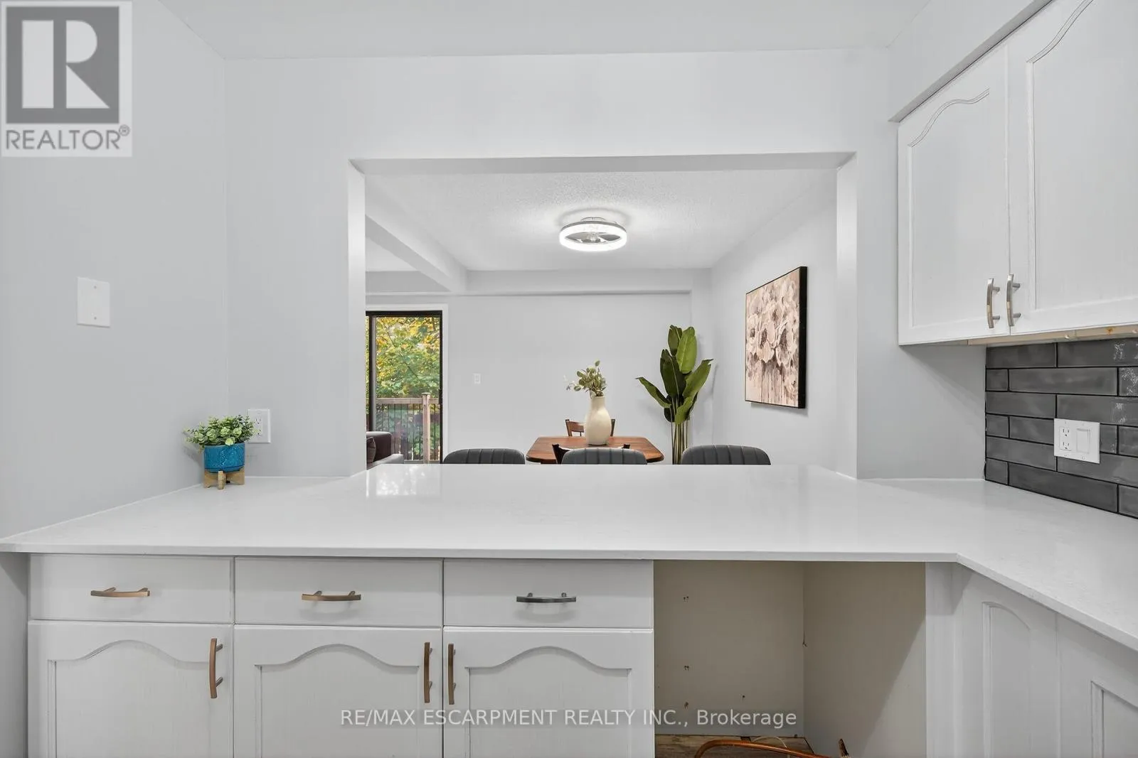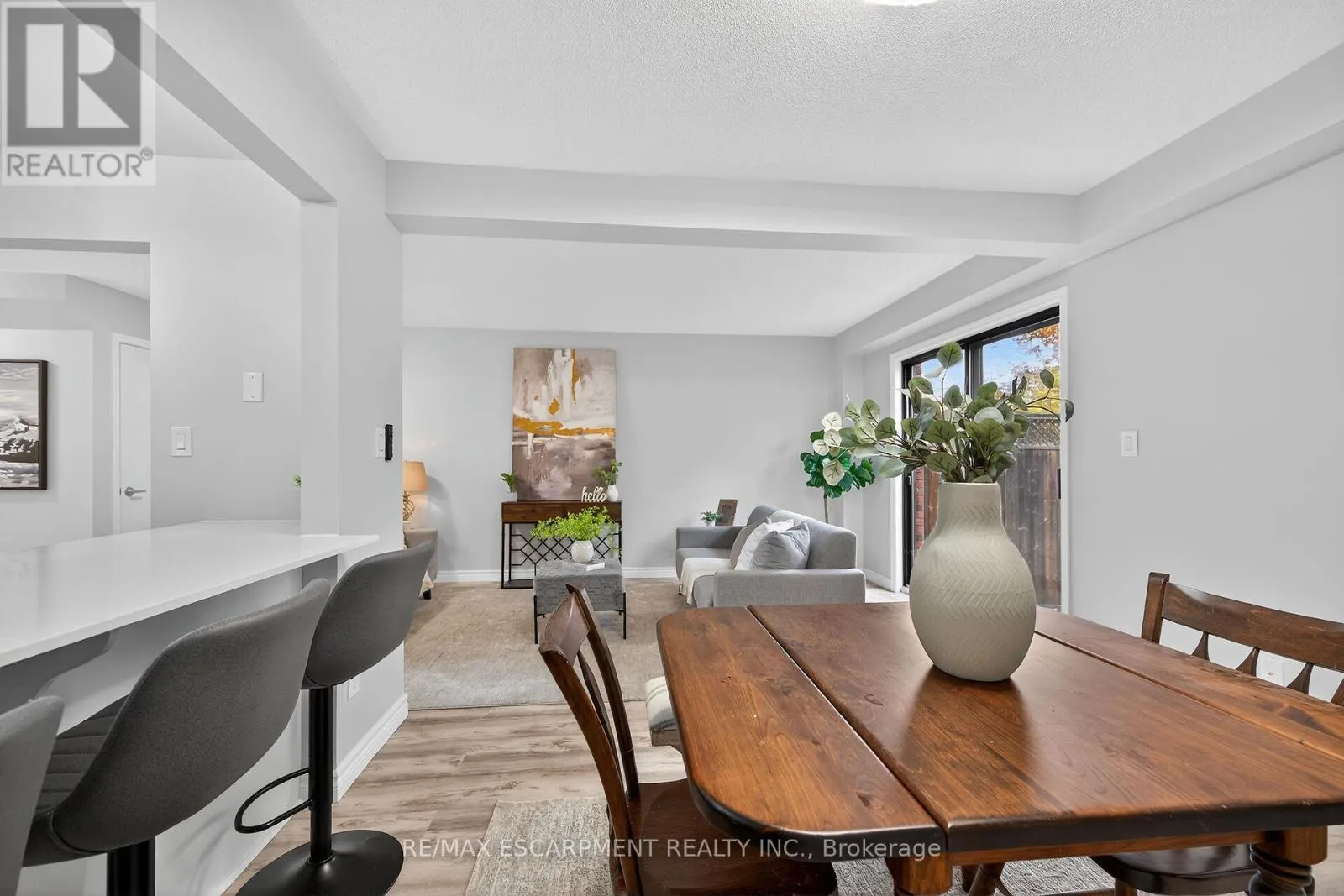 wigton st Exquisitely updated, Beautifully presented 3 bedroom, 2 bathroom townhome in Caledonia's sought after Southend. Great curb appeal with brick exterior, paved driveway, attached garage, & private backyard area with elevated deck. The flowing interior layout includes an open concept main floor layout highlighted by updated eat in kitchen with quartz countertops, breakfast bar open to the dining area, living room with patio door walk out to back yard, 2 pc MF bathroom, & welcoming open to above foyer. The upper level features 3 spacious bedrooms highlighted by primary suite with ensuite privilege to updated 4 pc bathroom. The unfinished basement allows you to add to your overall living space & provides ample storage, & laundry room. Updates include new kitchen, premium flooring throughout, modern decor, fixtures, & lighting, furnace, A/C, & owned hot water heater - 2025. Conveniently located close to parks, schools, shopping, restaurants, splash pad, & Grand River walking trail. Easy access to Hamilton, Ancaster, 403, & QEW. Ideal home for the first time Buyer, young family, or those looking for maintenance free Living. Rarely do homes with this location, stunning updates, & layout come available in the price range. Shows Incredibly well. Just move in & Enjoy Caledonia Living! (id:27476)