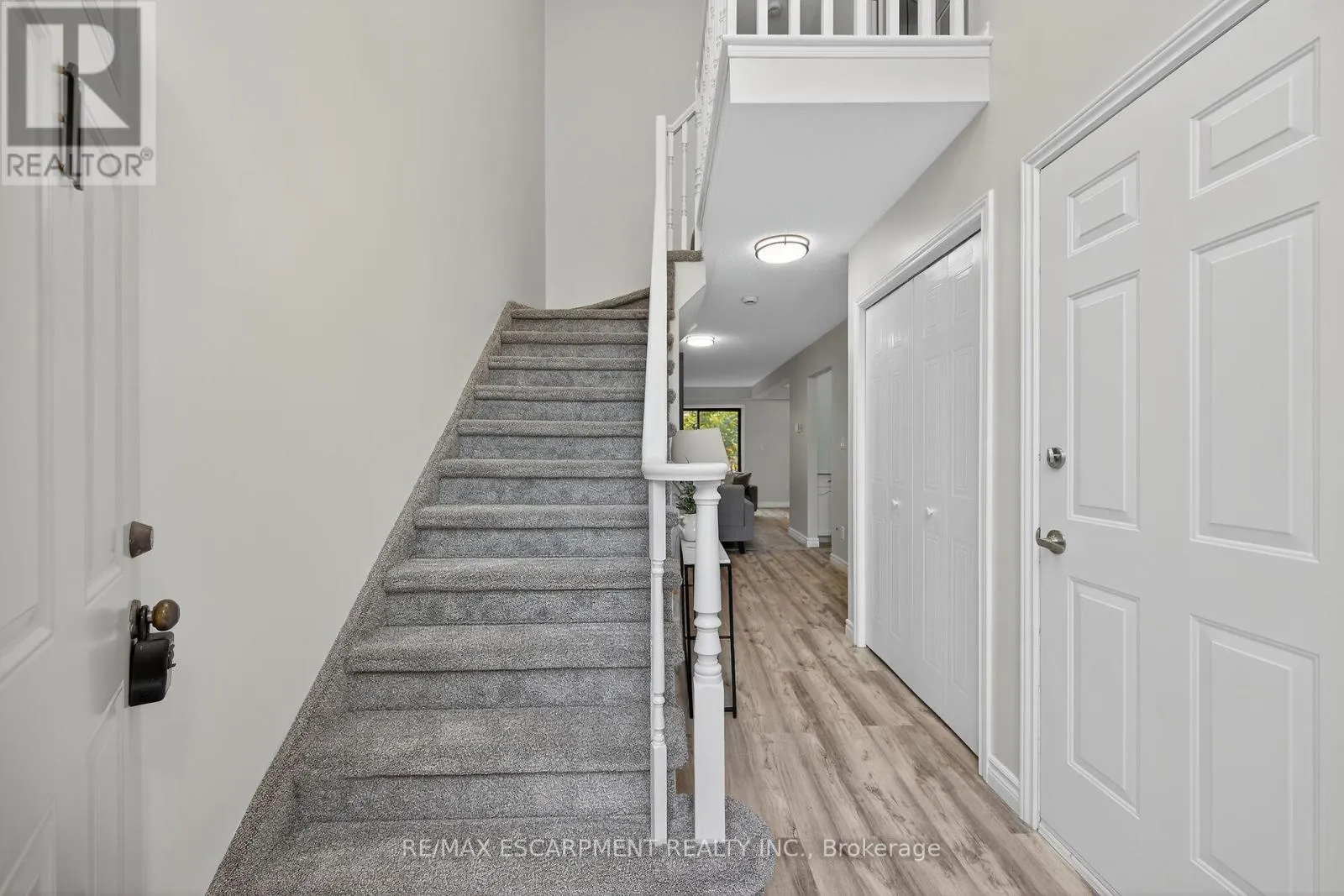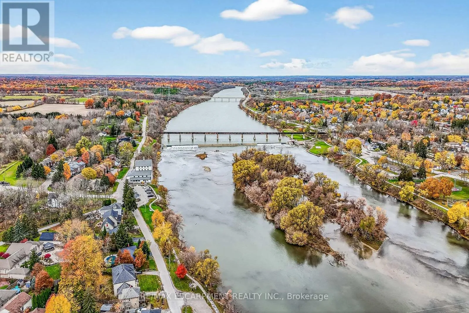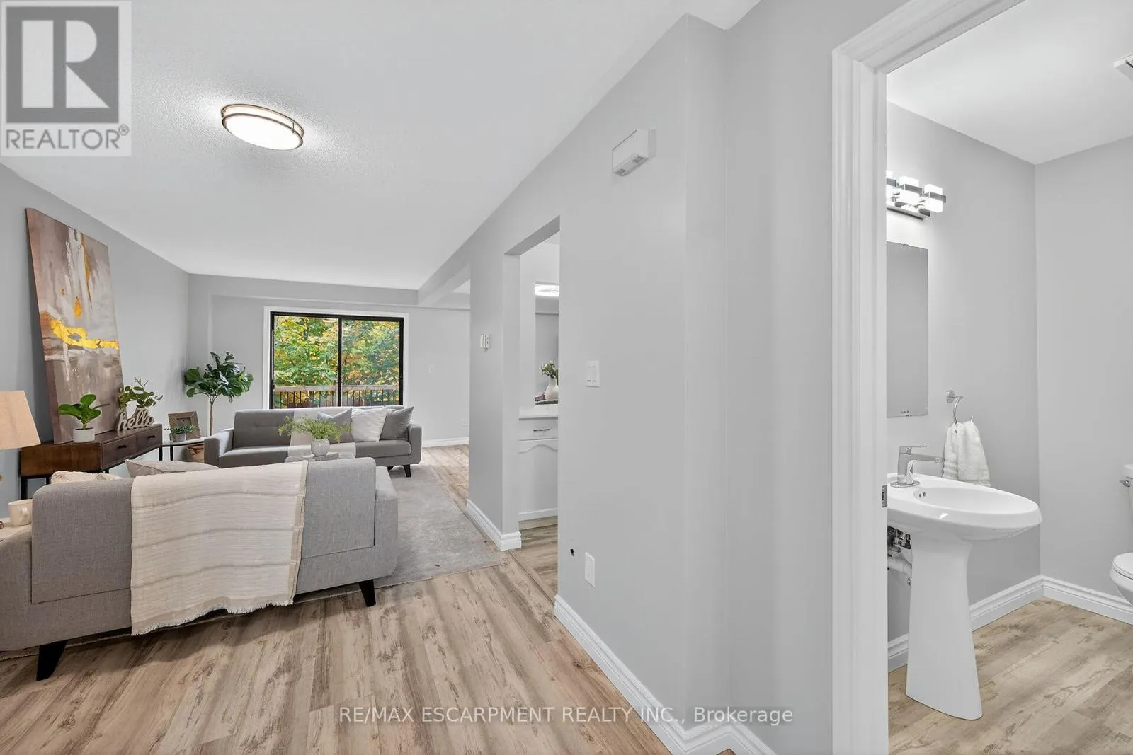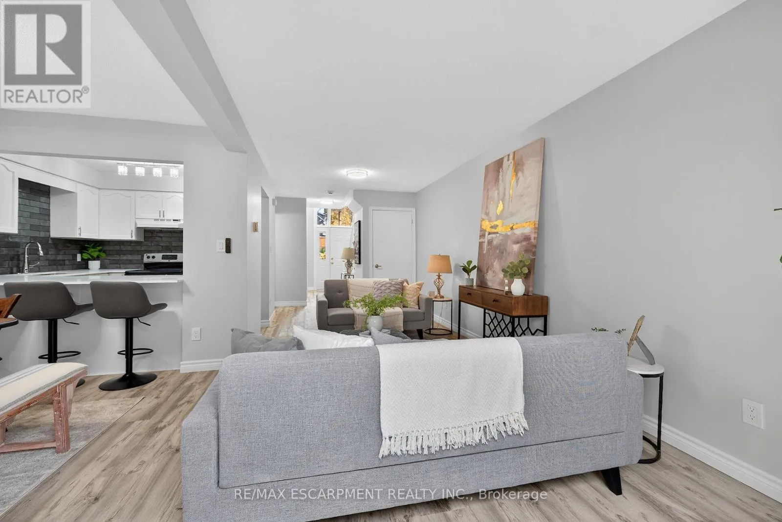 wigton st Exquisitely updated, Beautifully presented 3 bedroom, 2 bathroom townhome in Caledonia's sought after Southend. Great curb appeal with brick exterior, paved driveway, attached garage, & private backyard area with elevated deck. The flowing interior layout includes an open concept main floor layout highlighted by updated eat in kitchen with quartz countertops, breakfast bar open to the dining area, living room with patio door walk out to back yard, 2 pc MF bathroom, & welcoming open to above foyer. The upper level features 3 spacious bedrooms highlighted by primary suite with ensuite privilege to updated 4 pc bathroom. The unfinished basement allows you to add to your overall living space & provides ample storage, & laundry room. Updates include new kitchen, premium flooring throughout, modern decor, fixtures, & lighting, furnace, A/C, & owned hot water heater - 2025. Conveniently located close to parks, schools, shopping, restaurants, splash pad, & Grand River walking trail. Easy access to Hamilton, Ancaster, 403, & QEW. Ideal home for the first time Buyer, young family, or those looking for maintenance free Living. Rarely do homes with this location, stunning updates, & layout come available in the price range. Shows Incredibly well. Just move in & Enjoy Caledonia Living! (id:27476)