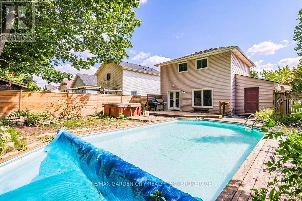 Cross Streets: From McKenzie/Haddington, S on McKenzie, W on Morgan. ** Directions: South on Mackenzie turn west onto Morgan Drive. Welcome to this charming three-bedroom, one-and-a-half-bathroom two-storey home located in the quiet town of Caledonia. Nestled on a private lot backing onto a school and wooded area, this property provides a rare sense of privacy with no rear neighbours. The main level features a bright eat-in kitchen with white cabinetry and granite countertops, opening into a spacious living and dining area highlighted by a cozy gas fireplace and French doors that lead to the backyard. Upstairs, the primary bedroom offers a large closet, complemented by two additional bedrooms and a four-piece bathroom. The finished basement extends the living space with laminate flooring and a second gas fireplace, creating a comfortable setting for relaxation, gatherings, or a home office. Outdoors, enjoy your own retreat with a 15x30 chlorine pool, hot tub, and forested views that set the tone for entertaining or quiet evenings at home. A heated double-car garage adds practicality with inside entry, backyard access, a gas heater, and a bonus storage or workshop room behind the garage, providing excellent space for projects year-round. Located within walking distance to schools, parks, shopping, and community amenities, this home offers a blend of comfort, functionality, and lifestyle in a sought-after neighbourhood. (id:27476)