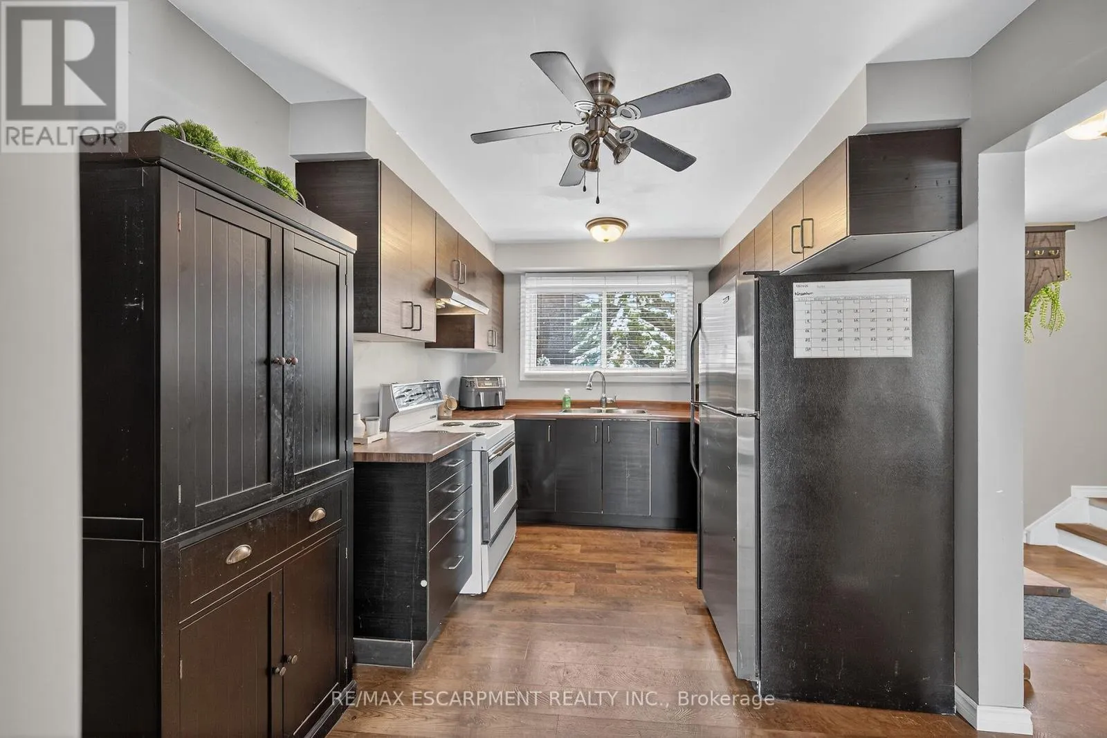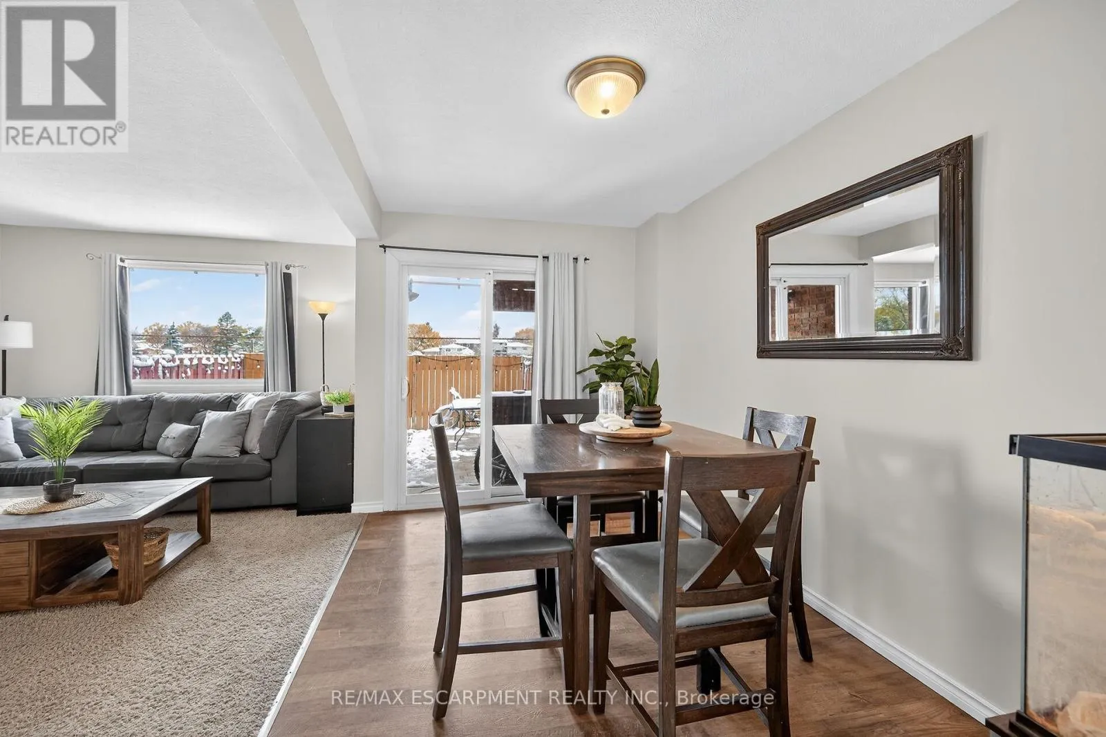 Craddock Blvd Tastefully updated & Attractively priced 3 bedroom, 2 bathroom Jarvis townhome backing onto open space. Great curb appeal with brick & board & batten exterior, welcoming front porch, & fenced back yard with patio. The flowing interior layout includes an open concept main floor highlighted by updated kitchen cabinetry & flooring, dining area leading to patio door walk out to backyard, large living, 2 pc bathroom, & inviting foyer. The upper level provides 3 spacious bedrooms & refreshed 4 pc bathroom. The finished basement provides additional living space with large rec room, laundry area, storage, & utility area. Conveniently located close to parks, schools, shopping, restaurants, downtown amenities, & close to Port Dover, Simcoe, & Brantford. Relaxing commute to Hamilton, 403, QEW. Ideal for the first time Buyer, young family, or those looking for maintenance free living. A instant equity builder! Enjoy all that Jarvis Offers! (id:27476)