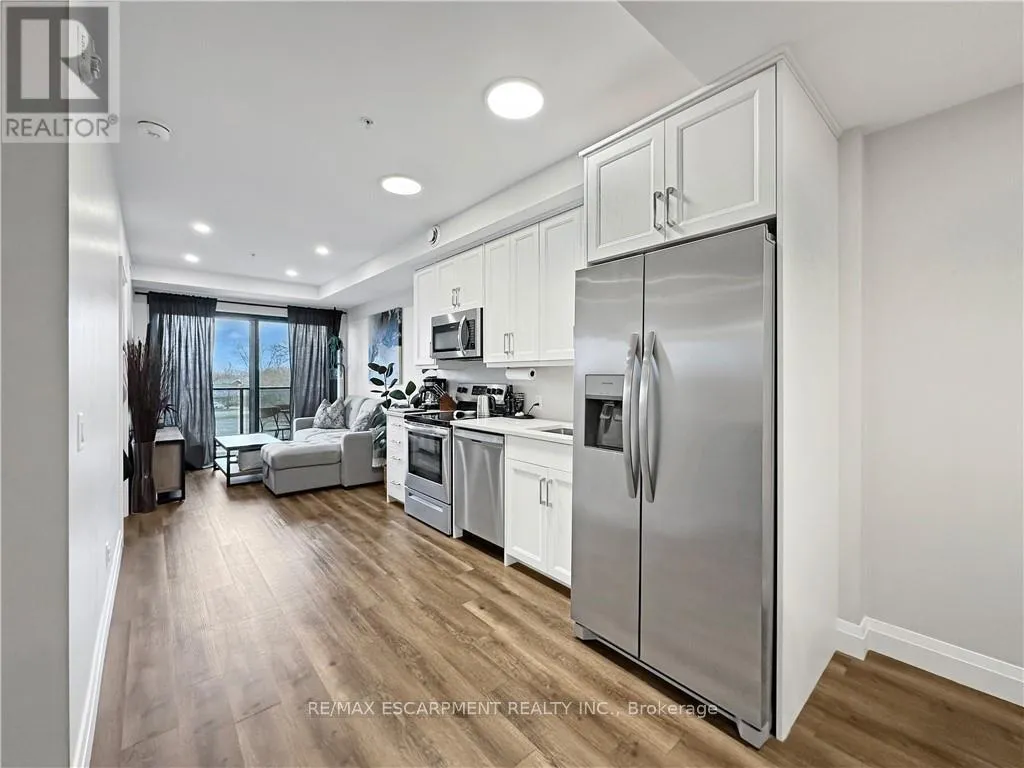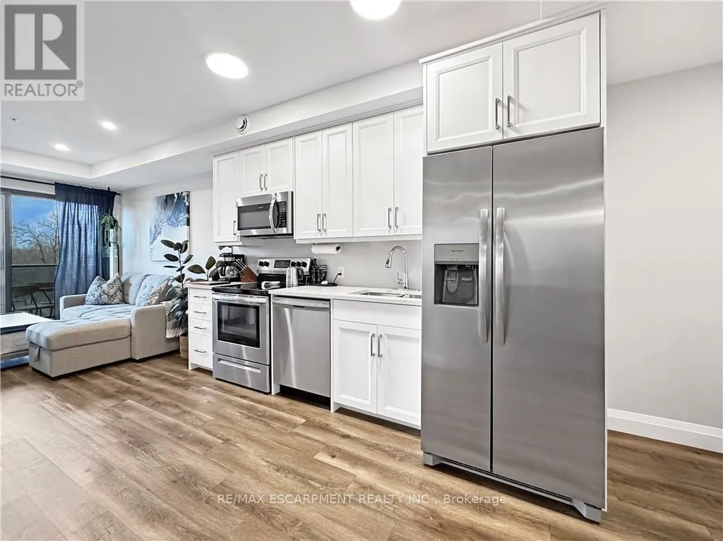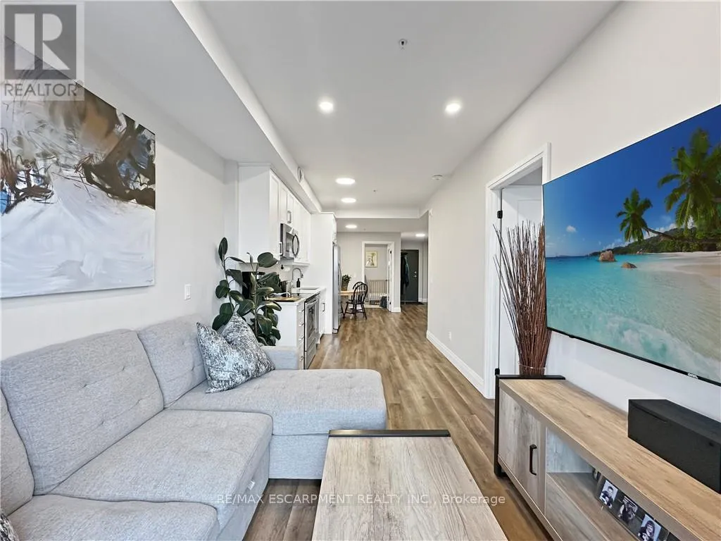Cross Streets: Victoria Street. ** Directions: Highway 6 turns into Main St N. Discover incredible value in this stylish, move-in ready two-bedroom condo! Thoughtfully designed with open-concept living, this home features a modern kitchen with high-end Winger's cabinetry, sleek quartz countertops, and stainless steel appliances. The spacious primary suite includes a generous closet and private ensuite, while a second bedroom and full bath offer flexibility for guests or a home office. Enjoy the convenience of in-suite laundry and an included parking space. Don't miss this opportunity for affordable ownership with quality finishes throughout! (id:27476)