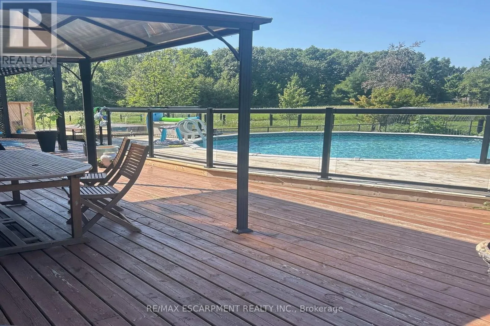 HIGHWAY 3 TO JUNCTION ROAD Truly Irreplaceable & Masterfully designed 10 acre Canfield Country Estate offering Ideal equestrian set up, hobby farm, home based business, or those looking for the privacy & peacefulness that Country Living offers. This stunning property features 40' x 40' heated shop with infloor heat & woodstove, additional 24' x 26' garage, 30' x 40' barn with 2 horse stalls, heated tack room, & hay storage, 4 paddocks with "electrobraid" fencing, 120' x 160' outdoor sand riding ring, & exquisitely updated 5 bedroom, 2 bathroom 2 storey home. Incredible curb appeal with wrap around covered porch, vinyl sided exterior, ample parking, 3 separate driveway accesses, multiple varieties of fruit trees, greenhouse, chicken coop, AG pool, hot tub, & covered back porch with pergola overlooking calming country views. The gorgeous interior includes approximately 3000 sq ft of distinguished living space highlighted by an open concept main floor layout, eat in kitchen with custom cabinetry, formal dining area, large living room overlooking backyard, 4 pc bathroom, desired MF laundry, & welcoming foyer / mud room. The upper level features 4 spacious bedrooms including primary bedroom with ensuite. The finished basement includes large rec room, 5th bedroom, storage, & roughed in bathroom. Updates throughout include premium flooring, modern decor, fixtures, & lighting, wood beamed accents, & more! Conveniently located 30 mins South of Hamilton, 403, & QEW. Its more than just a home - it a Lifestyle & one that you deserve to Experience. (id:27476)