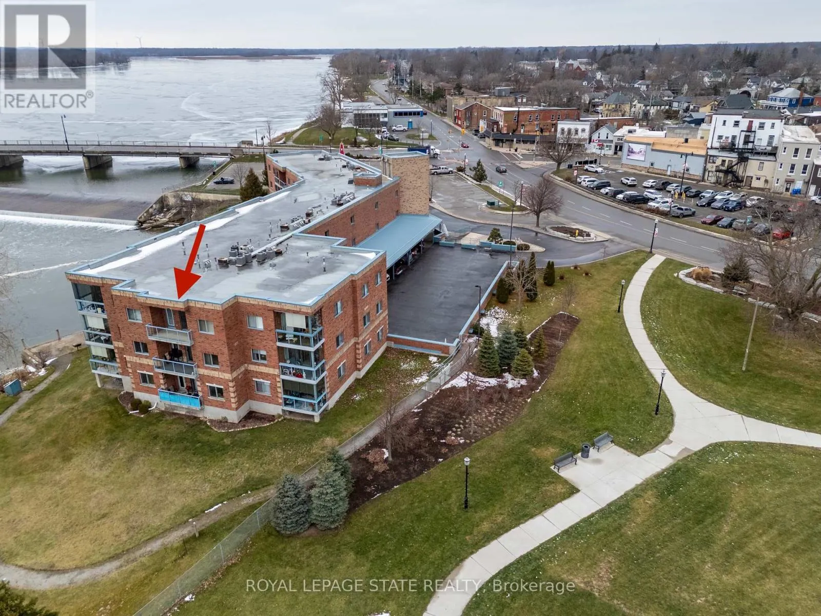 Cross Streets: Queen St. ** Directions: Corner of Main St E and Queen St. Welcome to Grand River Landing! This riverside waterfront condo is a sought after, rarely offered plan, enjoying desirable south east exposure with beautiful sunrise views along the Grand River. The open-concept layout features a kitchen with oak cabinetry, and an eat-at "bar height" peninsula, flowing into a bright wide living/dining area with large sliding doors to a private balcony overlooking the water and marina. The spacious primary bedroom offers a walk-in closet and 4-piece ensuite and separate balcony walkout. Features include an additional 2-piece bath, in-suite laundry room/utility room, exclusive storage locker and underground parking. Ideally located within walking distance to Dunnville's amenities, including the Farmer's Market, shops, cafés, restaurants, parks, hospital, library, and recreation centre. An exceptional opportunity to enjoy waterfront living and all that Dunnville has to offer. Recent central air unit. (id:27476)