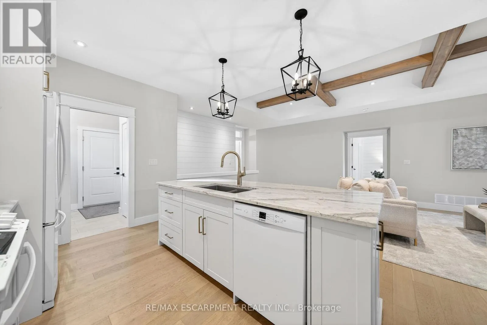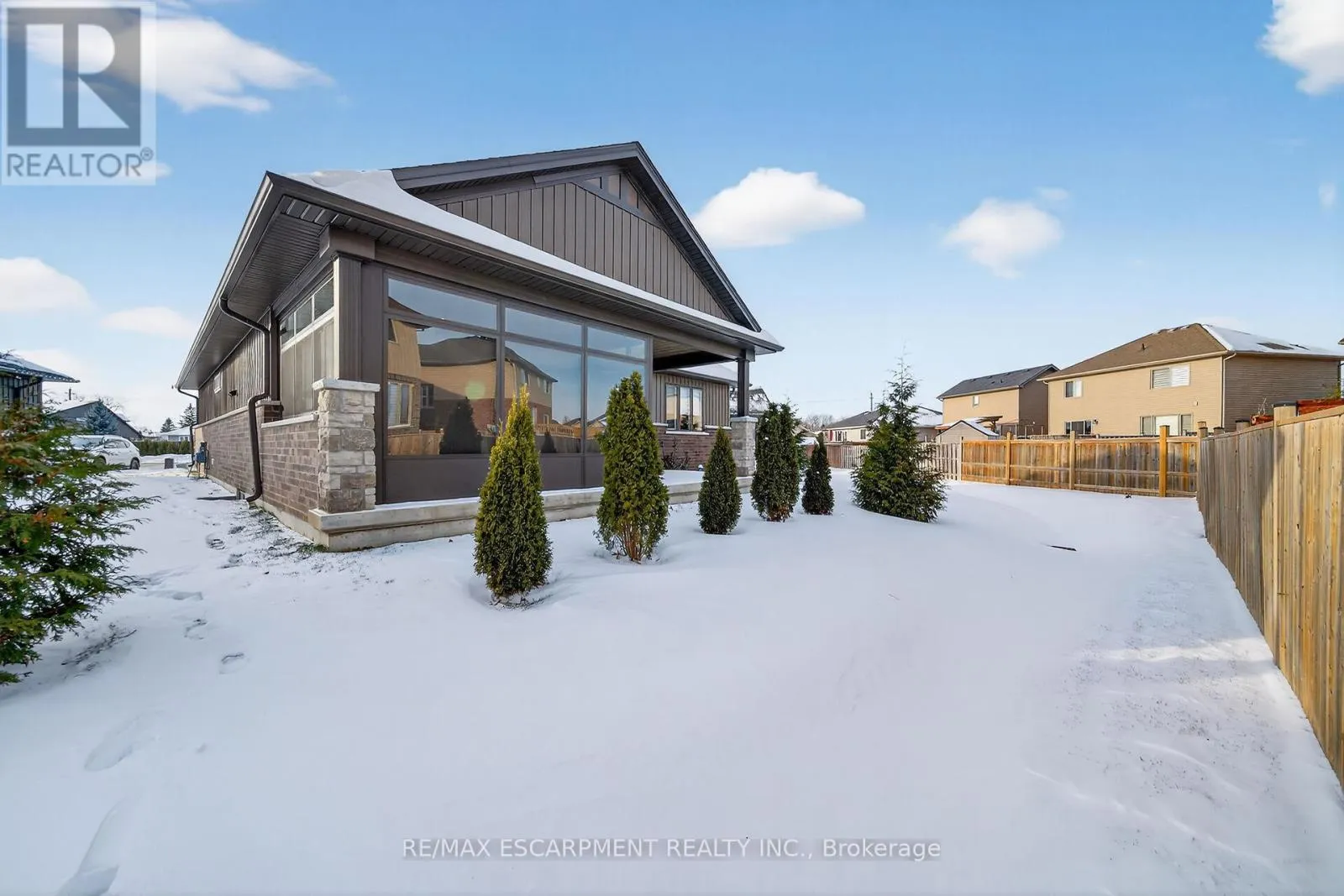 Cross Streets: TALBOT STREET EAST. ** Directions: Highway 6 into Jarvis, turn East onto Highway 3 (Talbot Street East) turn left onto Craddock Boulevard. Envision small town Ontario living in lavish luxury - look no further than this gorgeous 2022 custom built bungalow situated at end of private court surrounded by similar maintained properties in Jarvis - Canada's officially recognized "Friendliest Town" located btw Hagersville, Port Dover/Lake Erie, Simcoe & Waterford - 45/50 min commute to Hamilton, Brantford & 403. Positioned handsomely on 0.18 ac pie-shaped lot introducing 1623sf of flawless main level living space plus 190sf professionally designed sunroom, 1623sf basement & 405sf 2-car garage. Oversized paved driveway leads to inviting covered verandah where front door enters to grand 10ft high foyer offering walk-in coat closet - continues past 4pc main bath flanked by 2 spacious bedrooms - on to stunning, open concept Great room showcasing 10ft coiffured beamed ceilings, n/g fireplace set in stone hearth & shiplap accent walls - segues to Chef's "Dream" kitchen sporting chic in-vogue white cabinetry, designer island, quartz countertops, tile back-splash & convenient side laundry room housing walk-in pantry & direct garage access. Adjacent dinette enjoys patio door walk-out to gorgeous sunroom incs wall to wall windows with access to 100sf covered outdoor entertainment porch. Beautiful north wing primary bedroom boasts beautiful 3pc en-suite & walk-in closet completing main floor plan. Stylish matte finished engineered hardwood flooring, 9ft ceilings, custom milled trim/baseboards & LED lighting compliment neutral décor with sophisticated flair. Spacious, unblemished lower level provides the ideal blank canvas to create your personally designed floor plan & finishes. Notable extras - motorized hi-end blinds, outdoor irrigation system, quality appliances, n/g furnace, A/C, HRV air exchange & landscaping. Reasonable $280 p/month road maintenance fee incs street lights, water/sewer charges & lawn cutting - snow clearing is Owner's responsibility. Lock Box for viewing ease. "Perfection Personified" ** This is a linked property.** (id:27476)