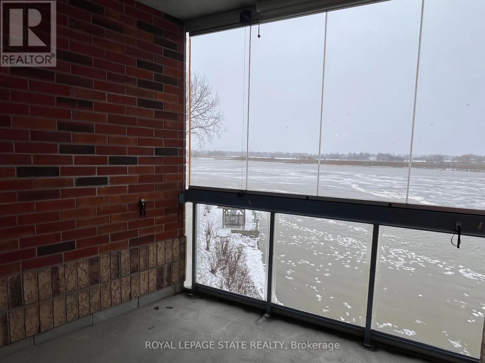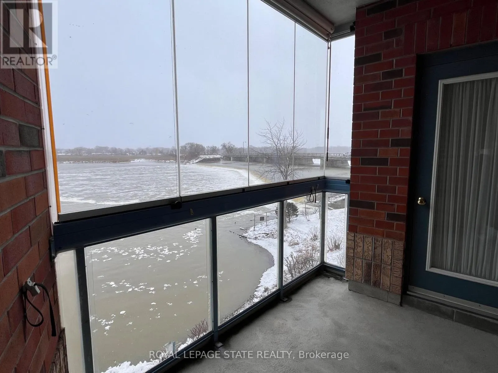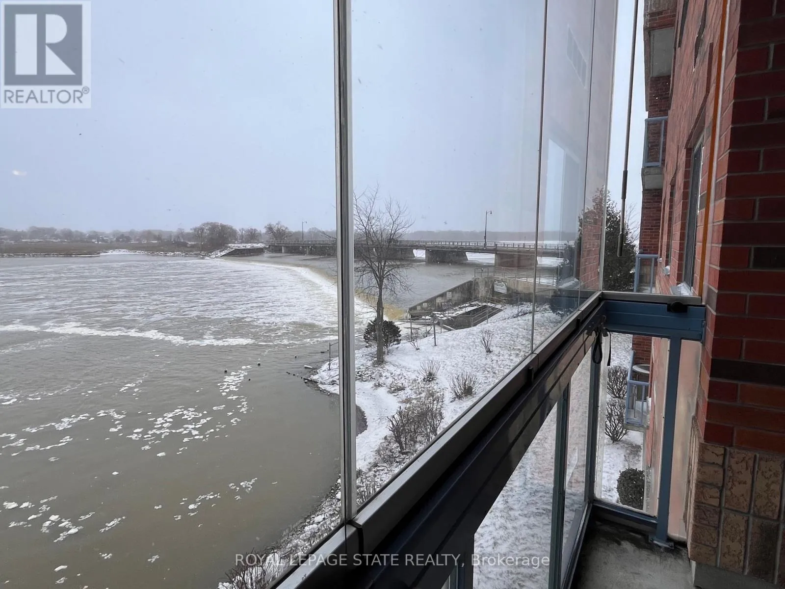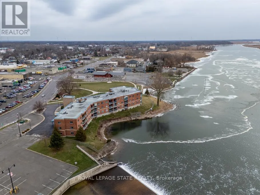 Corner of Main St E and Queen St This highly sought-after riverside condominium delivers picturesque waterfront living with coveted south-facing exposure and sweeping views along the Grand River. This well-designed suite offers a popular open-concept layout, creating a comfortable sense of space ideal for everyday living and entertaining. The inviting kitchen includes recent stainless steel fridge, dishwasher, stove and rangehood plus updated microwave (black). Loads of storage in the oak cabinetry and plenty of counter space as well as a convenient bar-height peninsula. The kitchen flows into the generous living and dining area, where sliding glass doors lead to a private balcony overlooking the river. This 1,152 sq ft residence offers two spacious bedrooms. The primary bedroom is complete with a walk-in closet and a 3-piece ensuite bath. The second bedroom enjoys its own separate balcony walkout, adding flexibility for guests, a home office, or a peaceful personal space. 4-piece main bathroom serves the remainder of the unit. Additional features include in-suite laundry with utility/storage space, an exclusive storage locker, an owned underground parking for year-round convenience. Ideally located within walking distance to the heart of Dunnville, residents will enjoy easy access to the Farmer's Market, boutique shops, cafés, restaurants, parks, hospital, library, and recreation centre. This exceptional condo combines comfort, convenience, and scenic waterfront living-an outstanding opportunity to enjoy all that Dunnville and the Grand River lifestyle have to offer. Updates include carpet in the living room, vinyl flooring in the kitchen, foyer and utility. Updated painting on wall/trim/and interior doors. Bathroom sinks and taps recently replaced. (id:27476)