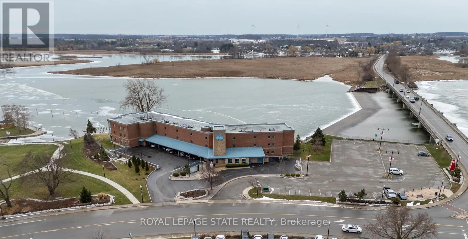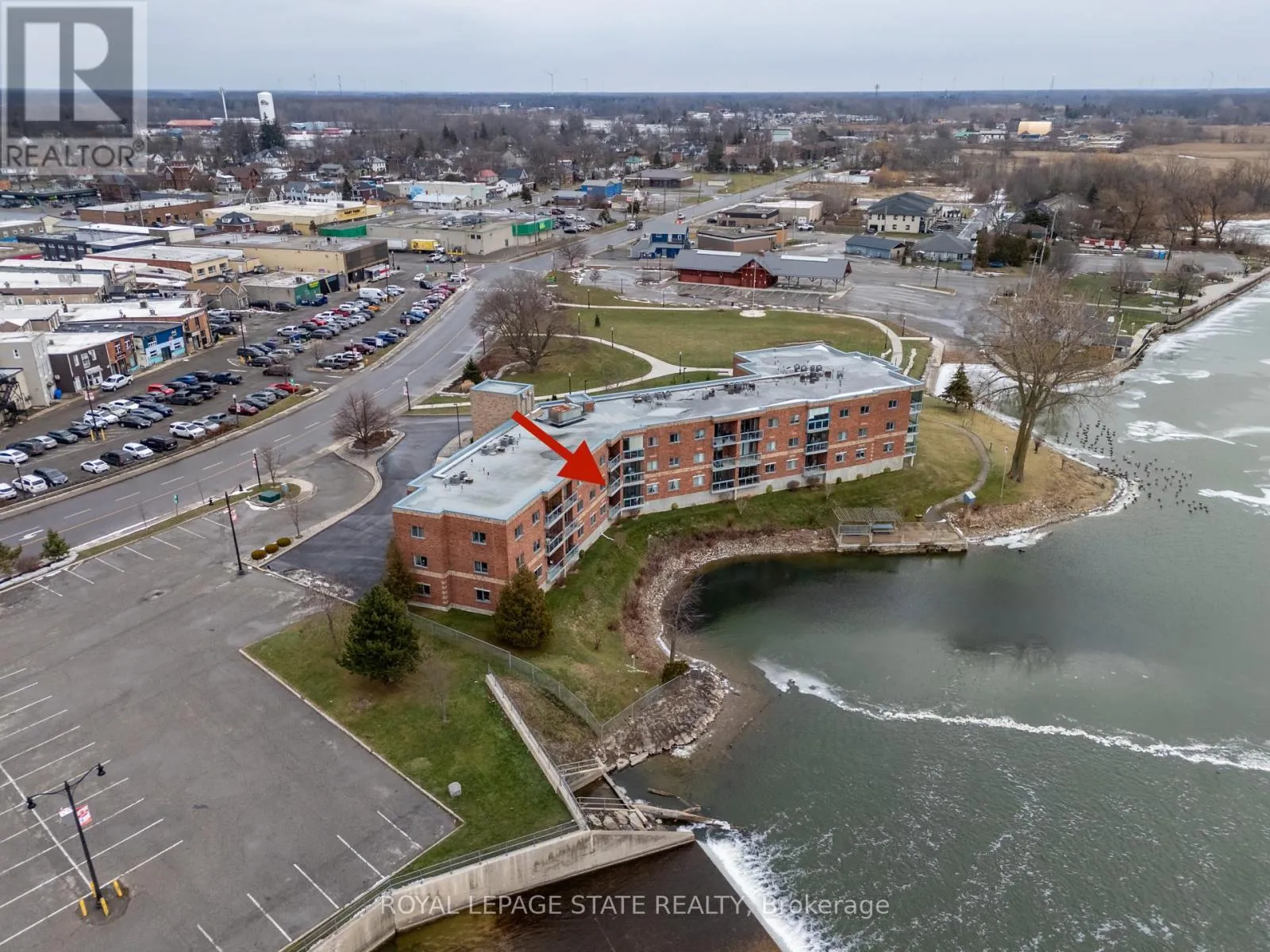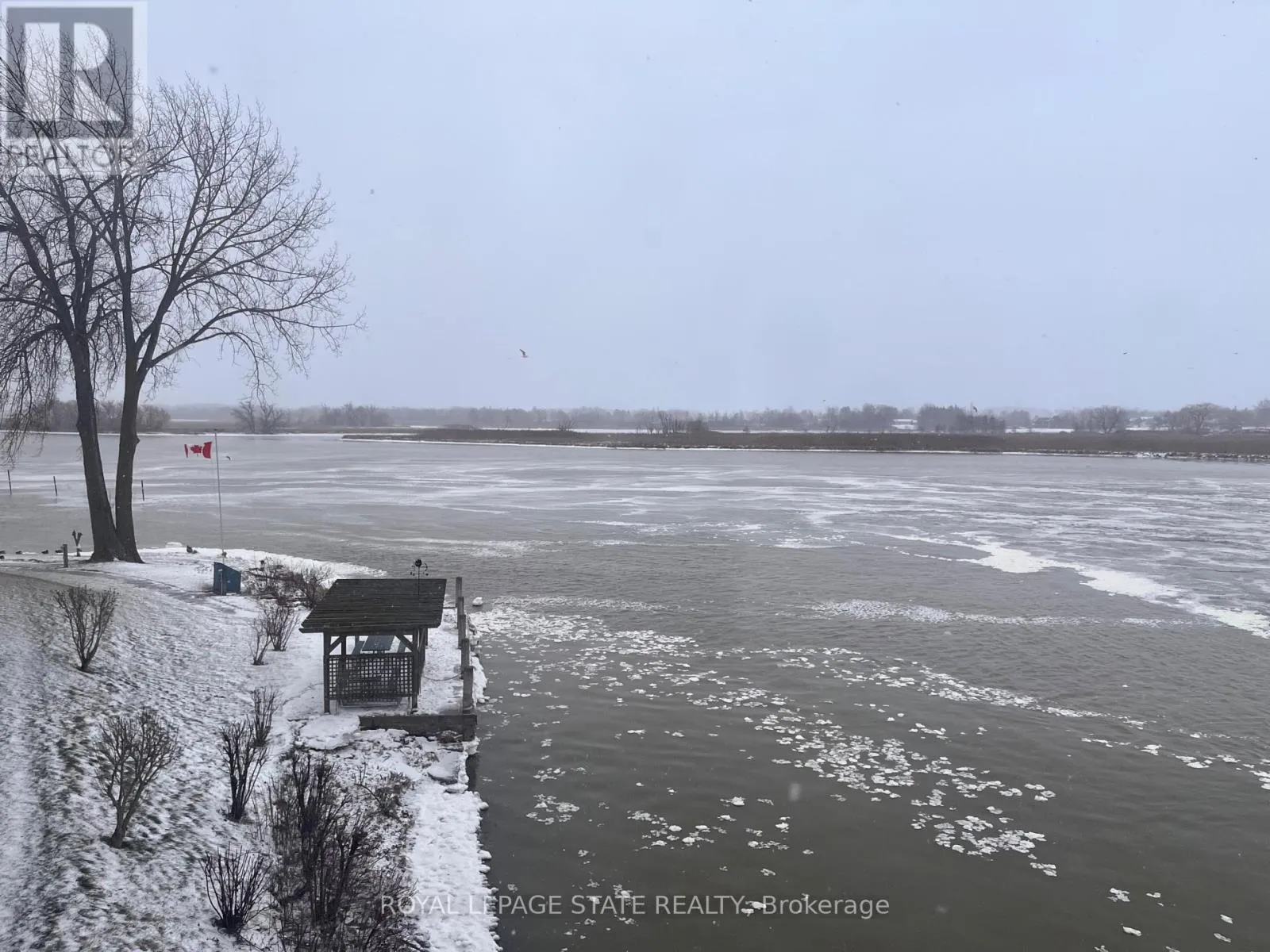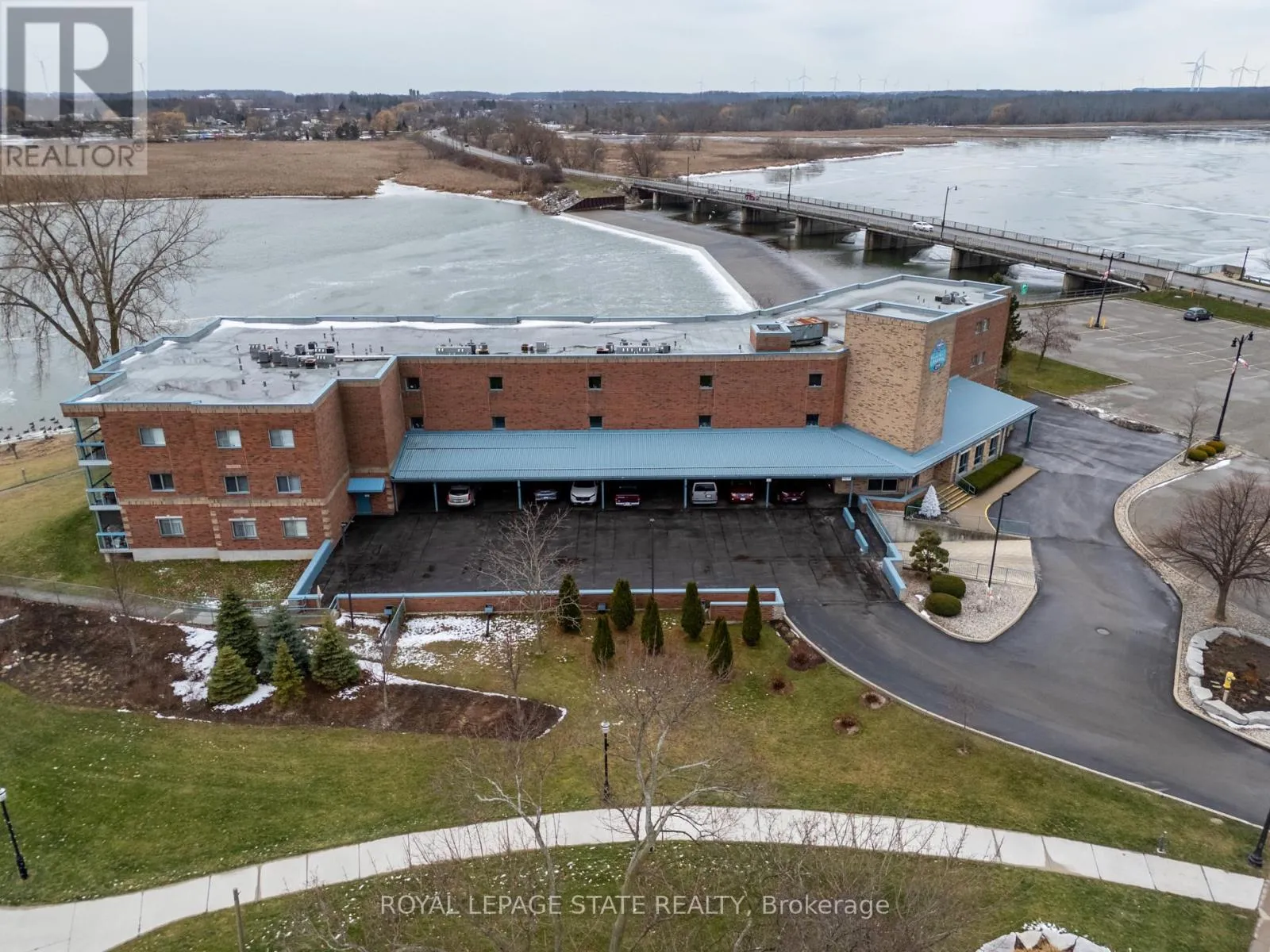 Corner of Main St E and Queen St This highly sought-after riverside condominium delivers picturesque waterfront living with coveted south-facing exposure and sweeping views along the Grand River. This well-designed suite offers a popular open-concept layout, creating a comfortable sense of space ideal for everyday living and entertaining. The inviting kitchen includes recent stainless steel fridge, dishwasher, stove and rangehood plus updated microwave (black). Loads of storage in the oak cabinetry and plenty of counter space as well as a convenient bar-height peninsula. The kitchen flows into the generous living and dining area, where sliding glass doors lead to a private balcony overlooking the river. This 1,152 sq ft residence offers two spacious bedrooms. The primary bedroom is complete with a walk-in closet and a 3-piece ensuite bath. The second bedroom enjoys its own separate balcony walkout, adding flexibility for guests, a home office, or a peaceful personal space. 4-piece main bathroom serves the remainder of the unit. Additional features include in-suite laundry with utility/storage space, an exclusive storage locker, an owned underground parking for year-round convenience. Ideally located within walking distance to the heart of Dunnville, residents will enjoy easy access to the Farmer's Market, boutique shops, cafés, restaurants, parks, hospital, library, and recreation centre. This exceptional condo combines comfort, convenience, and scenic waterfront living-an outstanding opportunity to enjoy all that Dunnville and the Grand River lifestyle have to offer. Updates include carpet in the living room, vinyl flooring in the kitchen, foyer and utility. Updated painting on wall/trim/and interior doors. Bathroom sinks and taps recently replaced. (id:27476)