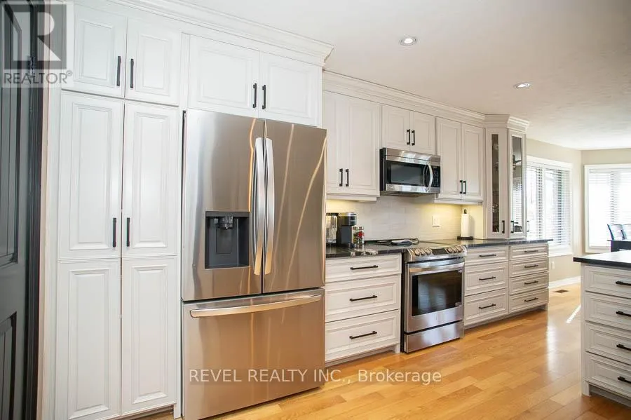 Cross Streets: Lafayette & Davey. ** Directions: Talbot St E to Saunders to Lafayette to Davey. Welcome to this beautifully updated 3+1 bedroom, 3-bathroom bungalow, where timeless design meets modern luxury. Every detail of this custom built home has been carefully curated to create an inviting space that blends comfort, sophistication, and effortless living. Inside, discover heated floors in many areas, freshly painted interiors, and a spacious open-concept layout anchored by a stunning stone gas fireplace.The renovated kitchen features custom cabinetry, leathered granite countertops, and stainless-steel appliances, opening to a bright dining area with access to the composite deck and stone patio - a fully fenced and serene outdoor retreat surrounded by beautifully landscaping and easy to maintain grounds. The main level includes three bedrooms and two full baths, highlighted by a beautiful primary suite with walk-in closet and 4-piece ensuite. The finished lower level adds exceptional living space with a large recreation room, fourth bedroom, modern 4-piece bath, and heated floors throughout. Thoughtful upgrades provide peace of mind and comfort year-round - including a 12 kW natural gas generator, reverse osmosis water system, 4,000-gallon cistern, owned on-demand hot water, central vac, and an oversized double garage (22x24) with hot/cold water and sink. This is a home that truly stands apart - offering luxury, efficiency, and quality craftsmanship in a quiet, upscale court location just minutes from Hagersville, Simcoe, Port Dover, and Lake Erie. Executive living with small-town charm - welcome home to 9 Davey Court. (id:27476)