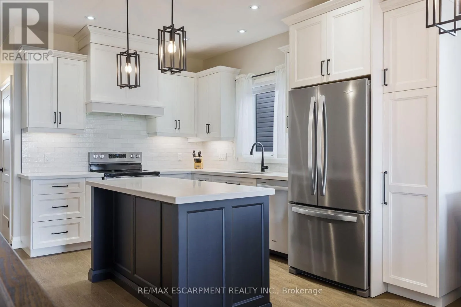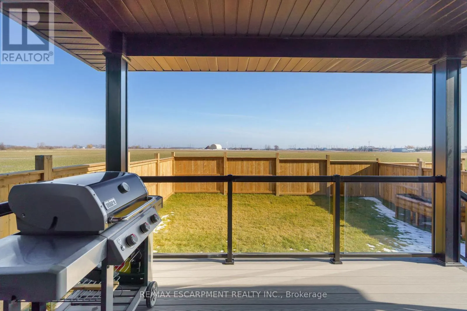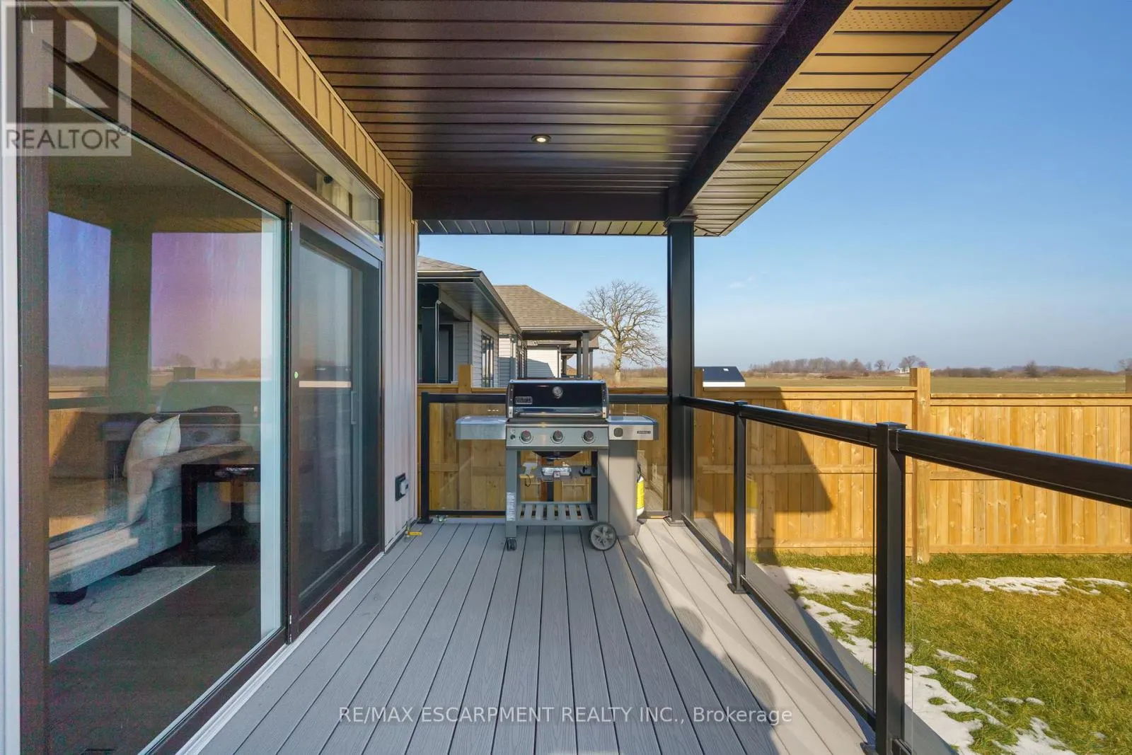 Cross Streets: Lafayette St E & Saunders Drive. ** Directions: Take ON-403 W and Hwy 6 S to Saunders Dr in Haldimand Continue on Saunders Dr. Drive to Lafayette St E. Now is your chance to live in Jarvis, Ontario-winner of Coca-Cola's Canada's Kindest Community, ideally located just 40 minutes from Hamilton and one hour to Burlington. Backing onto acres of open farmland with no rear neighbours, this exceptional 18-month-old bungalow offers peaceful views, breathtaking sunsets, and over $30,000 in upgrades-making it truly better than new. The open-concept, two-bedroom layout showcases a custom kitchen complete with a custom-painted island, quartz countertops, artisan tile backsplash, built-in microwave, pantry with pull-out shelves, pull-out spice and utensil drawers, and a built-in platter separator. Stainless steel appliances are included and feature an extended warranty transferable to the new owner. Gorgeous engineered hardwood floors and custom blinds flow throughout the home, while convenient main-floor laundry is thoughtfully located in the second bedroom closet. Step out to the covered walk-out back porch with composite decking and enjoy uninterrupted views of farmland and stunning sunset skies, complemented by a fully fenced yard and a gas line ready for your BBQ. The spacious primary bedroom offers a large walk-in closet, a massive linen closet, and a stylish ensuite with double sinks and a fully glassed walk-in shower. The basement has been studded by the builder and is ready to be finished to suit your living needs, and oversized windows throughout the home-including the basement-ensure a bright, airy feel even in the winter months. This is your opportunity to own the perfect bungalow without the added expense and uncertainty of a new build. (id:27476)