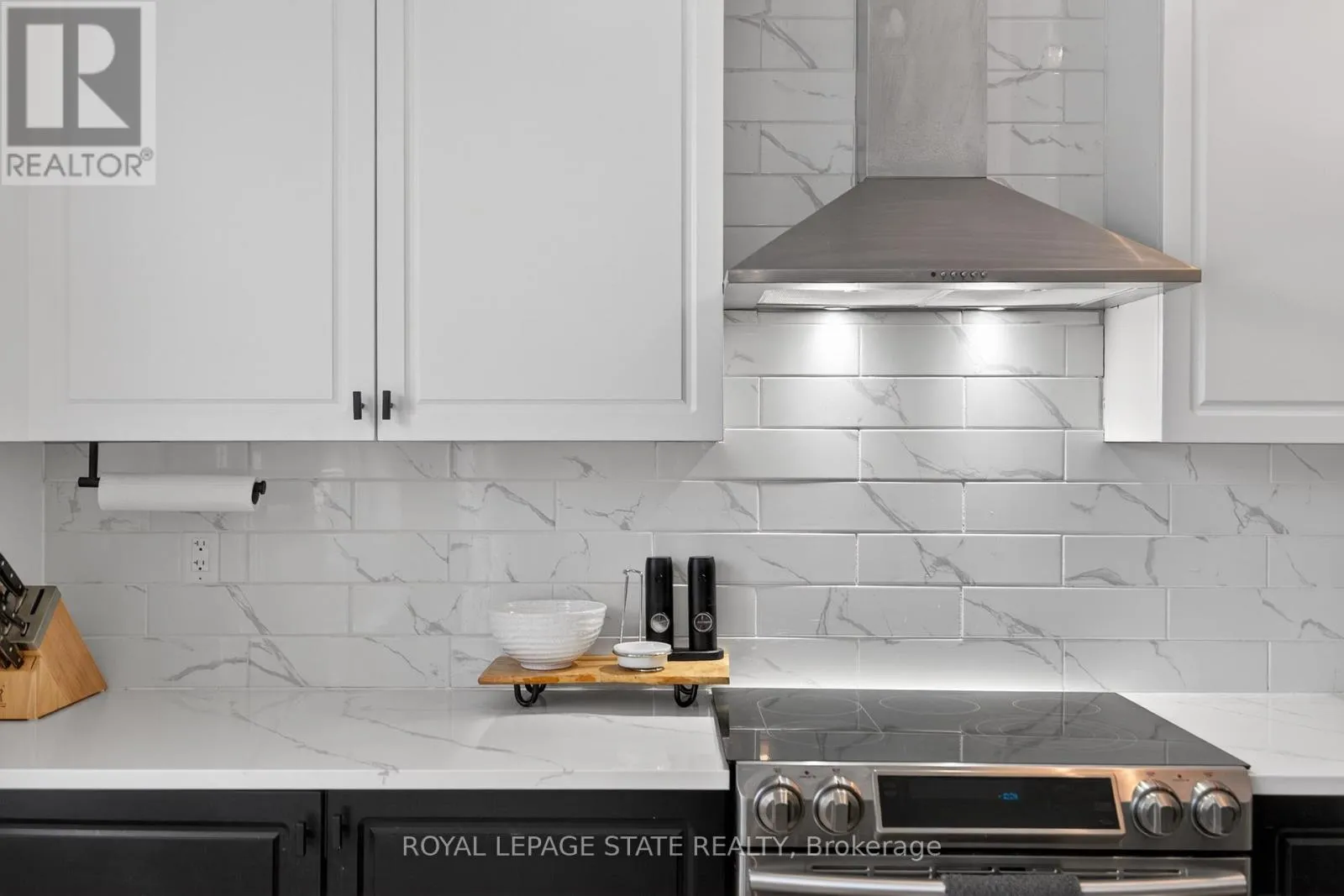 Cross Streets: Thompson Road. ** Directions: From McClung/Caithness, N on McClung, W on Arnold Marshall, N on Kelso. Welcome to this beautifully maintained 3 bdrm, 2.5 bath detached home in Caledonia's desirable Avalon neighbourhood. Offering 1581 sq ft above grade, this home is thoughtfully designed for modern living while maintaining a warm, inviting feel throughout. Curb appeal is immediate, with surfaced parking for 1 vehicle & a covered front porch that sets the tone. Elegant French doors w/ a bonus transom window flood the interior w/ natural light, opening into a spacious & welcoming foyer. The 1-car grg feat convenient inside entry, adding everyday practicality. The open-concept main lvl is perfectly suited for both daily living & entertaining. The liv rm is anchored by a stylish feature wall, while the dining area offers sliding doors to the rear yard w/ an additional transom window. The functional kitch is a standout, feat S/S app, an attractive tiled backsplash, quartz countertops, & a centre island w/ seating for 4. An oversized window overlooks the rear yard, bringing in abundant natural light. A convenient main-lvl powder rm completes the space. Upstairs, the spacious primary retreat feat a walk-in closet & a 4-pc ensuite w/ an oversized soaker tub & separate shower. 2 additional bdrms, a full 4-pc bath, & convenient bdrm-lvl laund provide comfort & efficiency for busy households. The unspoiled bsmt, highlighted by large windows, presents endless potential. Outside, the f-fenced rear yard incl a storage shed & plenty of room to entertain. Noteworthy updates incl c-air, quartz countertops, some flring, range hood (all in '20), feature walls ('24), fresh neutral paint ('25), & updated lighting fix. The Avalon neighbourhood is one of Caledonia's most desirable areas, known for its family-friendly streets, nearby parks, & sense of community. Enjoy the charm of Caledonia's shops & the scenic Grand River, while having easy access to Hamilton, major transp routes, & everyday amenities. This is small-town living with big-city convenience - an exceptional place to call home. (id:27476)