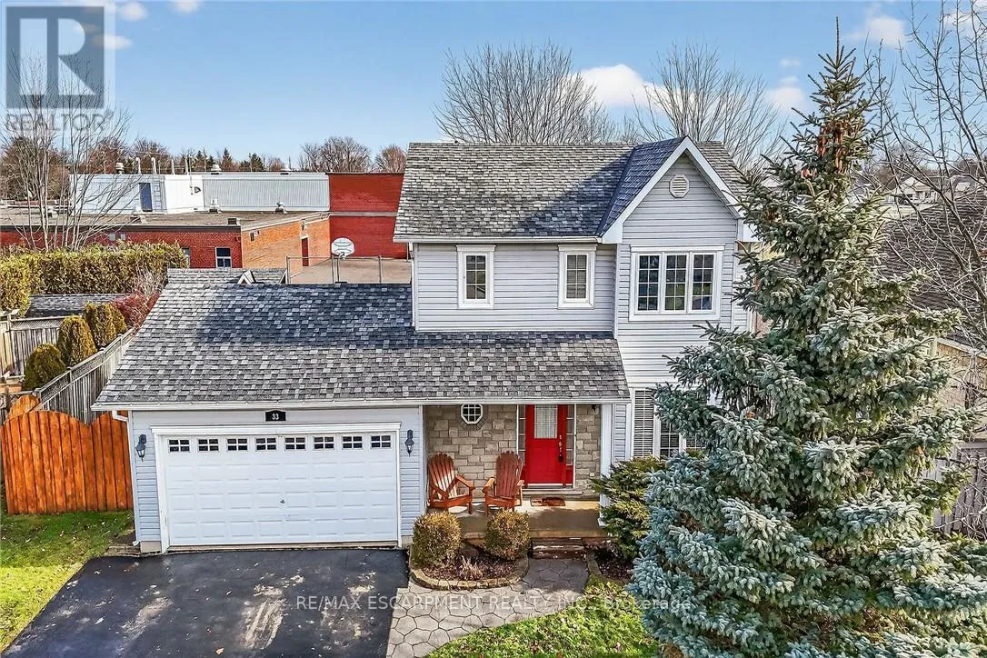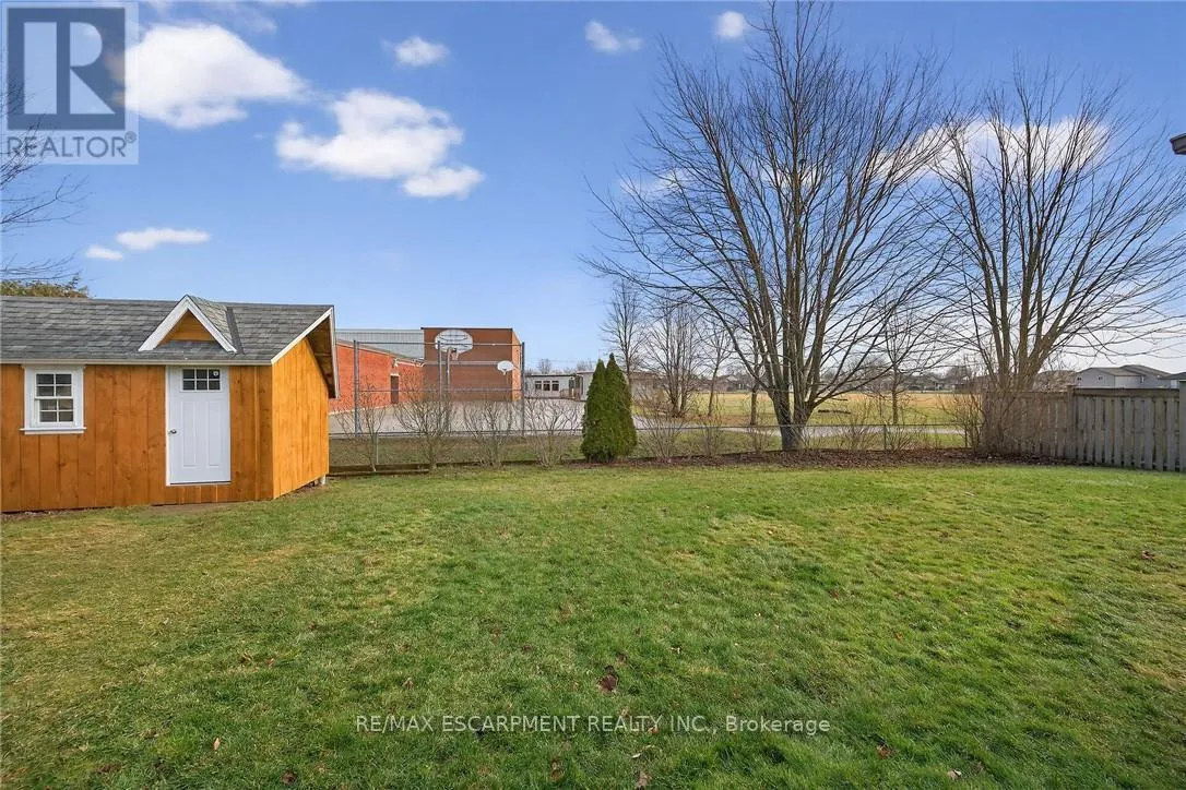 Cross Streets: MAPLEVIEW DR. ** Directions: From Parkview Rd, head south on Mapleview Dr. head west on Oak Cres, property on the left. Truly Stunning, Beautifully presented 3+2 bedroom, 2 bathroom 2 storey home in Hagersville's premier subdivision on premium pie shaped 40' x 111' lot on sought after Oak Crescent backing onto school with no rear neighbors. Incredible curb appeal with stone & complimenting sided exterior, 2 car attached garage, oversized paved driveway, tasteful landscaping, oversized shed, & fully fenced yard. The flowing, open concept interior features gorgeous finishes throughout highlighted by eat in kitchen with white cabinetry, open concept living room & dining room combo, additional family room with hardwood floors, welcoming foyer, & 2 pc MF bathroom. The upper level includes 3 spacious bedrooms including primary bedroom with ensuite privilege to 4 pc bathroom, & desired bedroom level laundry. The fully finished basement adds to the overall living space and features cozy rec room, 2 additional bedrooms, storage, & utility area. Enjoy Hagersville Living! (id:27476)