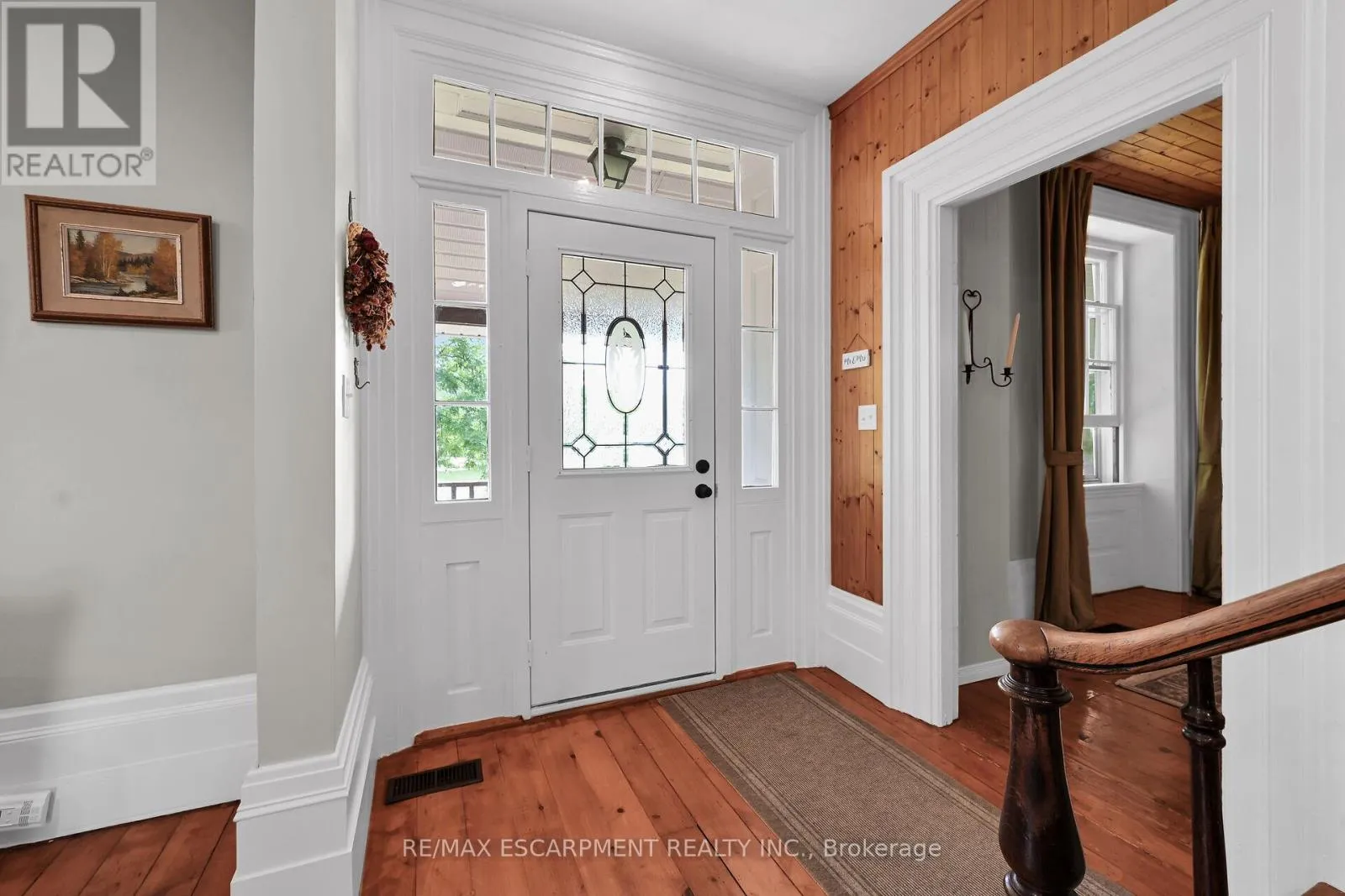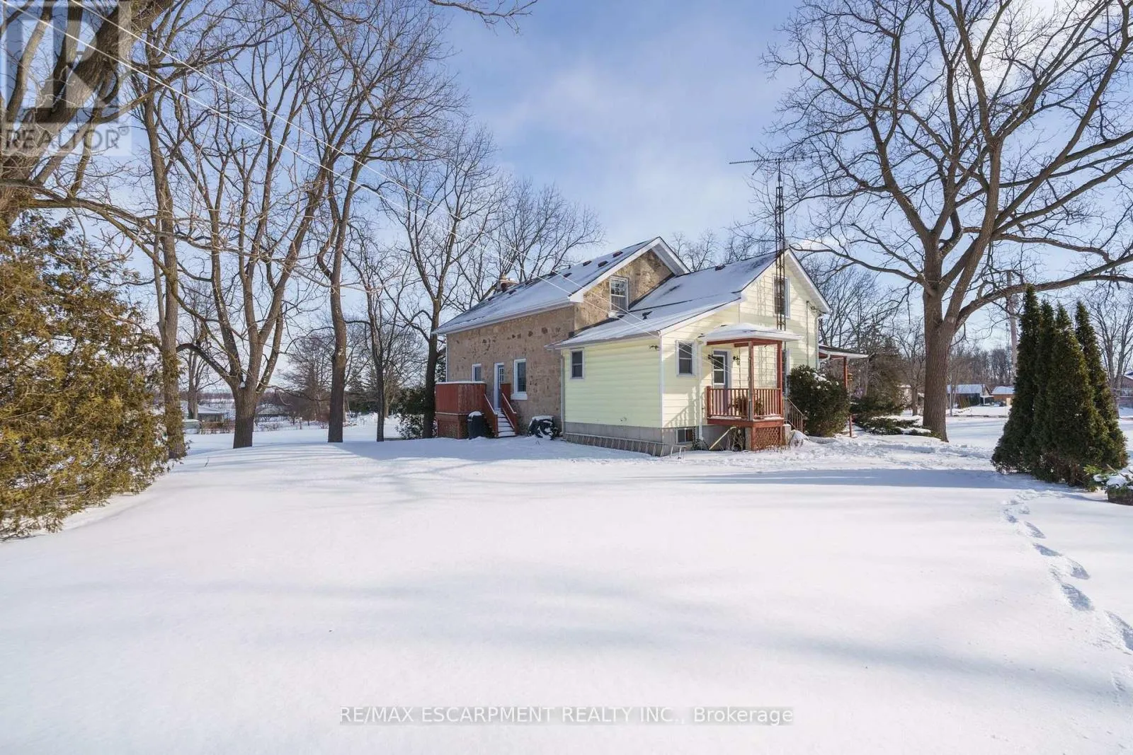 Cross Streets: Haldimand Road 20 West from Hagersville. ** Directions: Haldimand Road 20 West from Hagersville, left on Concession 14, through stop sign, on right hand side. Timeless 1890 Stone Farmhouse on 3.66 Scenic Acres! Step back in time without sacrificing modern comfort in this lovingly maintained 1890s "stone and siding" country charmer. Set well back from the road for ultimate privacy, this home greets you with a quaint covered front porch overlooking rolling green lawns and a quiet, established neighborhood. Inside, the home "oozes" character with soaring ceilings, rustic hardwood floors, and massive original trim. You'll love the cozy window seats and vintage-style windows that flood the home with natural light. The main level offers a spacious country kitchen, a cozy living room with a natural gas fireplace, and a convenient back mudroom. Upstairs features 3+1 bedrooms, two were meticulously restored down to the studs in 2024. Dual staircases lead to a private bedroom loft and a primary suite with a walk-in closet and ensuite privilege. The lower level features an on-grade walk-out with a large rec room-ideal for a home office or business-plus a built-in garage/workshop. Rare opportunity here! The 3.66-acre parcel includes a legally separate front lot that permits a second dwelling-perfect for multi-generational living or an investment build! Discover the perfect blend of historic soul and modern updates with serene farm fields as your only rear neighbors. (id:27476)