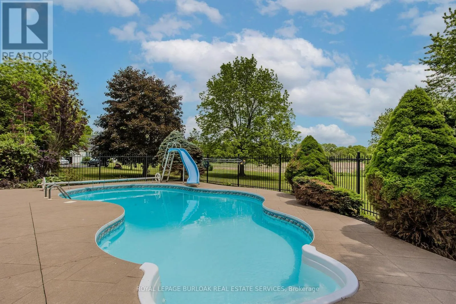 Haddington St & McKenzie Rd Welcome to the ultimate blend of comfort and serenity in the heart of Caledonia. This stunning country home offers 3965sf of total living space, combining timeless charm with functional design for peak family lifestyle. Situated on a quiet, dead-end street steps from the Grand River and mins from amenities, this property delivers the best of both peaceful countryside surroundings with daily convenience. Set back from the road on a professionally landscaped large private lot, the curb appeal is undeniable. A 200ft asphalt driveway leads to a triple car garage with room for 68 vehicles, and an extra-wide front porch invites you in. Inside, find a thoughtfully designed main floor featuring laminate flooring throughout. The living room is bathed in light due to oversized windows, while the dining room provides ample space for meals and entertaining. The heart of the home is a farmhouse style eat-in kitchen with a large island with breakfast bar, SS appliances, tile backsplash, coffee/wine bar, and seamless flow into the family room with gas fireplace, wainscoting, and French doors to the backyard. A convenient entrance from the back deck leads to a laundry room and full 3pc bath perfect for pool days! Upstairs, a window seat nook adds character and charm. The expansive primary suite features a walk-in closet and a 4pc ensuite with extra-large jacuzzi tub. 3 additional bedrooms2 with walk-in closets and Deacons benches w/ storage and a 4pc bathroom complete this level. The partially finished basement offers in-law potential with a separate entrance, large sitting room and an additional versatile space ideal for an office, games room, or guest bedroom. Step outside to your very own entertainers dream yard, complete with wood deck, stamped concrete patio, tons of green space, and a fully fenced in-ground pool with slide perfect for summer fun with family and friends. A rare opportunity to enjoy a peaceful rural setting without sacrificing space, style, or convenience! (id:27476)