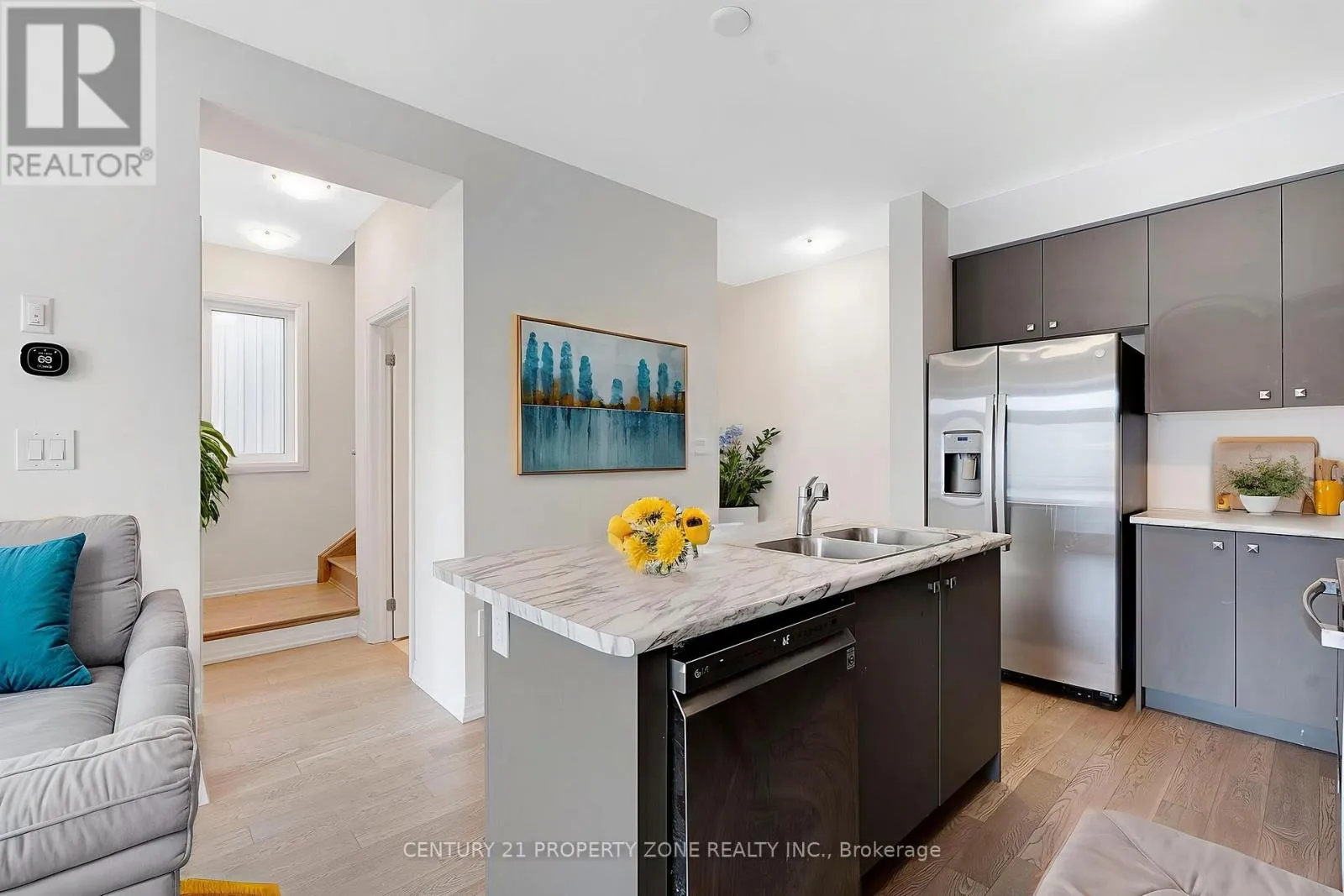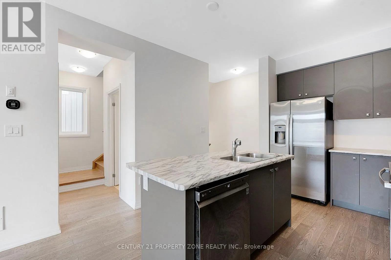 Cross Streets: HWY 6 / Central Market Dr. ** Directions: HWY 6 - Central Market Dr- Norwich Cres. Welcome to this stunning 3-storey *freehold townhouse* located in the master-planned community of Caledonia. This modern home offers 3 spacious bedrooms and 1.5 bathrooms and features a *double-door entrance* that creates a grand first impression. The *open-concept* family and dining area is bright and airy and includes a *private balcony*, perfect for relaxing or entertaining. One bedroom is conveniently located on the main floor, ideal for guests or a home office. The home showcases a full brick exterior, *9-foot ceilings* on the main level, and elegant oak-stained hardwood stairs, adding to its contemporary appeal. The kitchen is equipped with *stainless steel appliances*, offering both style and functionality. On the third floor, the *primary bedroom* features a walk-in closet, semi-ensuite bath, and its *own private balcony*, creating a true retreat, while the second bedroom is generously sized with its own closet. Additional highlights include a prime location close to neighborhood plazas and major highways, providing exceptional comfort and convenience. (id:27476)