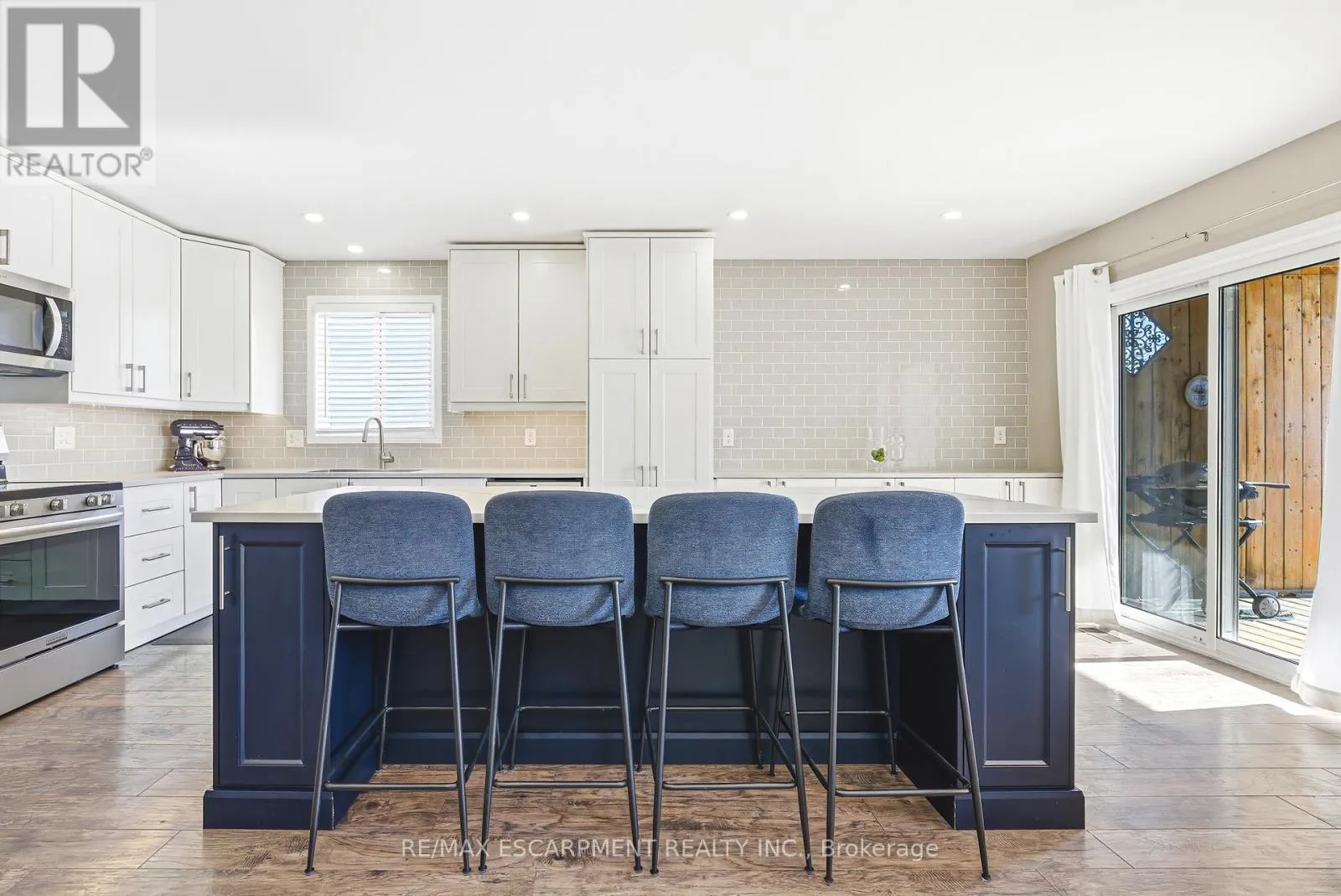 MCKENZIE RD-WEST ON FULLER DR Step inside and prepare to be impressed. This tastefully decorated, extensively updated home is ideal for the discerning buyer. With 2 bedrooms on the main floor (dining room could be converted back to 3rd bedroom), 2 bedrooms on the lower level and 2 full bathrooms, this home has room for the whole family. Both levels have been beautifully updated with thoughtful, yet practical upgrades. The stunning, bright white modern kitchen features a tiled backsplash, ample cupboard space, generous counter space, pot lights, as well as a beautiful new island with seating for four. The spacious family room boasts a soaring cathedral ceiling, creating a welcoming atmosphere for relaxing or entertaining. Throughout the home, you'll find updated flooring-primarily wide-plank, easy-care laminate-extra-tall baseboards and abundant closet/storage space. Outside, enjoy a double asphalt driveway, oversized garage and a fully fenced backyard with new patio area and gazebo with no immediate rear neighbours for added privacy. Ideally located in a popular Caledonia neighbourhood, this impressive, well cared for home is a must-see. Close to all amenities. Room sizes approximate. (id:27476)