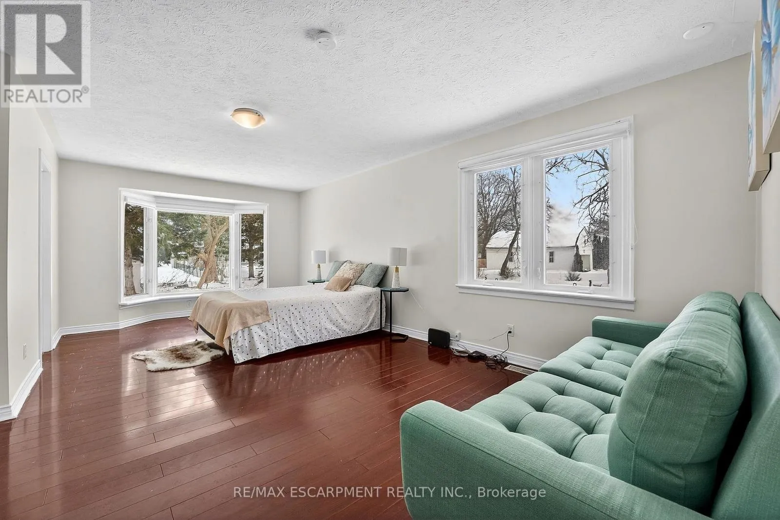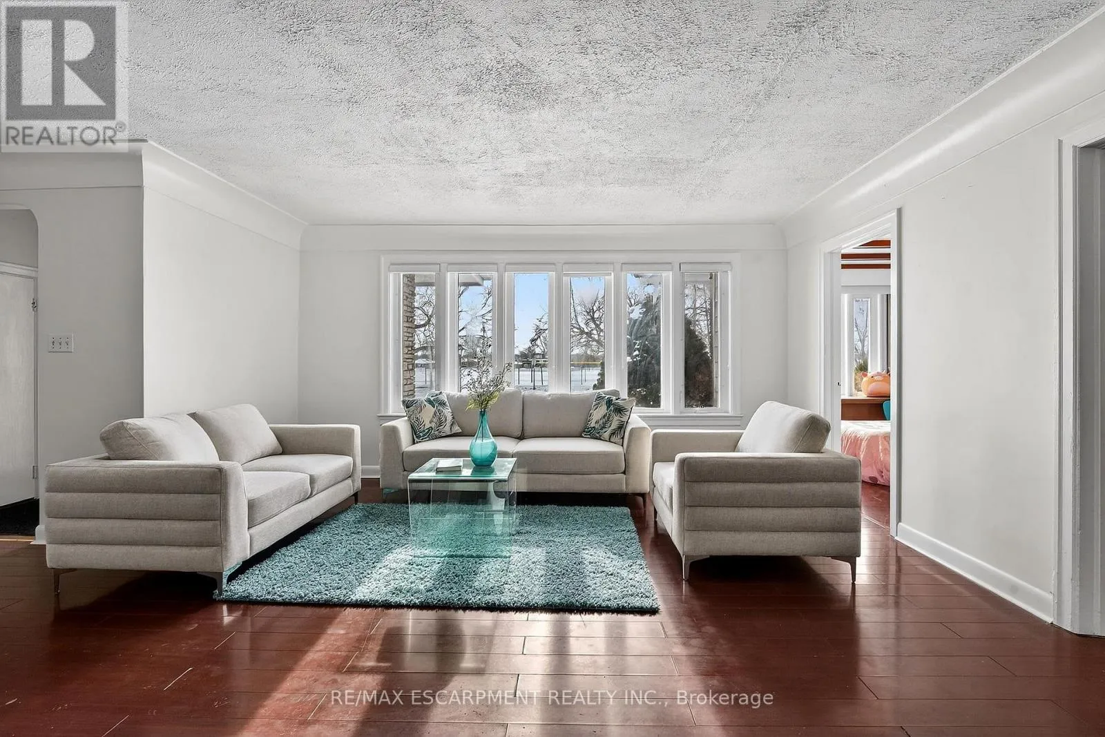 GEORGE Welcome to 617 Lock St W - an impressive bungalow (1472sf) in the most perfect location! This 4 bedroom home sprawls out over a generous 66x174' lot with Lion's Park directly across the road featuring tennis courts, pickleball, skatepark, pool, baseball diamond, & playground! A standout opportunity to purchase in this area, this home boasts great curb appeal with a paved driveway, elegant stone façade, crisp white siding, and mature landscaping. Step through the covered front porch into a welcoming foyer that flows effortlessly connect to a large living room with a cozy gas f/p - and abundant south facing sunlight! A secluded & versatile bedroom is tucked off the living - could serve as a home office. Eat-in kitchen includes white cabinetry, sleek black countertops, & space for the whole family. On the west side of the home features another south facing bedroom with a 2pc bath. A large mudroom & laundry room combo that leads to a 9x13 sunroom completes this side of the home. The east wing of the home has 2 additional bedrooms, a full 4pc main bath, and a large master that includes 3pc ensuite with direct access to the rear-yard. Gorgeous backyard with lots of mature trees. Just getting started in home ownership OR looking to downsize & simplify? Don't miss your opportunity to make it yours! (id:27476)