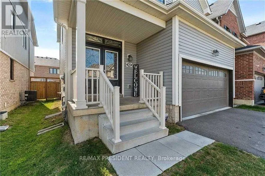 Fleming & Derby Welcome to this beautifully upgraded 3-bedroom, 2.5-bath residence located inEmpire's sought-after master-planned community of Avalon. Featuring an impressivedouble-door entry, this Camelot floor plan offers a bright, functional layout with 9-footceilings on the main level and a convenient powder room for guests. The gourmetkitchen is thoughtfully designed with upgraded cabinetry and ample space to entertainin style. Upstairs, you'll find three spacious bedrooms, including a primary retreatcomplete with a walk-in closet and a well-appointed ensuite bath, as well as the addedconvenience of second-floor laundry. The professionally finished basement providesadditional living space ideal for a family room, home office, or recreation area. Stepoutside to a fully fenced backyard featuring a charming gazebo-perfect for relaxing orhosting gatherings. Ideally situated close to schools, shopping, and just steps from thescenic Grand River and its picturesque trails, this exceptional home offers comfort,style, and an outstanding location. (id:27476)