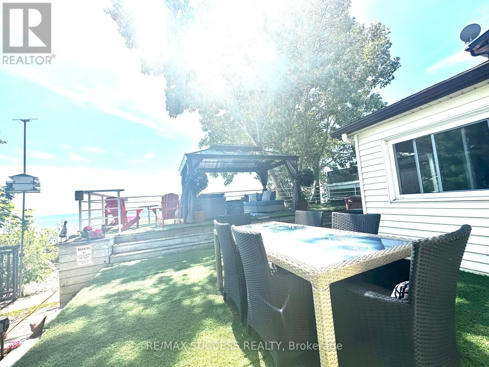 Cross Streets: Hutchinson Rd to North Shore Drive. ** Directions: Lakeshore Rd W & Maple Ave N. Wake up to panoramic, million-dollar views of Lake Erie in this beautifully maintained, year-round waterfront bungalow offering approximately 35 feet of private shoreline. This charming 2-bedroom retreat seamlessly blends relaxed lakeside living with thoughtful upgrades throughout.The open-concept interior features a cozy gas fireplace, large picture windows framing breathtaking water views, and an eat-in kitchen with stainless steel appliances. A spacious four-season sunroom with in-floor heating creates the perfect space to enjoy every season in comfort. Step outside to an impressive oversized two-tier steel-reinforced deck with hot tub, ideal for entertaining or unwinding by the water, then follow the path down to your private pebbled beach, protected by conservation-approved boulder walls.The property sits on high ground, and a stone crib system beneath the deck provides added shoreline protection and long-term peace of mind. Need extra space? A fully insulated, heated and air-conditioned bunkie with hydro and skylights offers excellent guest accommodation or flexible bonus space.Located in a peaceful lakeside community, yet within convenient driving distance to everyday amenities - approximately 20-25 minutes to Dunnville, 25-30 minutes to Welland (hospital, Seaway Mall, major groceries), and about 45-50 minutes to Niagara Falls for dining, shopping, and attractions.With low annual waterfront taxes and true move-in-ready condition, this exceptional property offers privacy, comfort, and lifestyle - a rare opportunity to own your own slice of Lake Erie paradise. (id:27476)