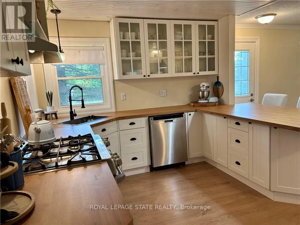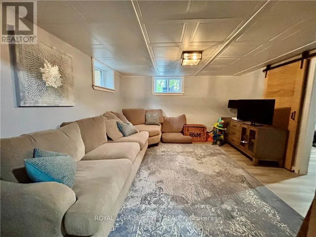 Cross Streets: Jarrett Place. ** Directions: Corner of Diltz Road and Jarrett Place. Country-feel living on the edge of town! This cozy 3+1 bedroom, 2.5 bath bungalow sits on a desirable 173' x 300' private lot surrounded by mature evergreens. Perfect for those wanting space for a pool, trails/boat parking, ATV riding, sports, or future expansion. Brick/vinyl exterior, attached garage, deck, large patio, and secluded backyard. Breezeway entry leads to an open kitchen with breakfast bar and stainless appliances, bright living/dining room with electric fireplace, 3 bedrooms, updated 4-pc bath and 2-pc guest bath. Lower level offers family room, bedroom, 3-pc bath, laundry and storage. Enjoy the serene yard with deck and patio, hot tub (as-is), and expansive lawn. Recent updates (2024/2025) include: furnace, windows, waterproofing/weeping tile, patio, siding, main bath, interior paint, doors, trim, laminate flooring, bedroom carpets (original hardwood beneath) and septic (2022). This home is ready for YOU! RSA (id:27476)