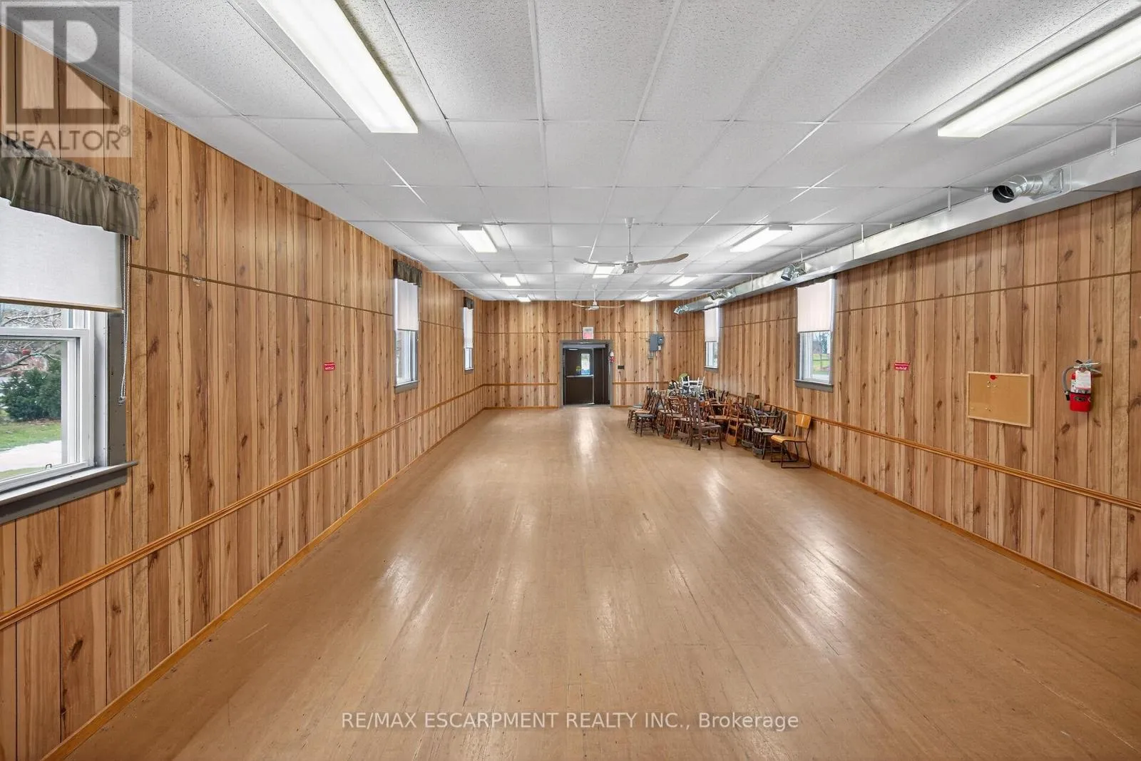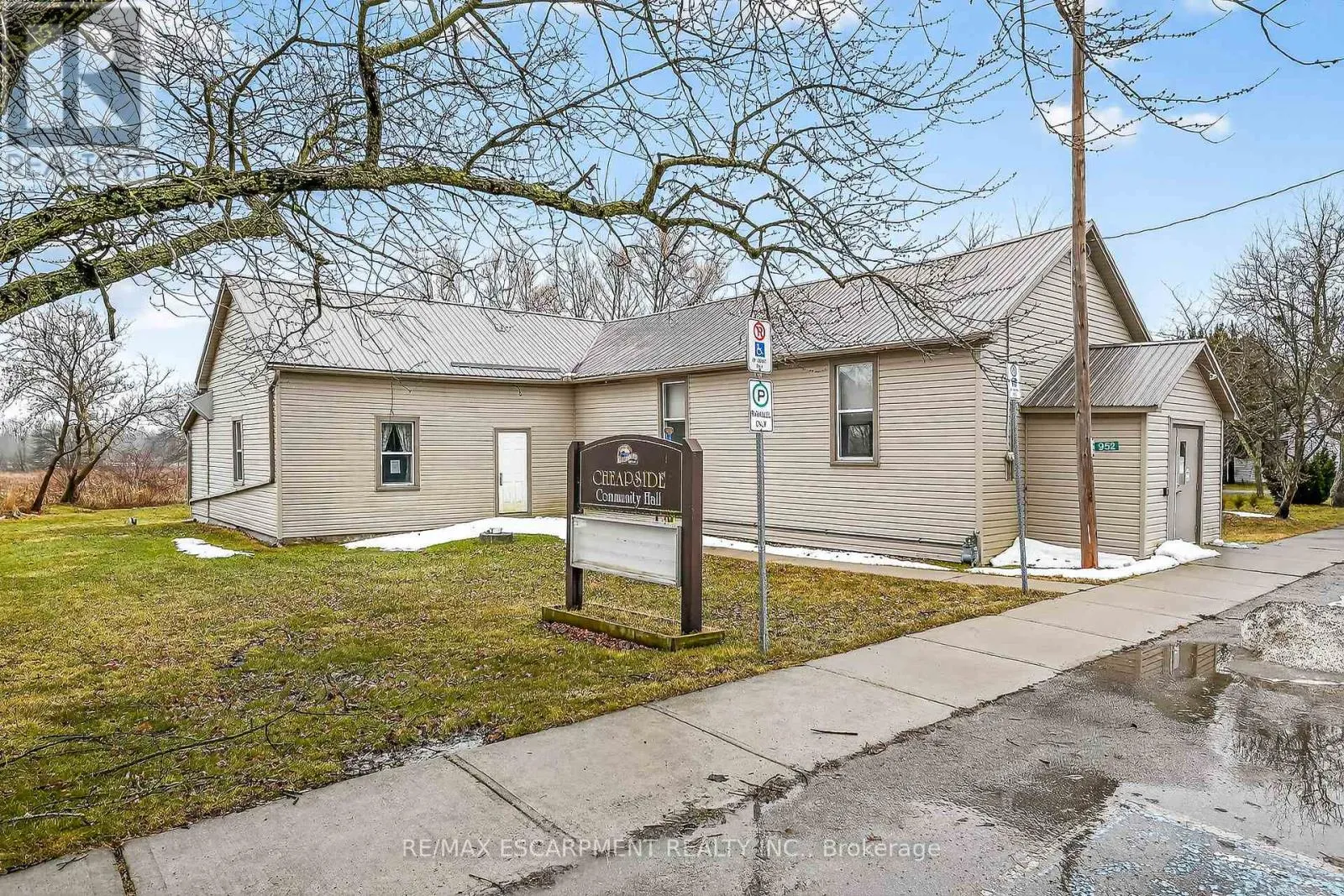 Cross Streets: CHEAPSIDE. ** Directions: From Highway 3, turn south on Cheapside Road to the hamlet - turn right on Concession 2. Versatile commercial building in the quaint hamlet of Cheapside, previously known as "The Cheapside Community Hall" - offers 2363 sq ft with a welcoming foyer, large hall with high ceilings and hardwood floors, newer vinyl windows plus stage area and backstage area. Large commercial sized kitchen with older cabinetry and access to two public washrooms. Clad in vinyl siding with a metal roof, and includes a natural gas furnace. Water provided by a cistern, and a holding tank for sanitation. Zoning is IR - Rural Instititional - which permits uses such as day care, place of entertainment, place of sports and recreation, private club, school, office, and more! Sitting on a 0.124 acre lot close to the hamlet - only a km or so from Lake Erie. Worth a look! (id:27476)
