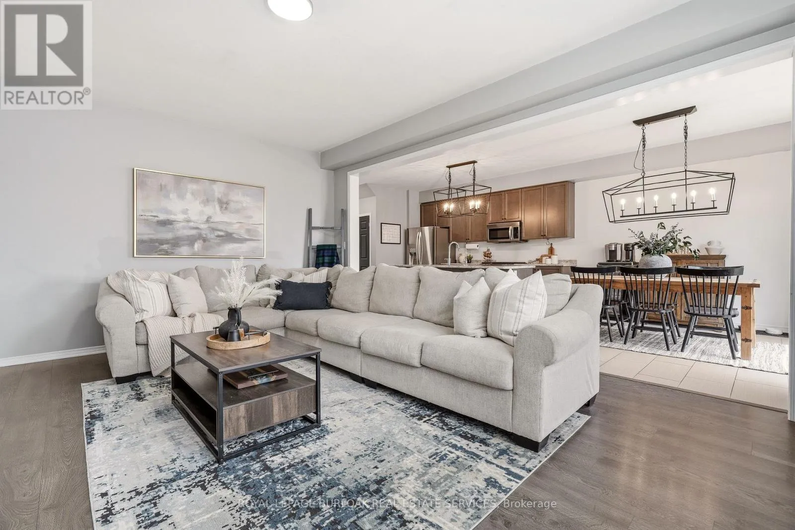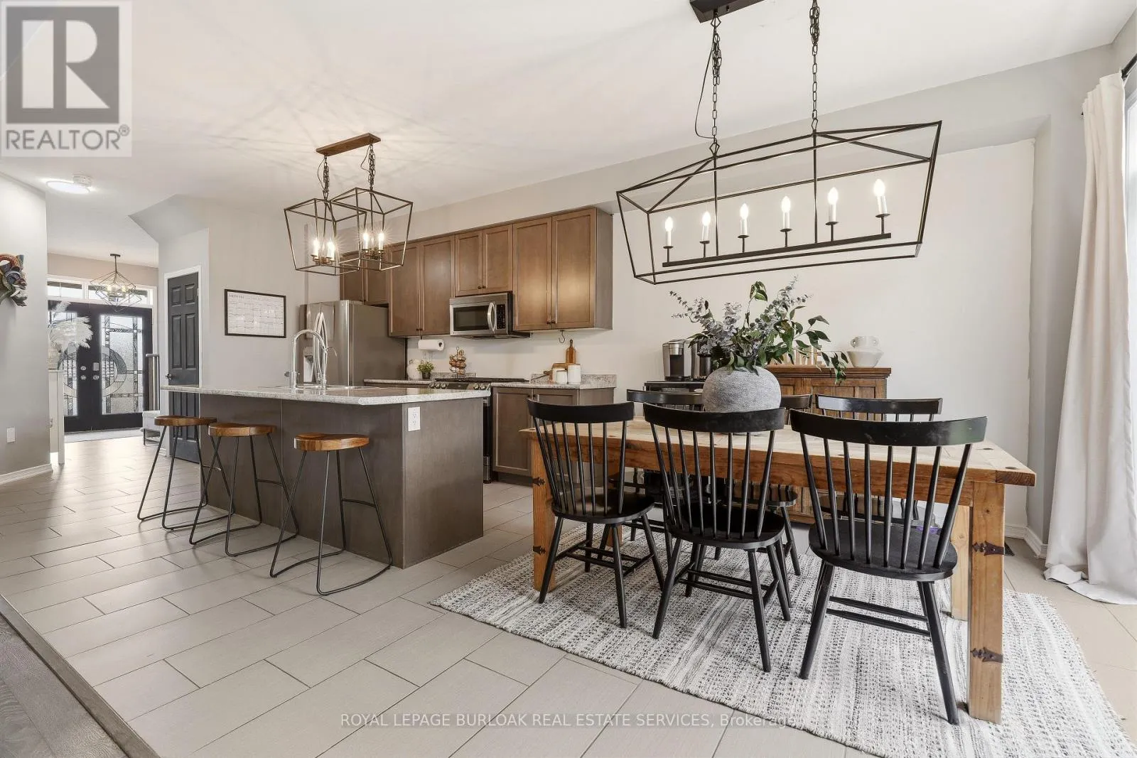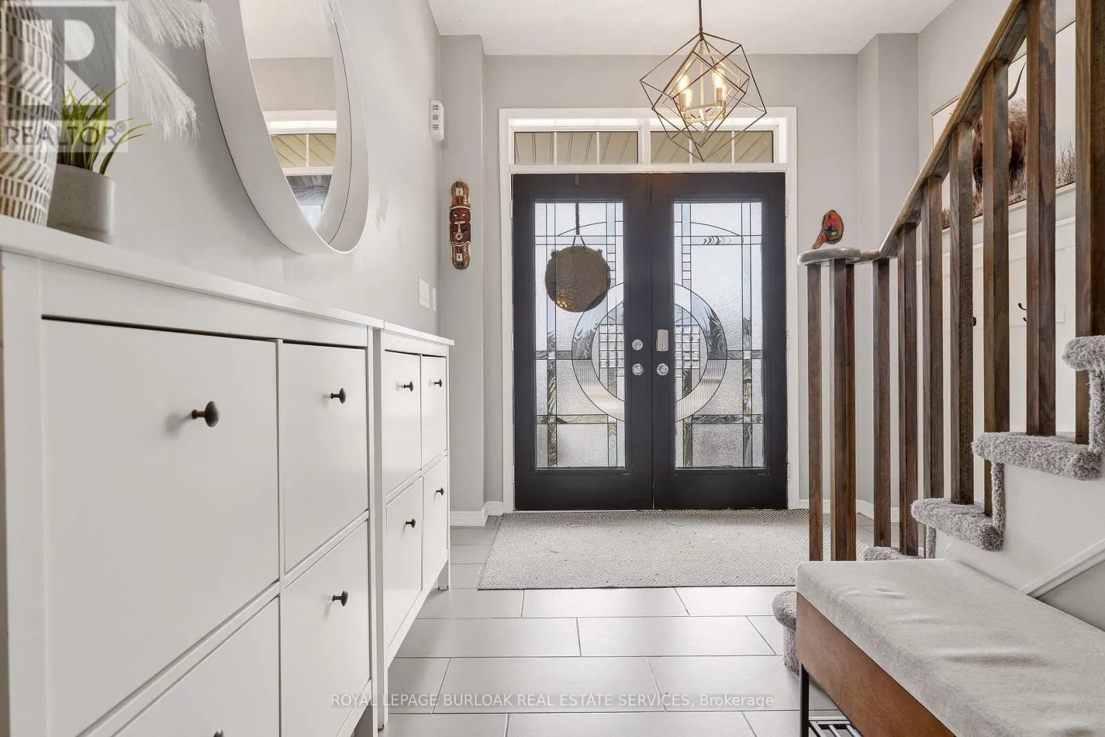 Cross Streets: Arnold Marshall/McClung. ** Directions: From McClung turn west onto Arnold Marshall Blvd. turn left on the first street, Michael John Ave. then turn left on Larry Crescent. Welcome to 105 Larry Crescent, where riverside living meets small-town charm just steps from the Grand River. This gorgeous four-bedroom home is designed with modern layouts, open-concept living, and high-quality finishes tailored to today's lifestyle. Step into a bright, expansive foyer with soaring ceilings and a new custom double- glass door entry. The entry is enhanced with a stylish panelled feature wall, complete with a coat hook area and shoe cabinetry, creating a functional and welcoming space. Most of the lighting throughout the home has been upgraded, adding a warm and contemporary feel. From the foyer, the layout flows seamlessly into the gourmet kitchen and sunlit breakfast area. The kitchen showcases stainless steel appliances, a centre island with new pendant lighting, and a walkout to the backyard. Open to the kitchen, the expansive family room features a striking feature wall-perfect for entertaining family and friends. Additional highlights on the main level include a spacious powder room, new entry feature walls, and a double-car garage equipped with an EV charger. With no homes directly across the street, natural light floods the interior, enhancing the home's airy atmosphere. Upstairs, the luxurious primary suite offers a peaceful retreat with distinct sleeping and sitting areas, a large walk-in closet, and a spa-inspired five-piece ensuite with a soaker tub and separate shower. Three additional bedrooms provide generous space for family, guests, or a home office. Situated in a thoughtfully developed neighbourhood by Empire Communities, this home offers a lifestyle that embraces the Grand River, with opportunities for kayaking, boating, fishing, and enjoying the natural beauty of Caledonia every day. 105 Larry Crescent combines modern comforts with custom upgrades. Don't miss your chance to make this stunning property your dream home! (id:27476)
